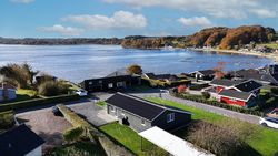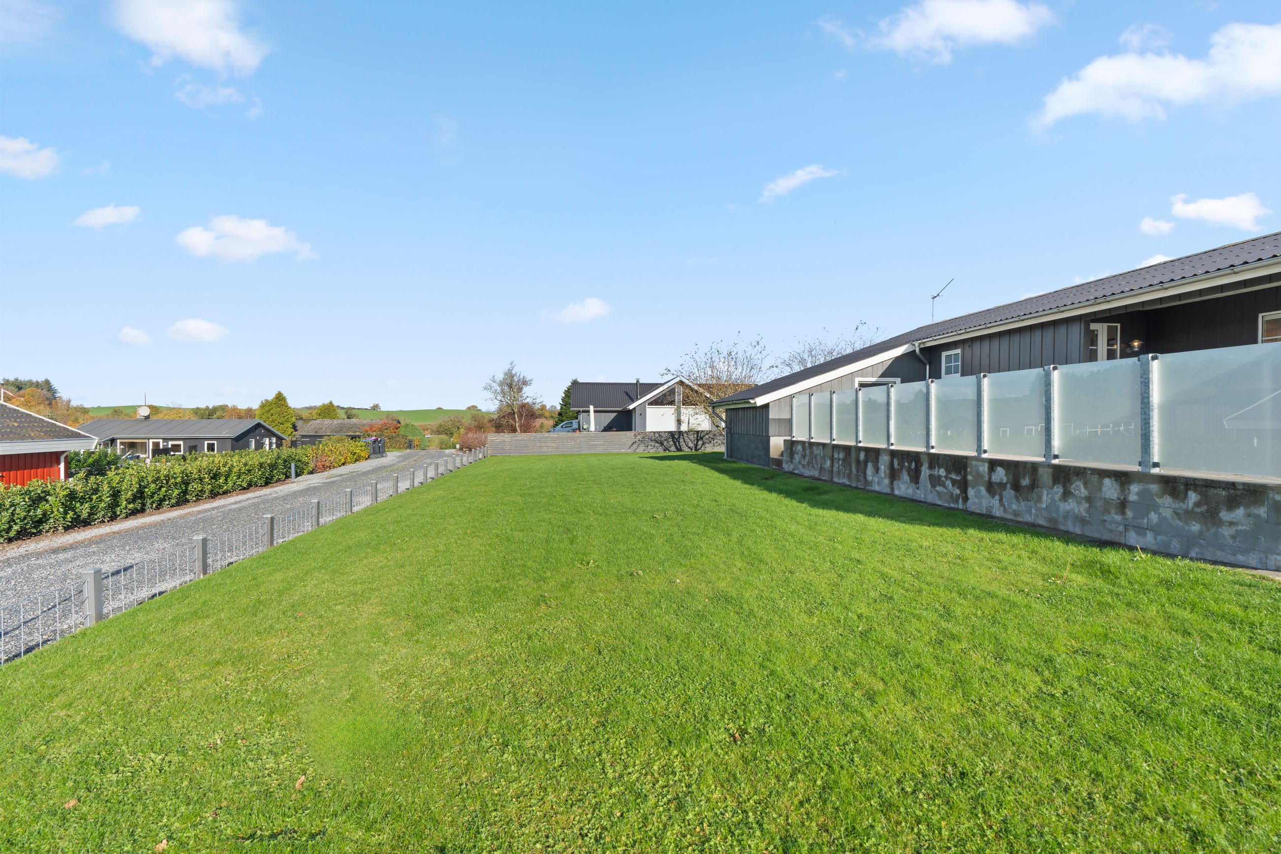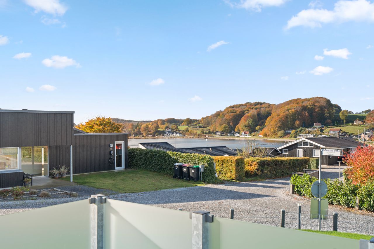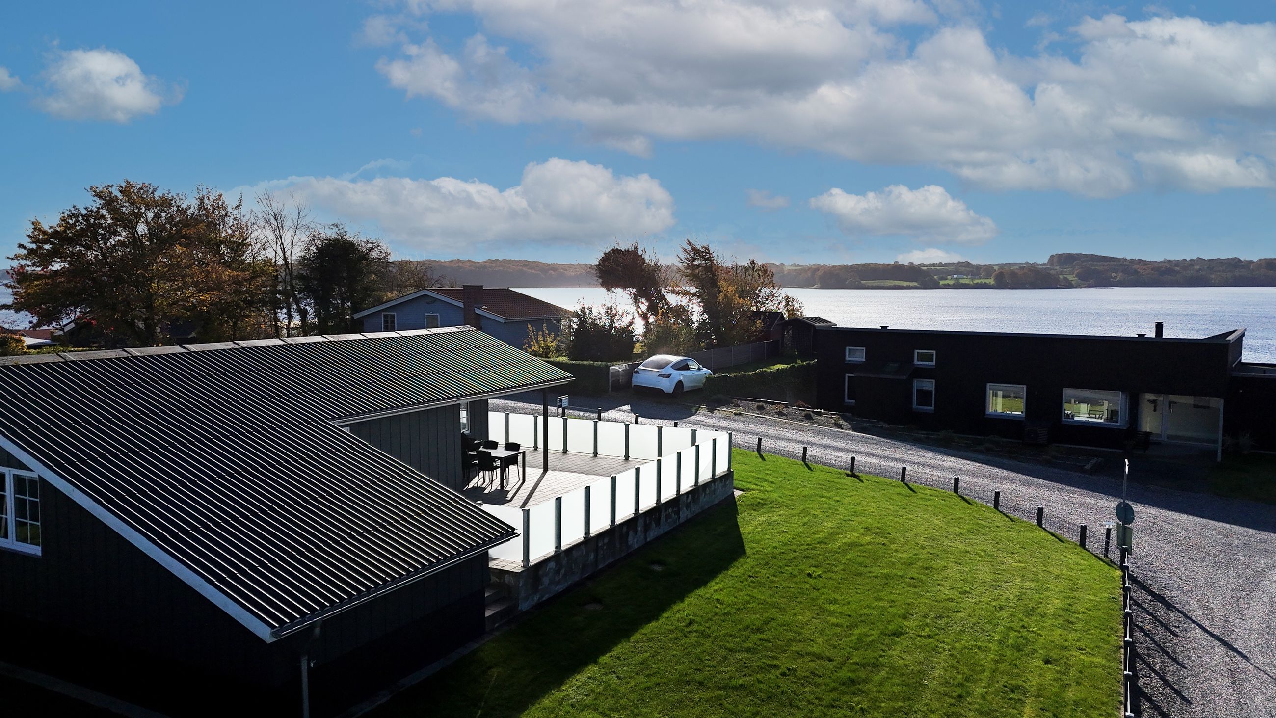 Men det, der virkelig gør ejendommen noget særligt, er udsigten. Fra både huset og terrassen kan du lade blikket glide hen over det frodige, grønne landskab, før øjnene møder det blanke vand i bugten. Udsigten ændrer karakter med lyset – fra morgenens stille spejlinger til de gyldne aftentimer, hvor himlen farves varm og roen sænker sig. Et levende naturbillede, man aldrig bliver træt af.