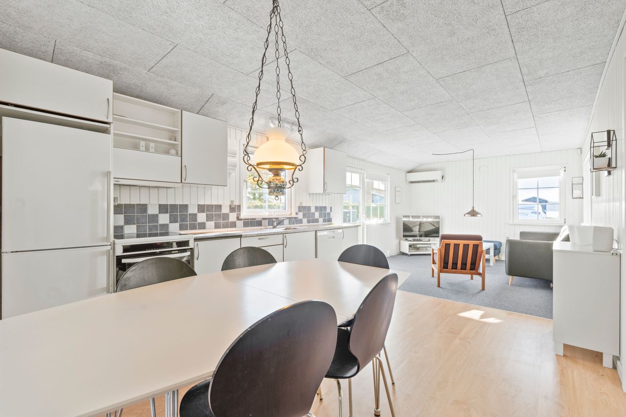 Planløsningen er ideel med tre gode værelser og seks sovepladser, et pænt badeværelse samt et stort og lyst køkken-alrum, der samler familie og venner på naturlig vis. Sommerhusets atmosfære er varm og indbydende – lige til at flytte ind i og nyde.