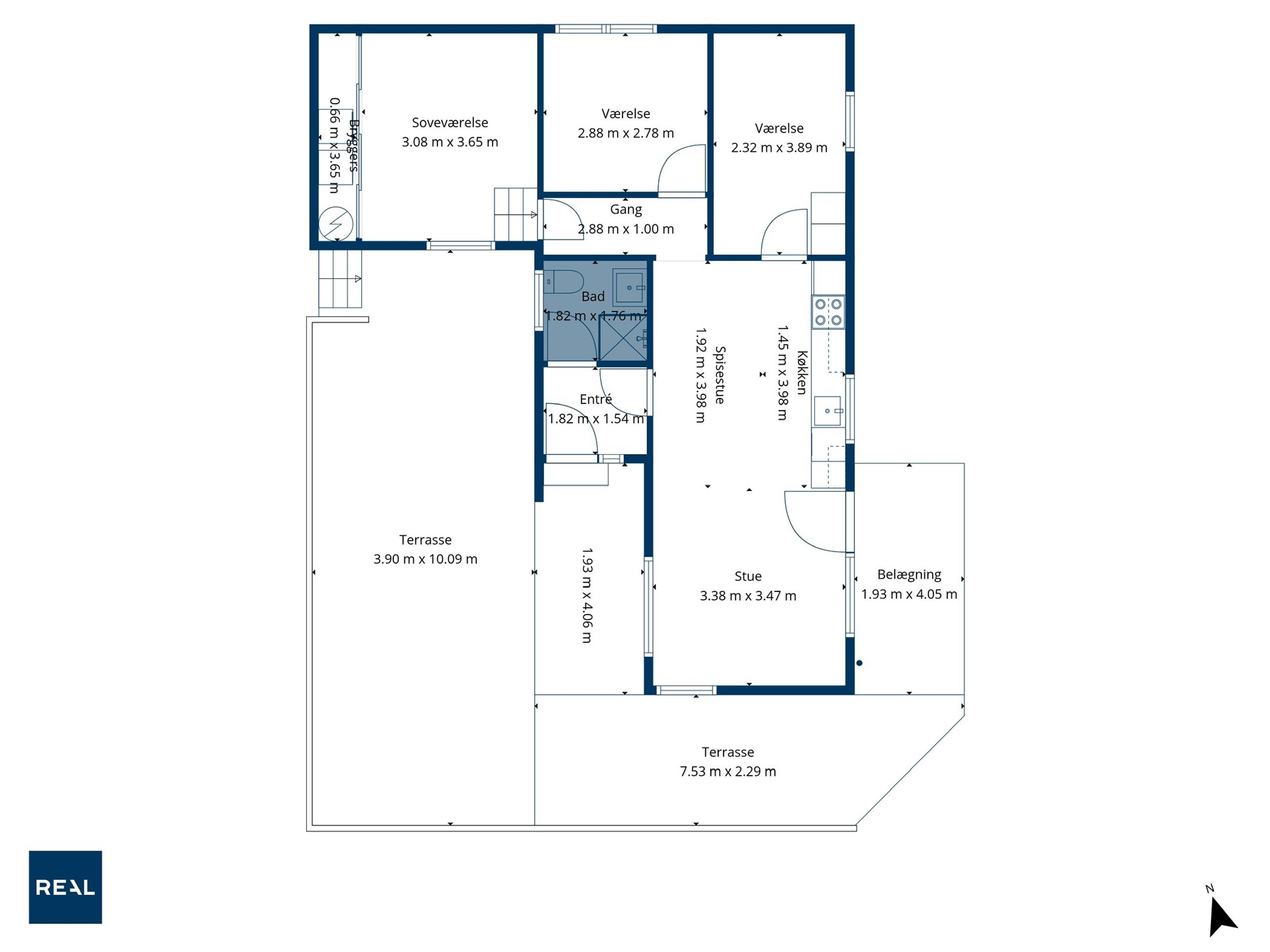 Udenfor venter et skønt terrassemiljø med flere gode opholdsrum – perfekt til både formiddagskaffe, afslapning og lange grill-aftener. Her bliver sommeren næsten automatisk lidt længere og dagene lidt bedre.