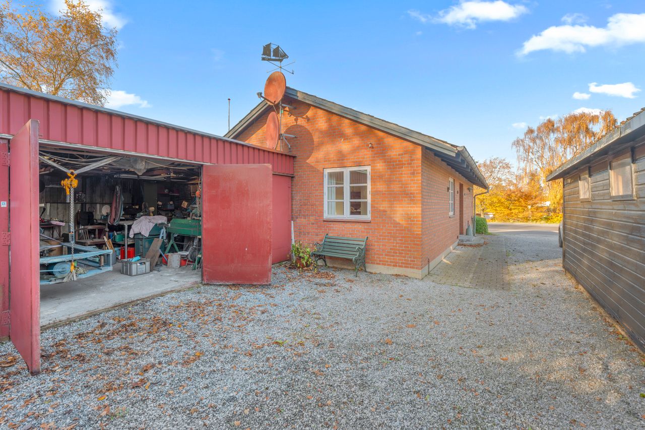 Udendørs får du en 1.033 m2 grund med en rigtig fin have, som giver både luft og privatliv omkring huset. Her er gode rammer til både leg, afslapning, drivhus, køkkenhave eller bare at nyde sommerdagene. Derudover får du både en charmerende garage og et rigtig godt værksted, hvor du kan åbne op og få ekstra plads til projekter, håndværk eller opbevaring.