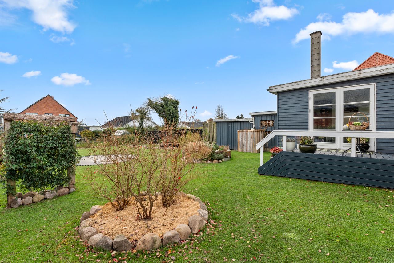 Udenfor venter en hyggelig, overskuelig og nem have, der indbyder til både afslapning og leg.