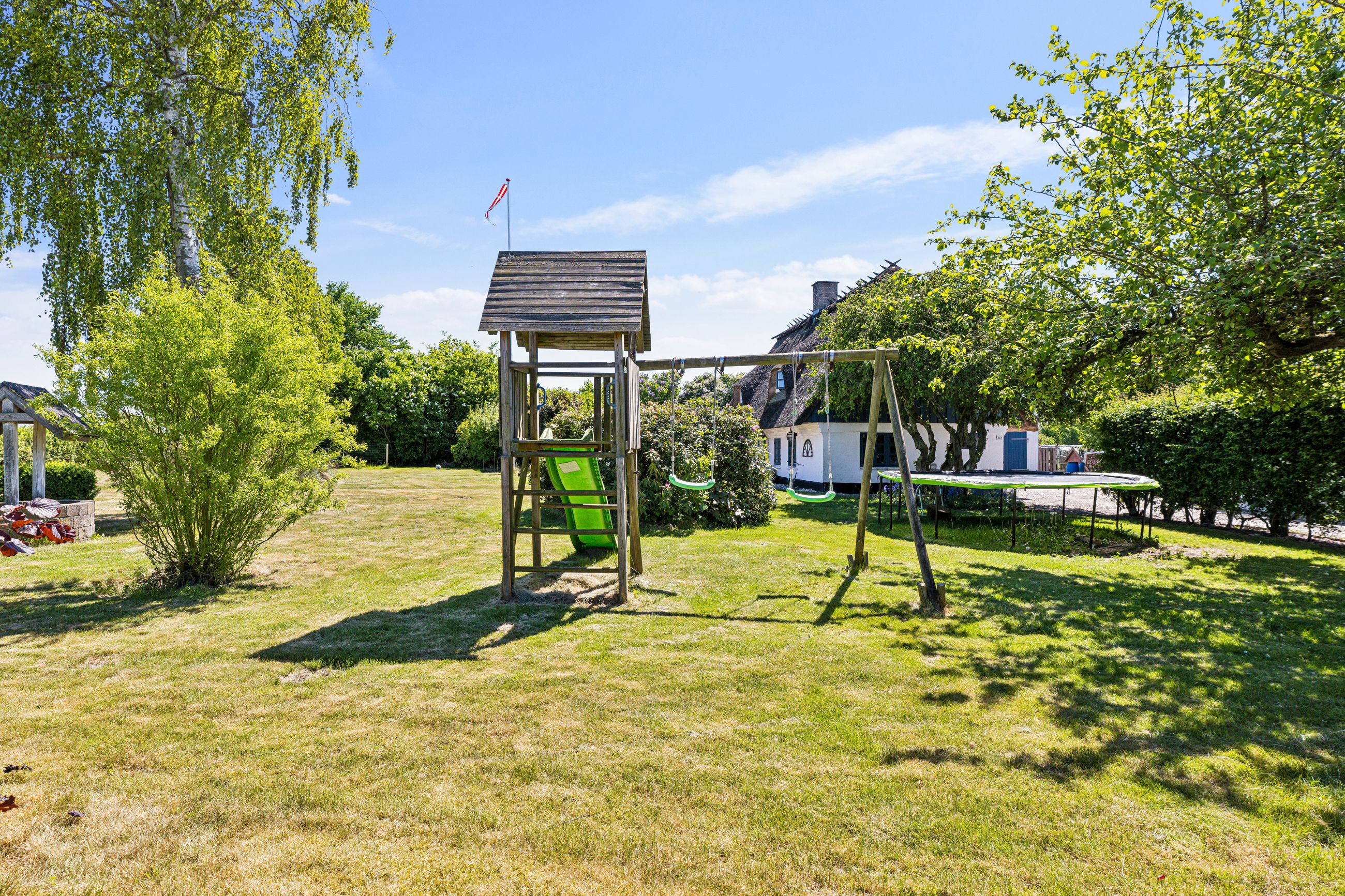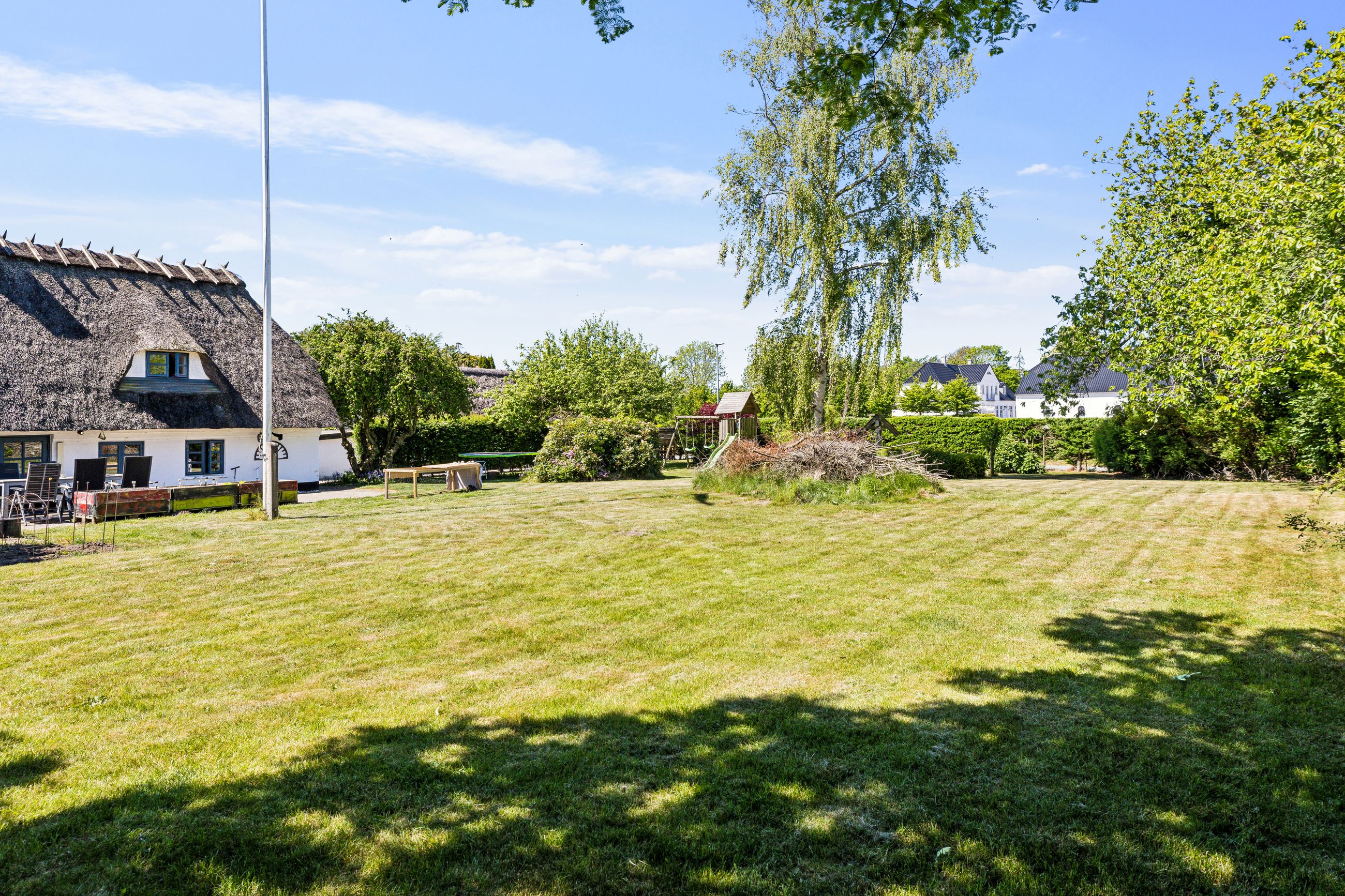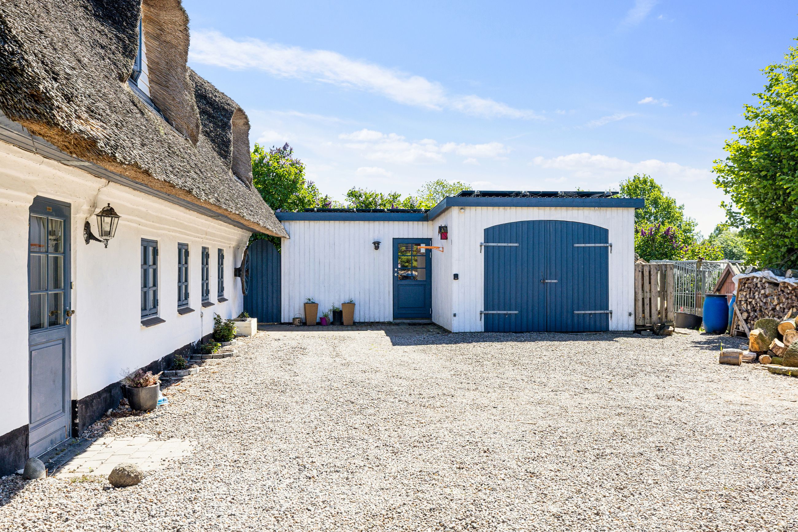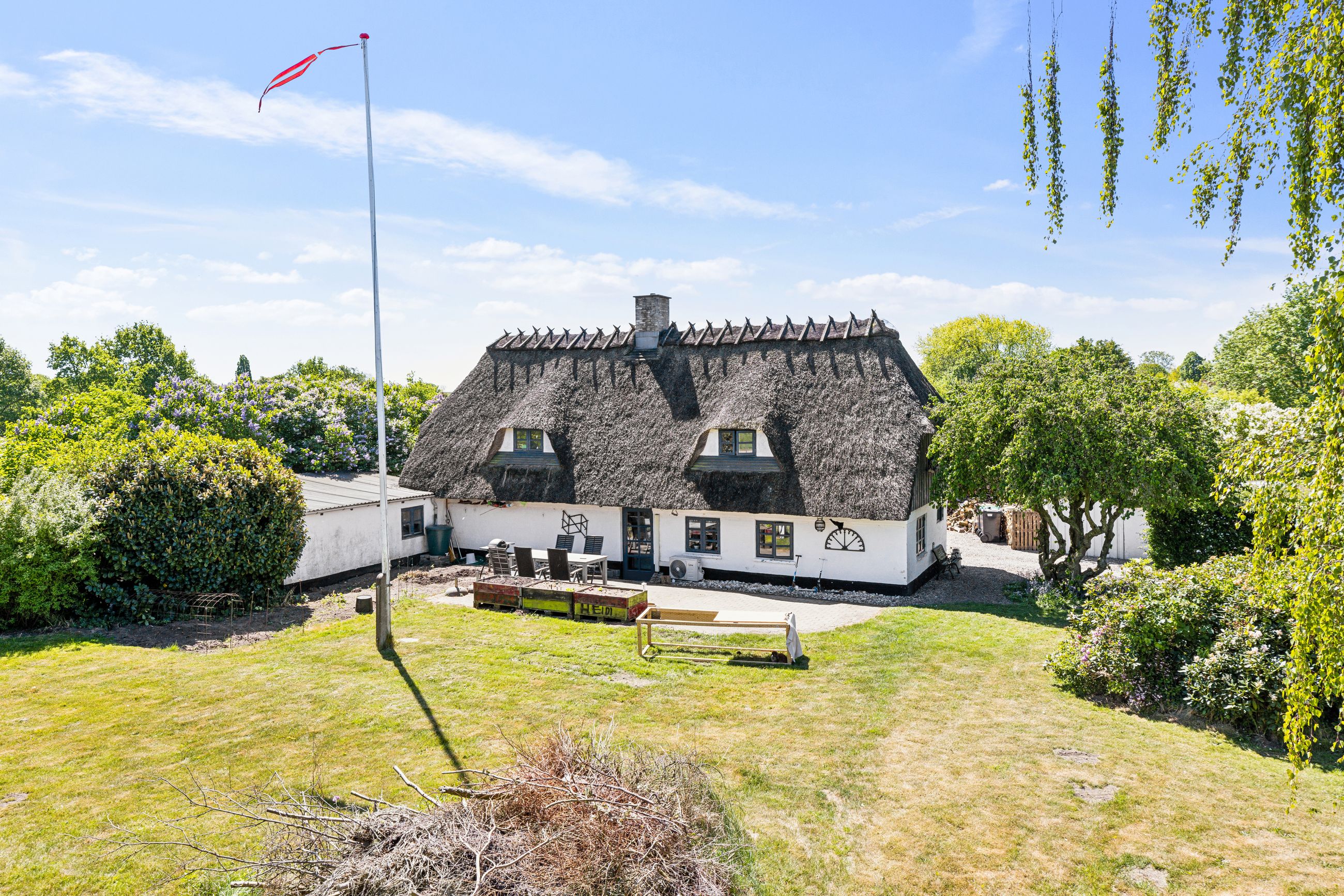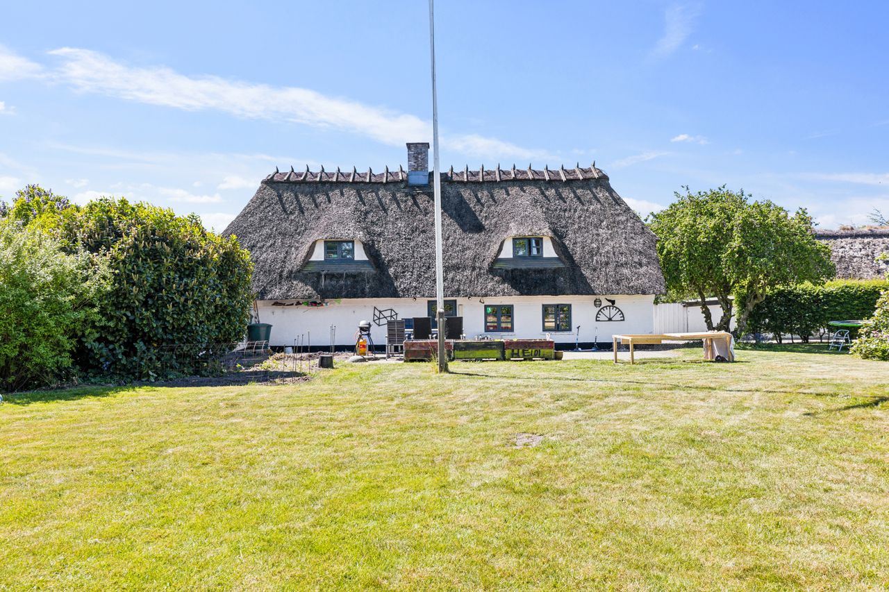 Ejendommen består af et stråtækt hus på 135 m2 fordelt på to etager. Planløsningen er funktionel med køkken og spiseplads, en regulær stue med brændeovn, et værelse, bryggers og gæstetoilet i stueplan. På første sal finder du yderligere to værelser, repos og et badeværelse. En indretning, som fungerer godt for de fleste lejere.