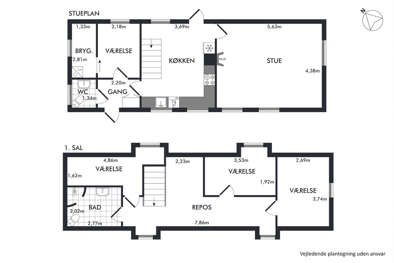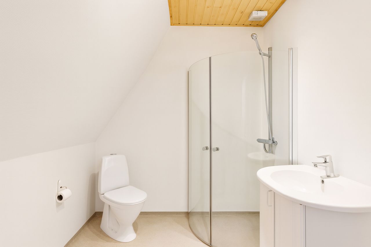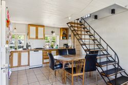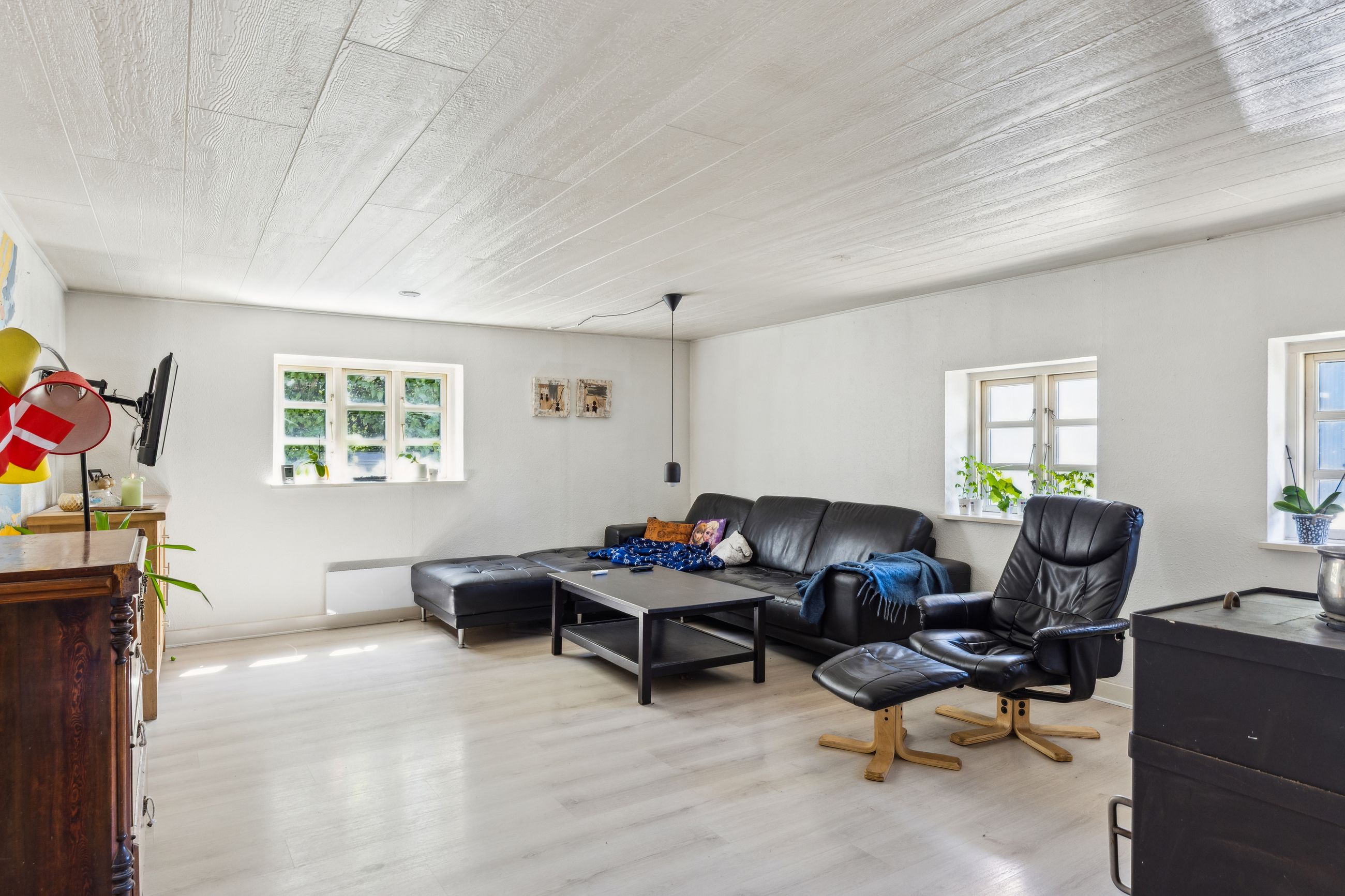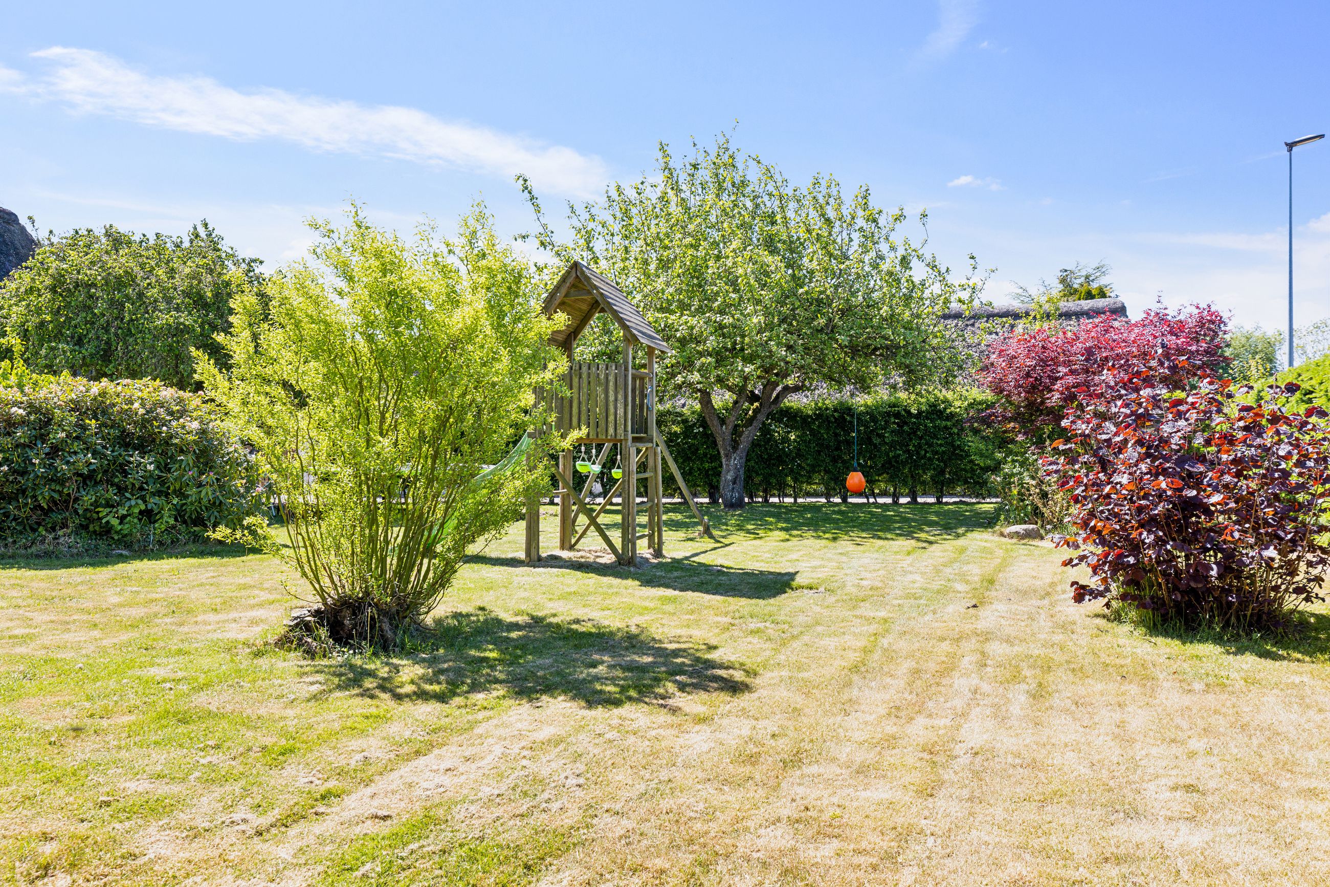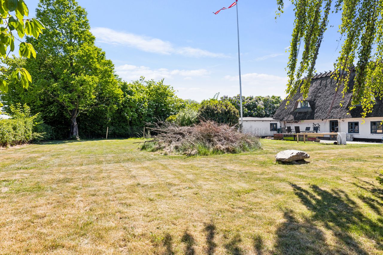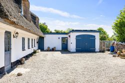 Ejendommen består af et stråtækt hus på 135 m2 fordelt på to etager. Planløsningen er funktionel med køkken og spiseplads, en regulær stue med brændeovn, et værelse, bryggers og gæstetoilet i stueplan. På første sal finder du yderligere to værelser, repos og et badeværelse. En indretning, som fungerer godt for de fleste lejere.