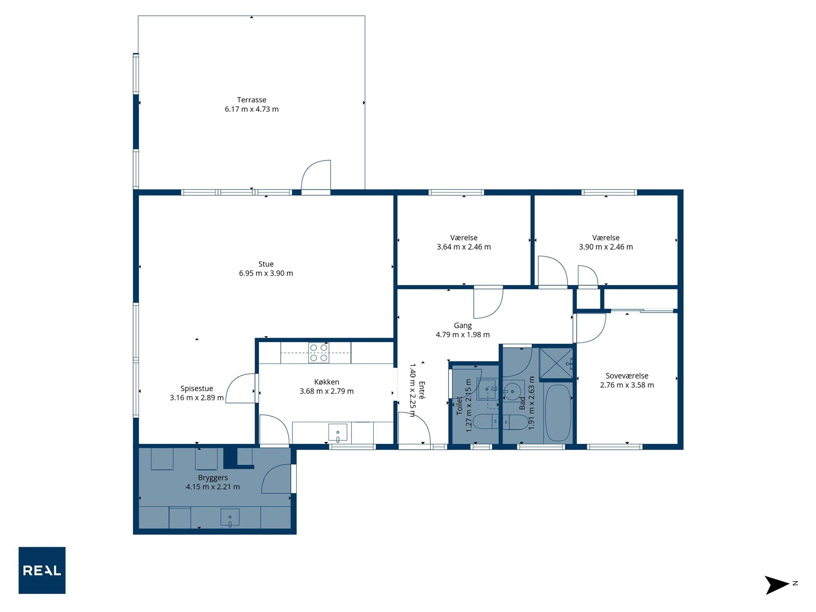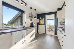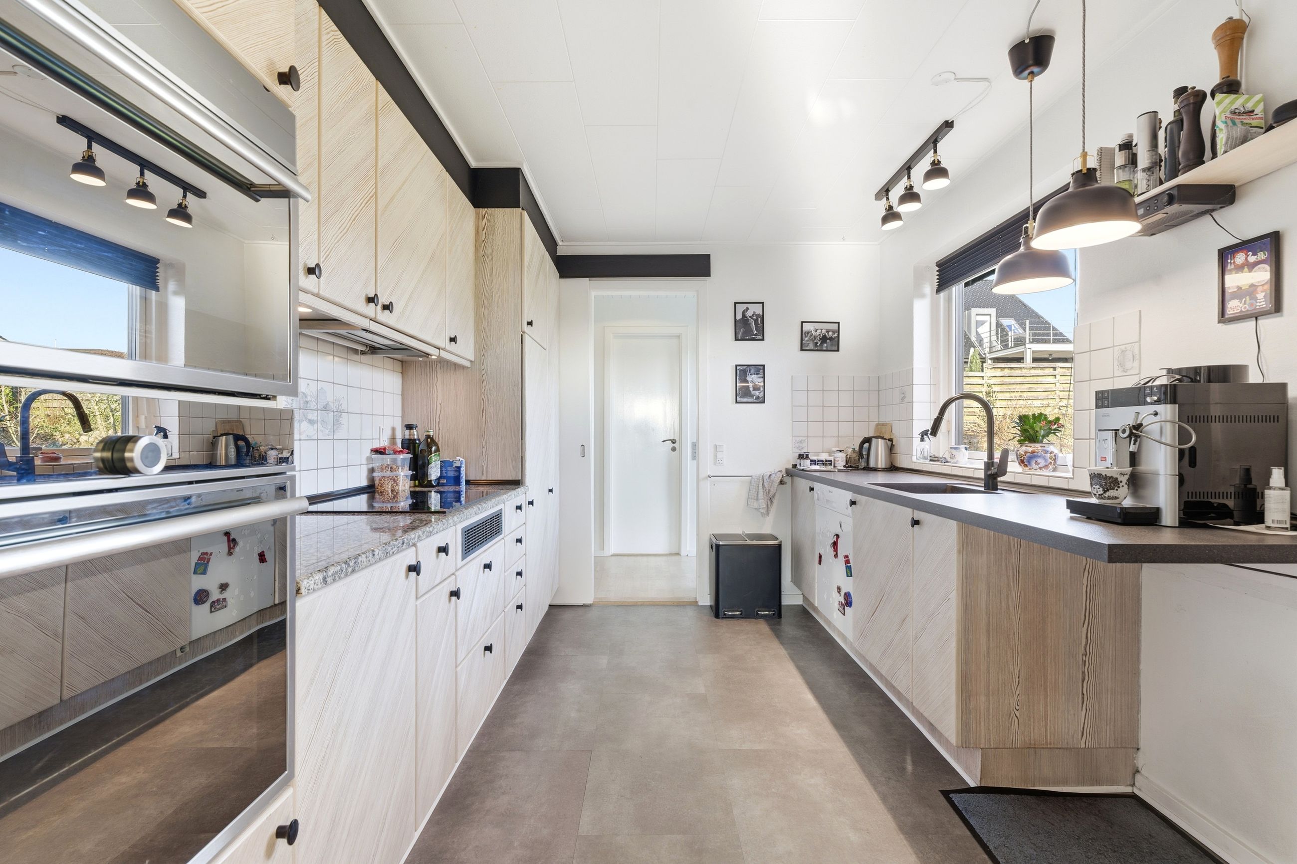 Køkkenet ligger centralt i huset med nem adgang til både spiseafdeling og bryggers. Boligen rummer tre gode værelser, som gør huset oplagt til børnefamilien, hjemmekontor eller gæsteværelse. Hertil kommer badeværelse samt separat toilet, hvilket er en klar fordel i en travl hverdag. Bryggerset har egen indgang og giver en praktisk overgang mellem ude og inde.