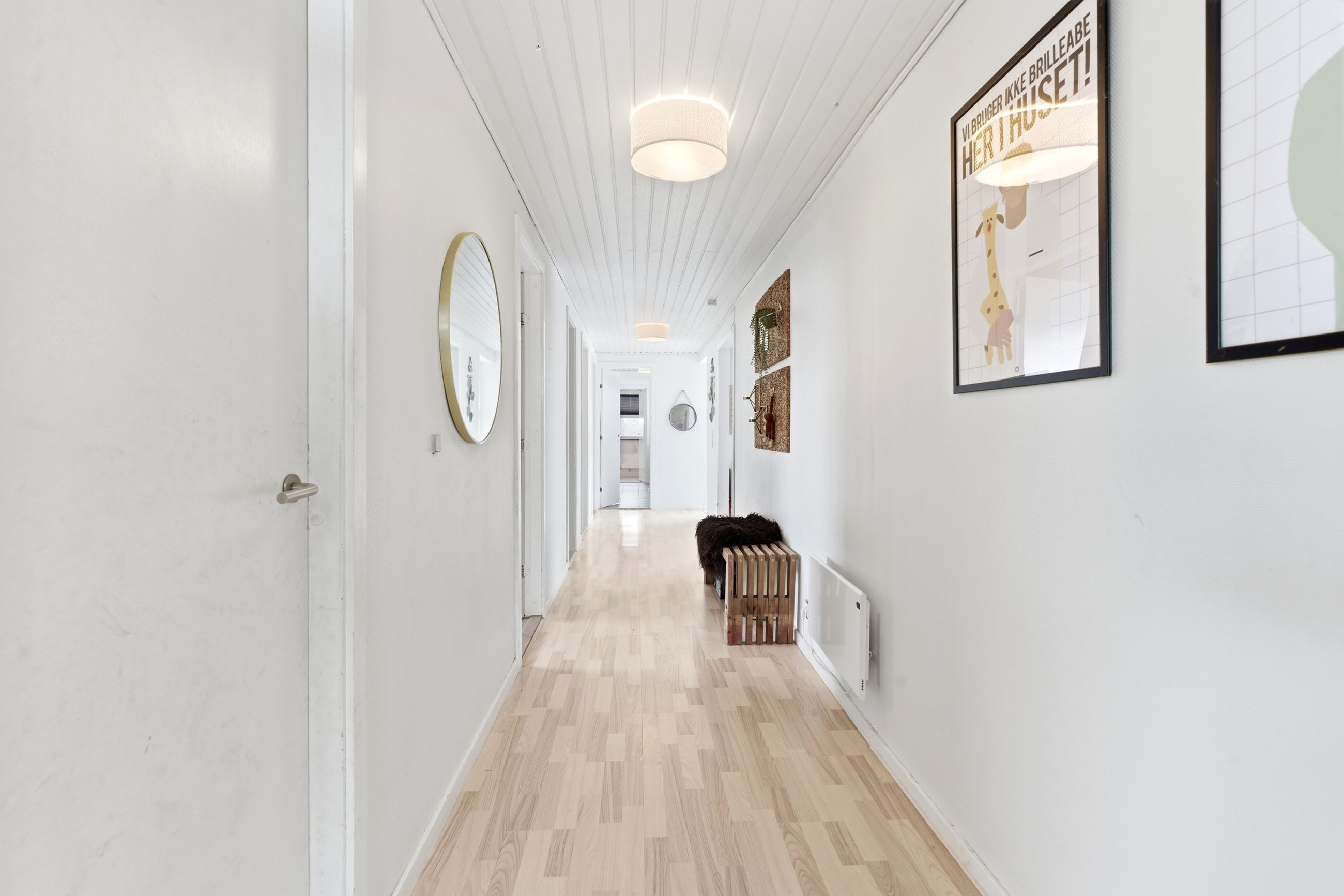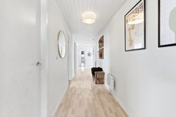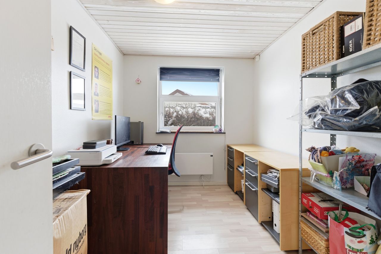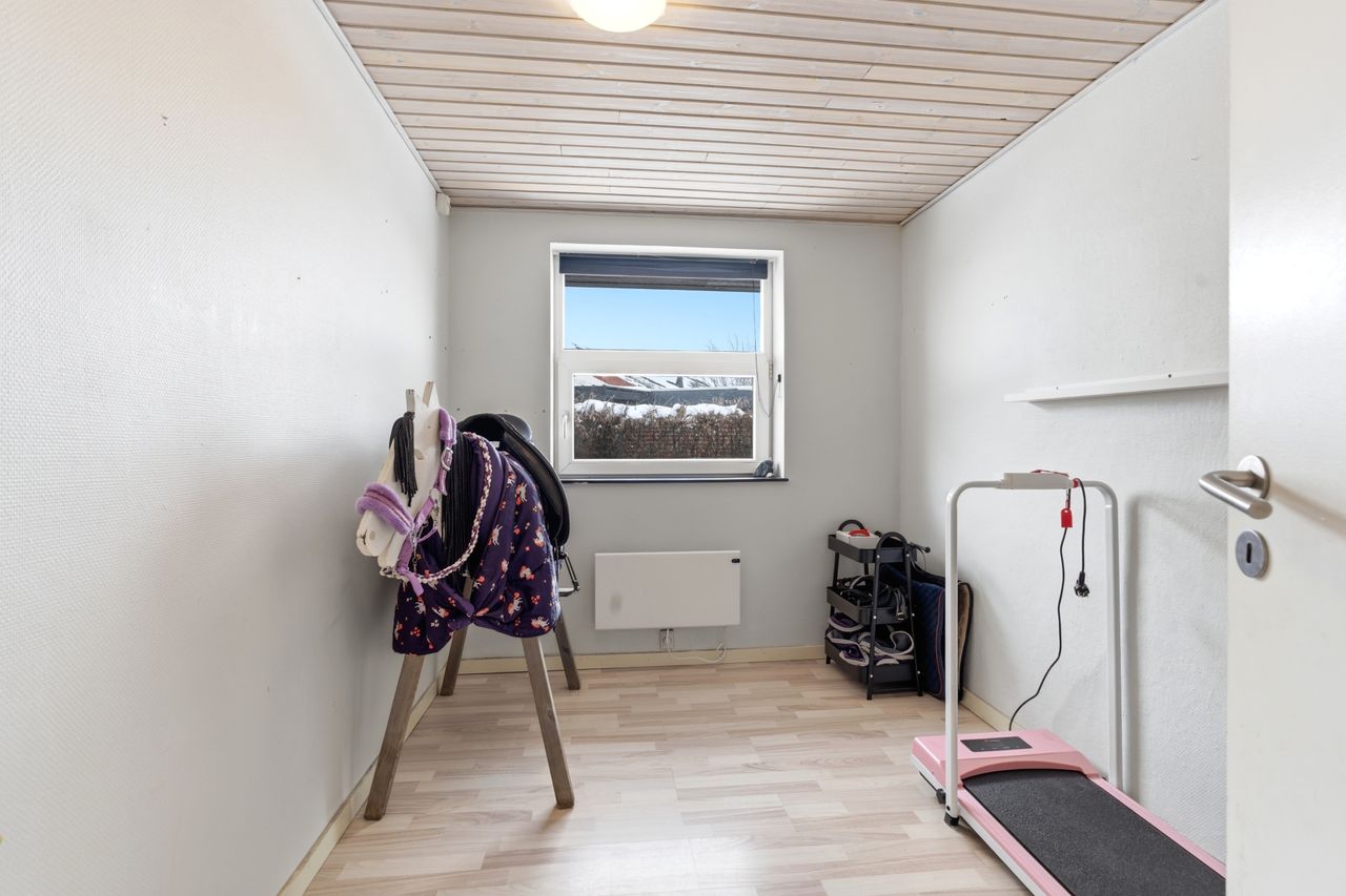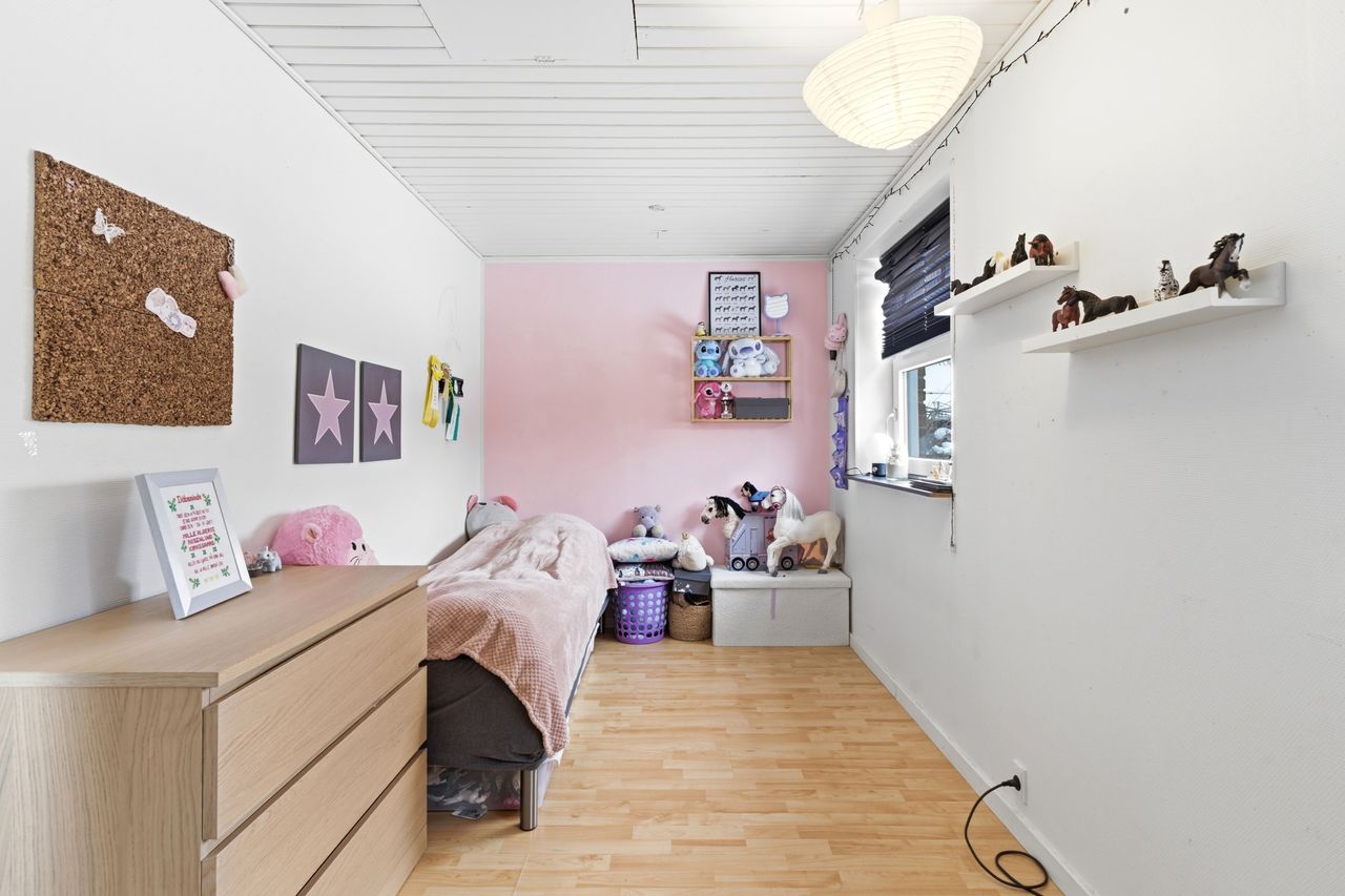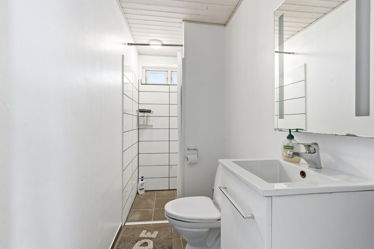 I den ene ende af huset finder I en separat værelsesafdeling med flere gode værelser, som gør boligen oplagt til børnefamilien. Her er også badeværelse samt fordelingsgang, der skaber en praktisk opdeling mellem privat- og opholdsafdeling. Derudover rummer boligen endnu et badeværelse, hvilket gør hverdagen nem, når alle skal ud ad døren om morgenen.