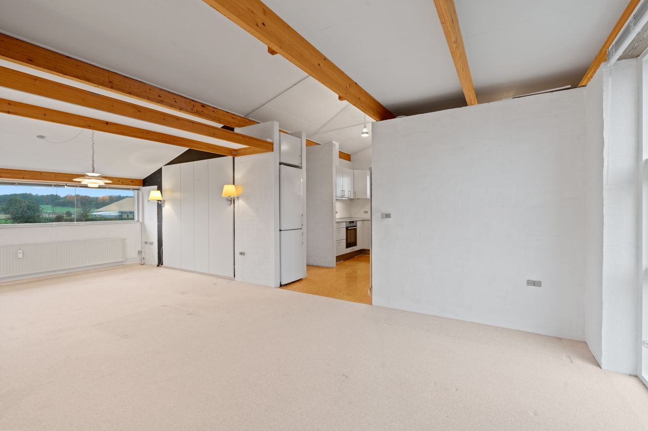 Ved ankomsten bliver du budt velkommen af en indbydende entré, med fin plads til både overtøj og sko. Herfra er der adgang til lejlighedens fine badeværelse. Fortsæt din opdagelsesrejse ind i det hyggelige køkken, hvorfra du kan bevæge dig ind i den skønne spisestue og stue. Her er plads til hyggelige stunder og sociale sammenkomster. Samtidig er der her mulighed for at etablere et ekstra værelse.