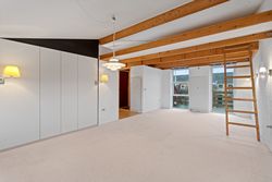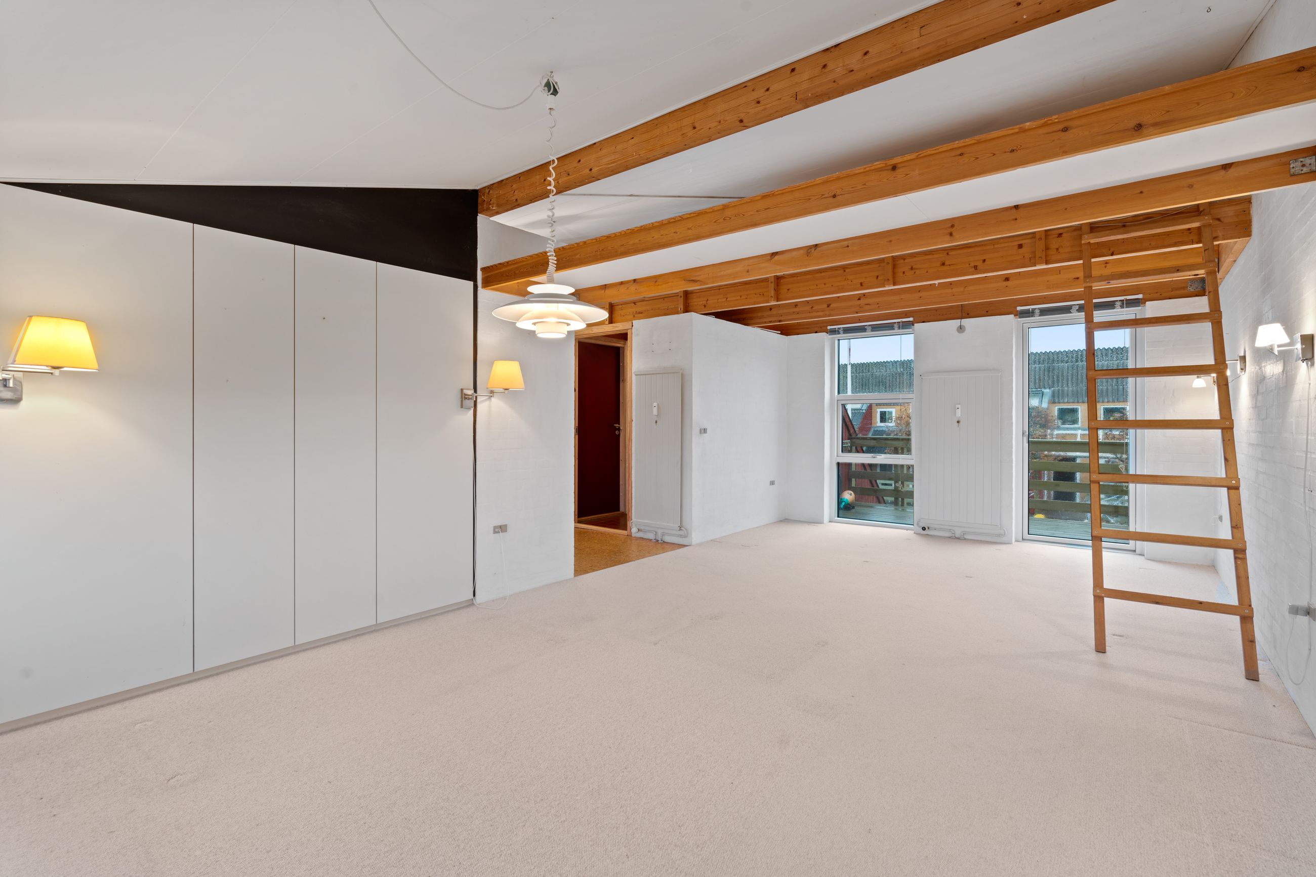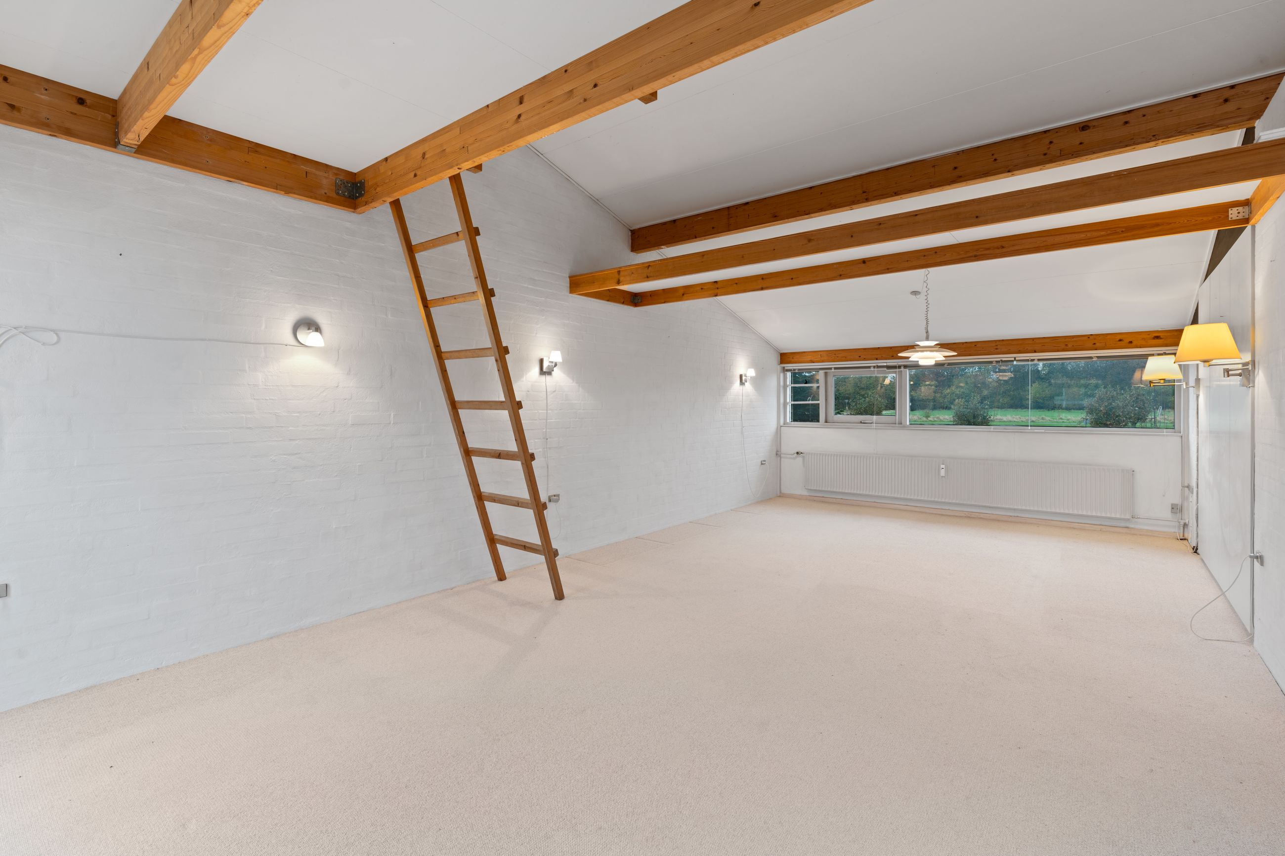 Soveværelset imponerer med sin rummelighed, hvor der både er god plads til en dobbeltseng og skabsplads. Fra stuen er der samtidig adgang til 8 kvm. hems, hvor der er talrige anvendelses muligheder.