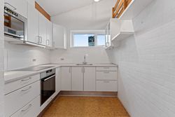 Lyset strømmer ind i denne skønne lyse lejlighed, der er kendetegnet ved sine talrige vinduer, der bringer naturen og omgivelserne tæt på. Opvarmningen er effektiv med fjernvarme, og med lejlighed følger et praktisk kælderrum på 5 kvadratmeter – ideelt til ekstra opbevaring.