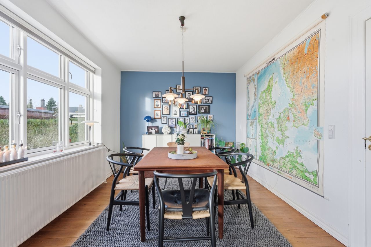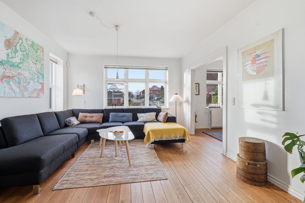 Denne charmerende ejendom fra 1935 står utroligt velholdt og gennemført, og det mærkes straks, når man træder indenfor. Her får du et hjem, hvor alle de store poster allerede er taget – inklusiv tag og vinduer – og hvor løbende opdateringer har gjort huset både tidssvarende og enormt indbydende. Det tidligere liv som to-families ejendom betyder, at man får en sjældent god rumfordeling og masser af plads at brede sig på.