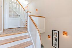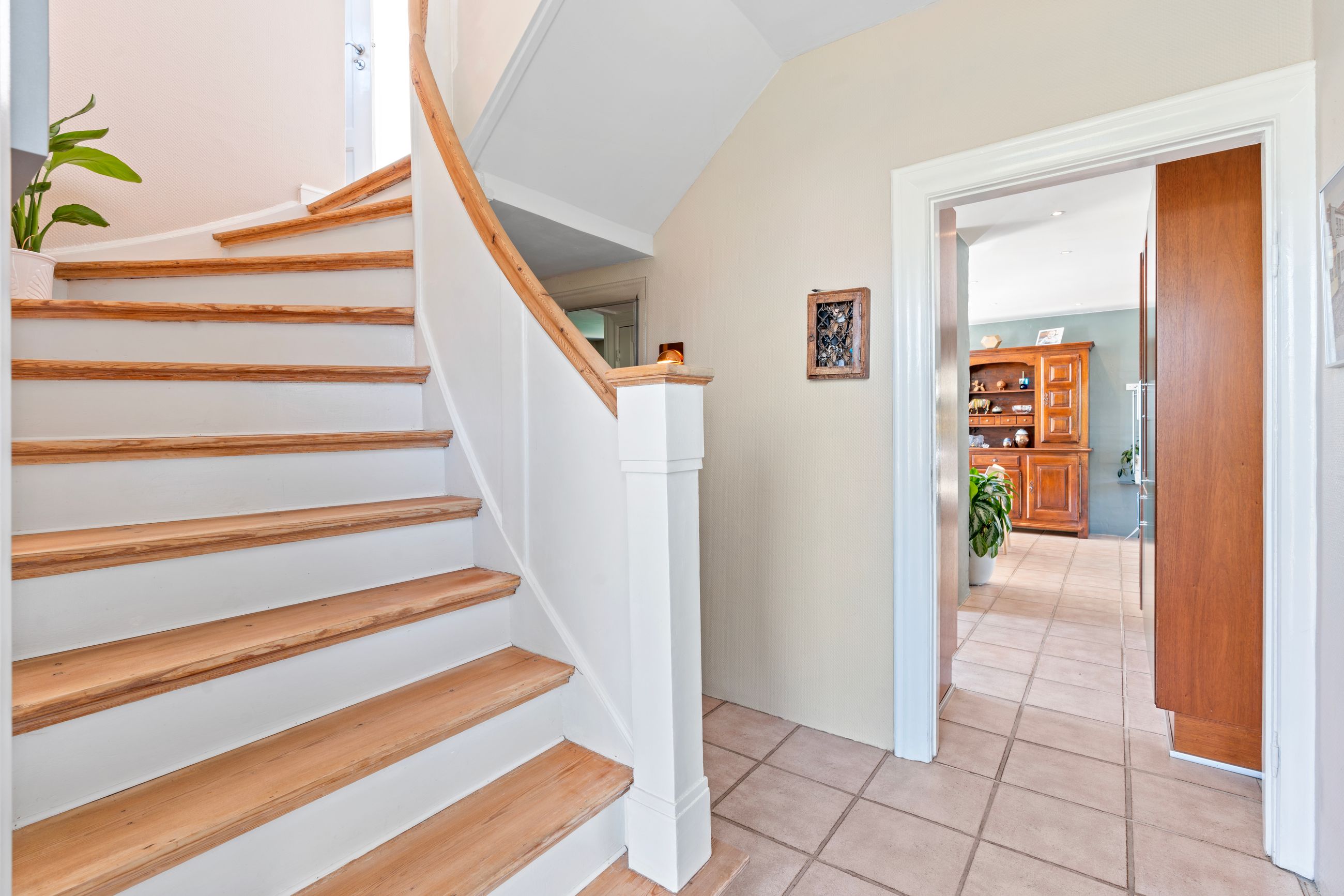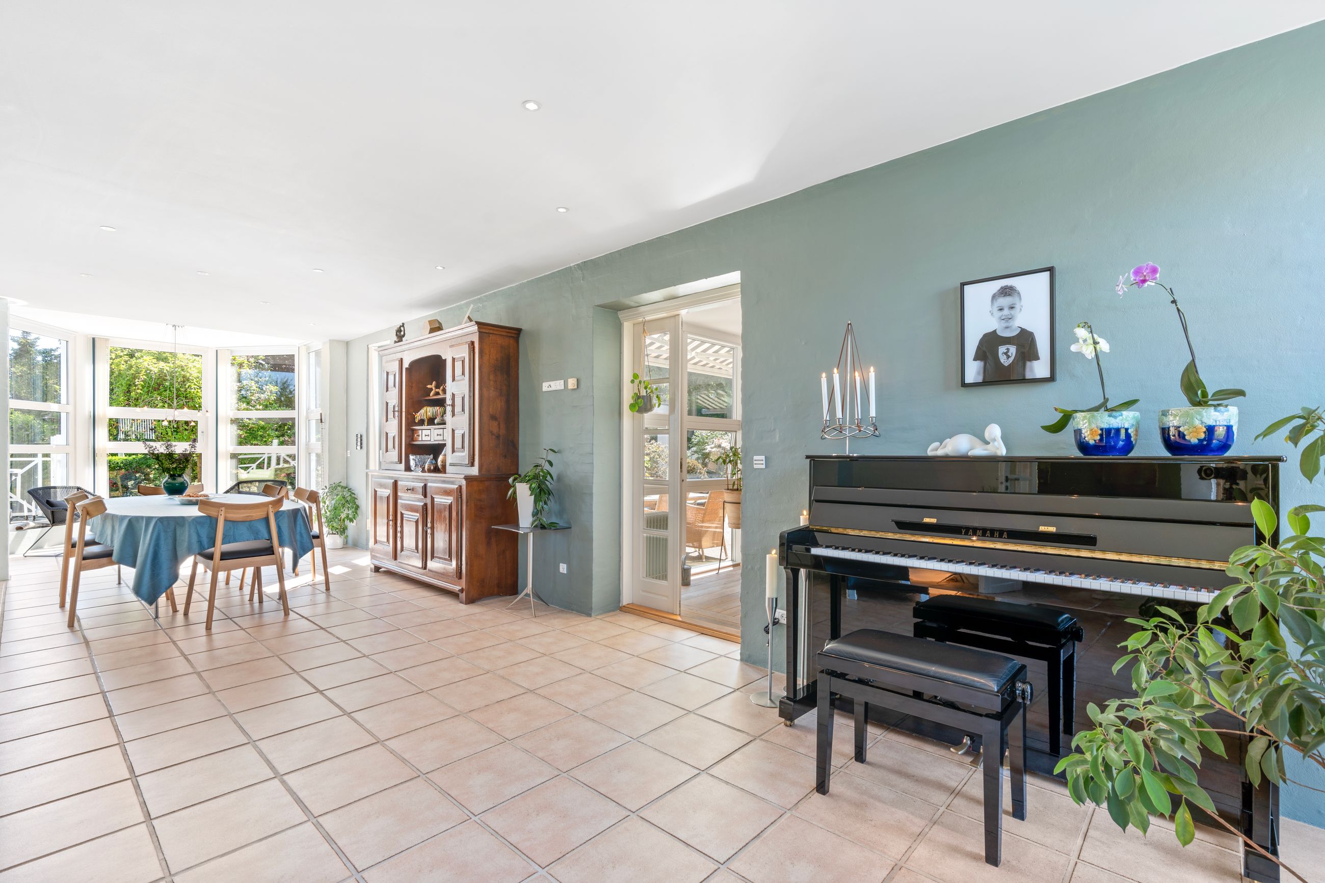 Man bliver budt velkommen i en skøn entré, der giver direkte adgang til husets hall. Herfra kan man tilgå