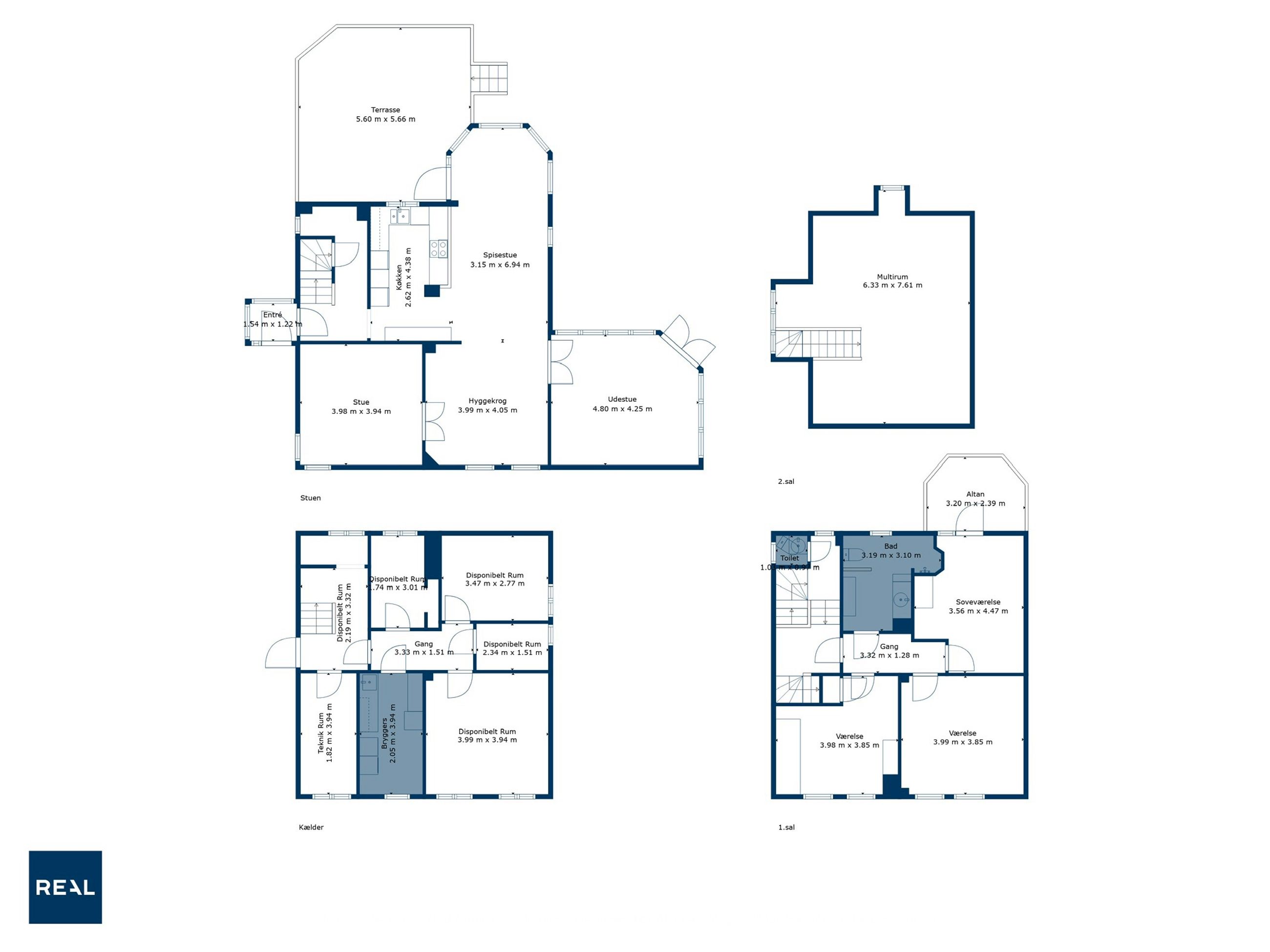 Kælderen er på 79 kvadratmeter og fremstår i rigtig fin stand med fire disponible rum, et bryggers og et