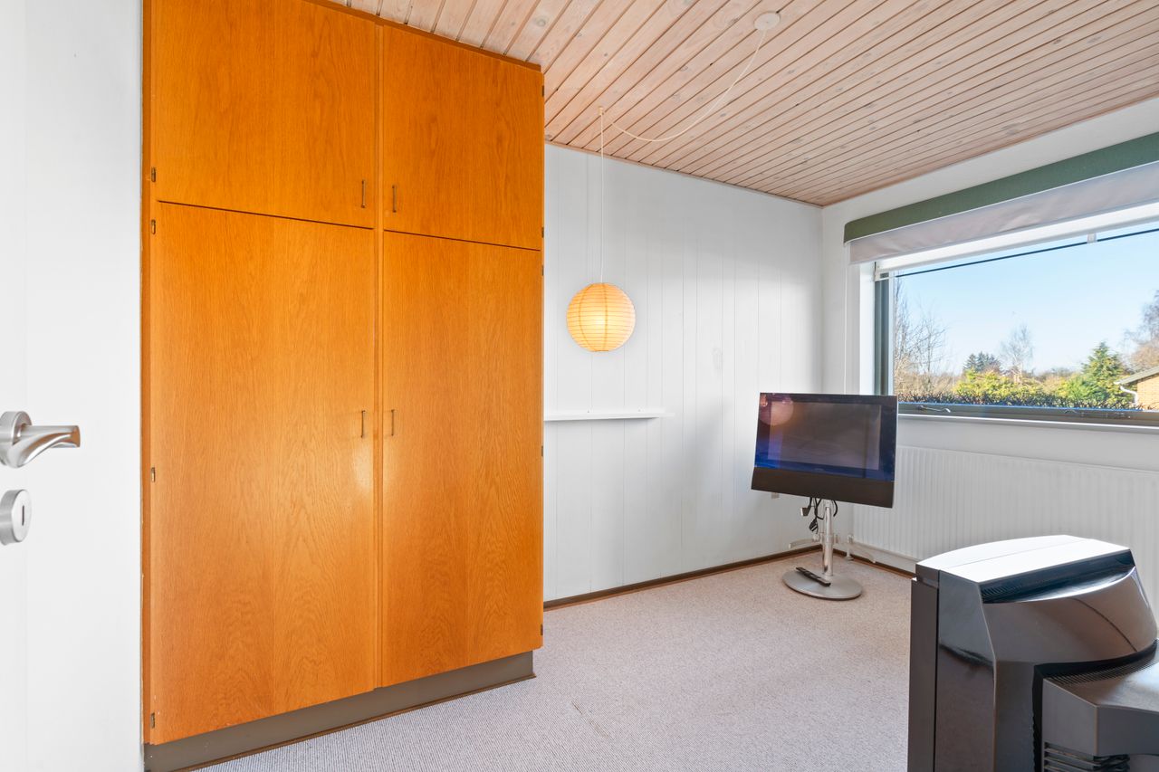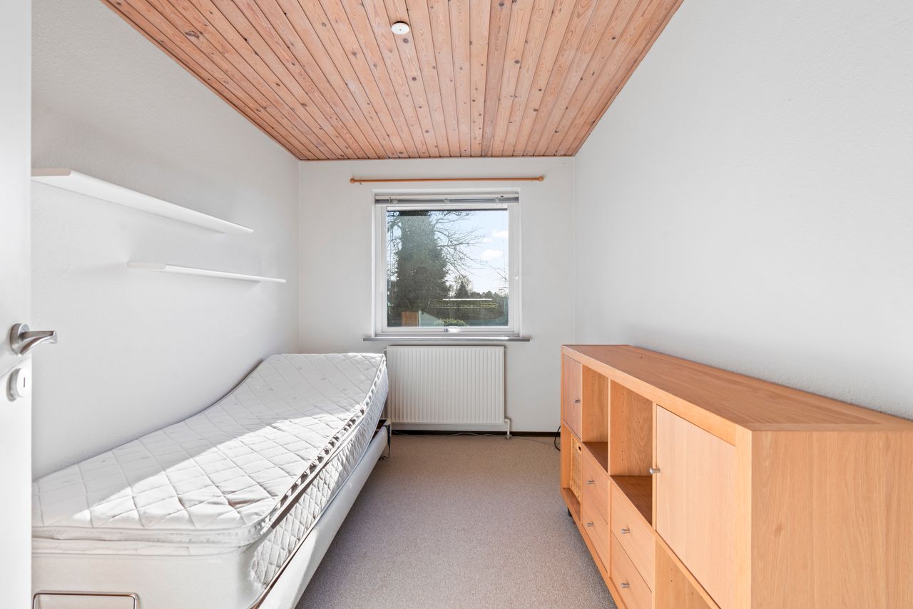 Værelsesafdelingen rummer tre gode værelser med mulighed for at indrette soveværelse, børneværelser eller kontor alt efter behov. Her er der god skabsplads og et behageligt lysindfald i alle rum. Badeværelset er rummeligt og funktionelt indrettet, så der er god plads til hele familien.
