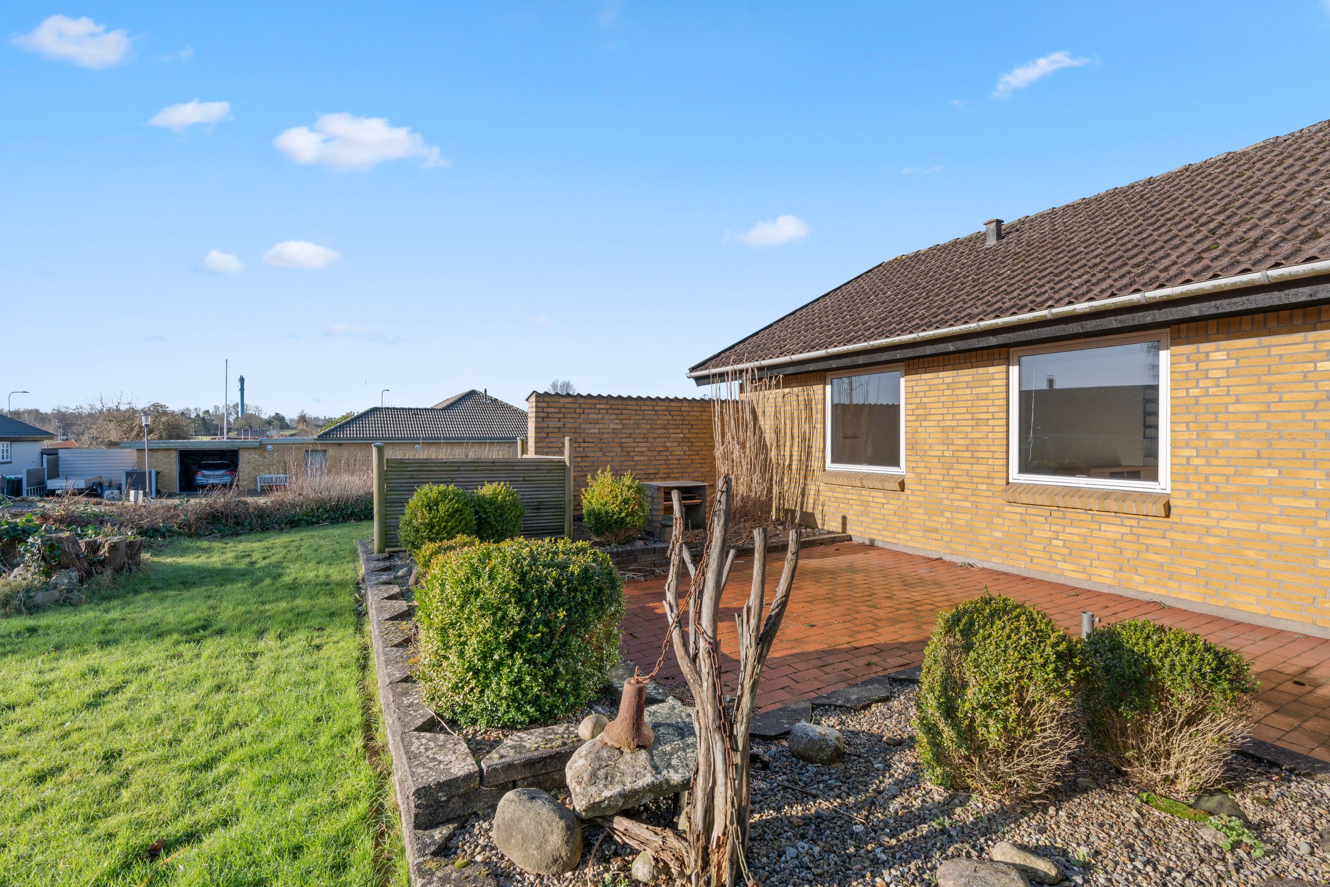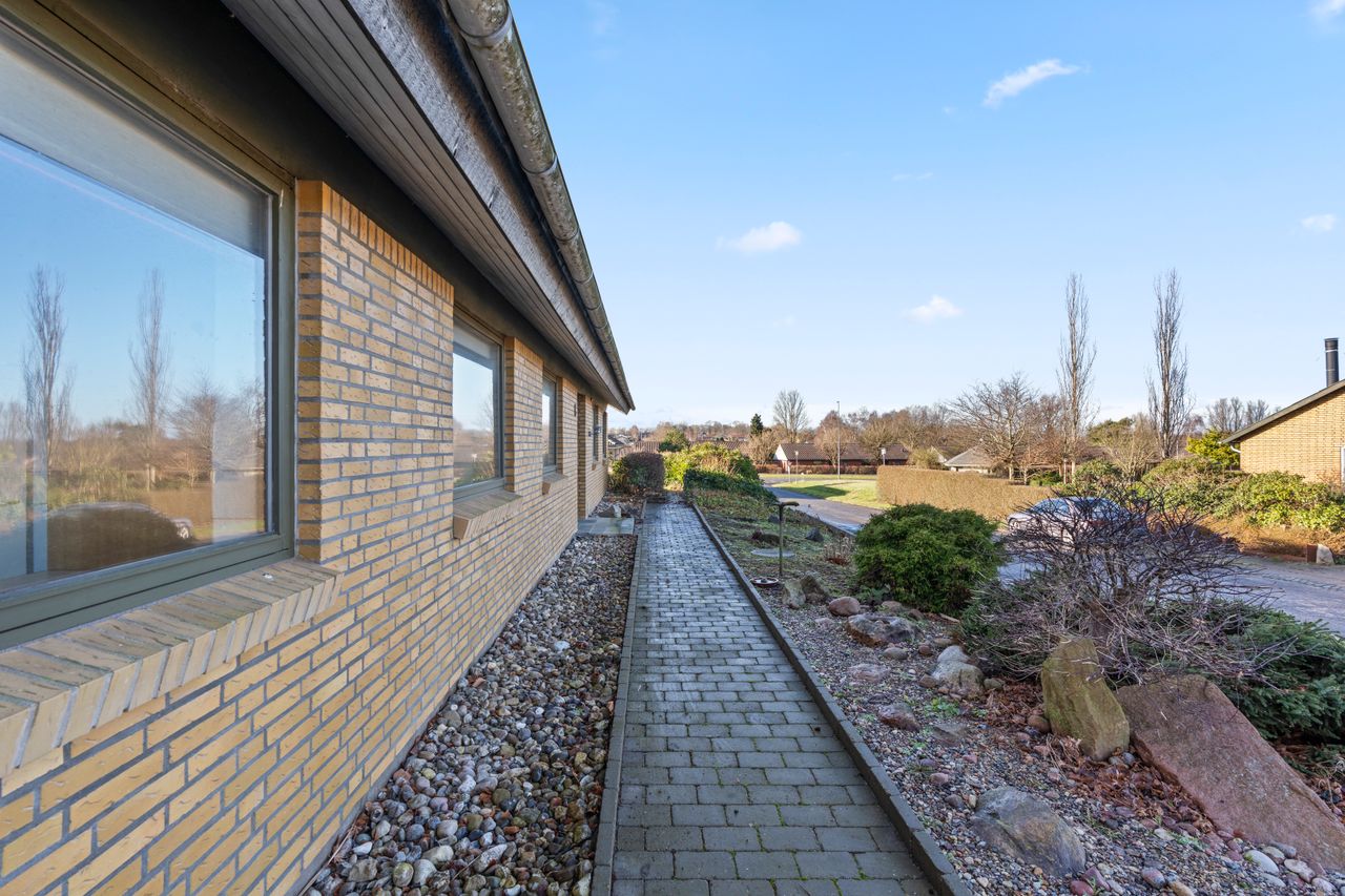 Udendørs får du en stor og velanlagt grund på 855 kvadratmeter, hvor der er plads til både afslapning, leg og haveprojekter. Haven er velholdt og byder på gode solforhold, mens den tilhørende terrasse er ideel til udendørs måltider og hyggelige sommeraftener. Derudover er der en rummelig carport på 37 kvadratmeter, som giver gode parkeringsmuligheder og ekstra opbevaringsplads.