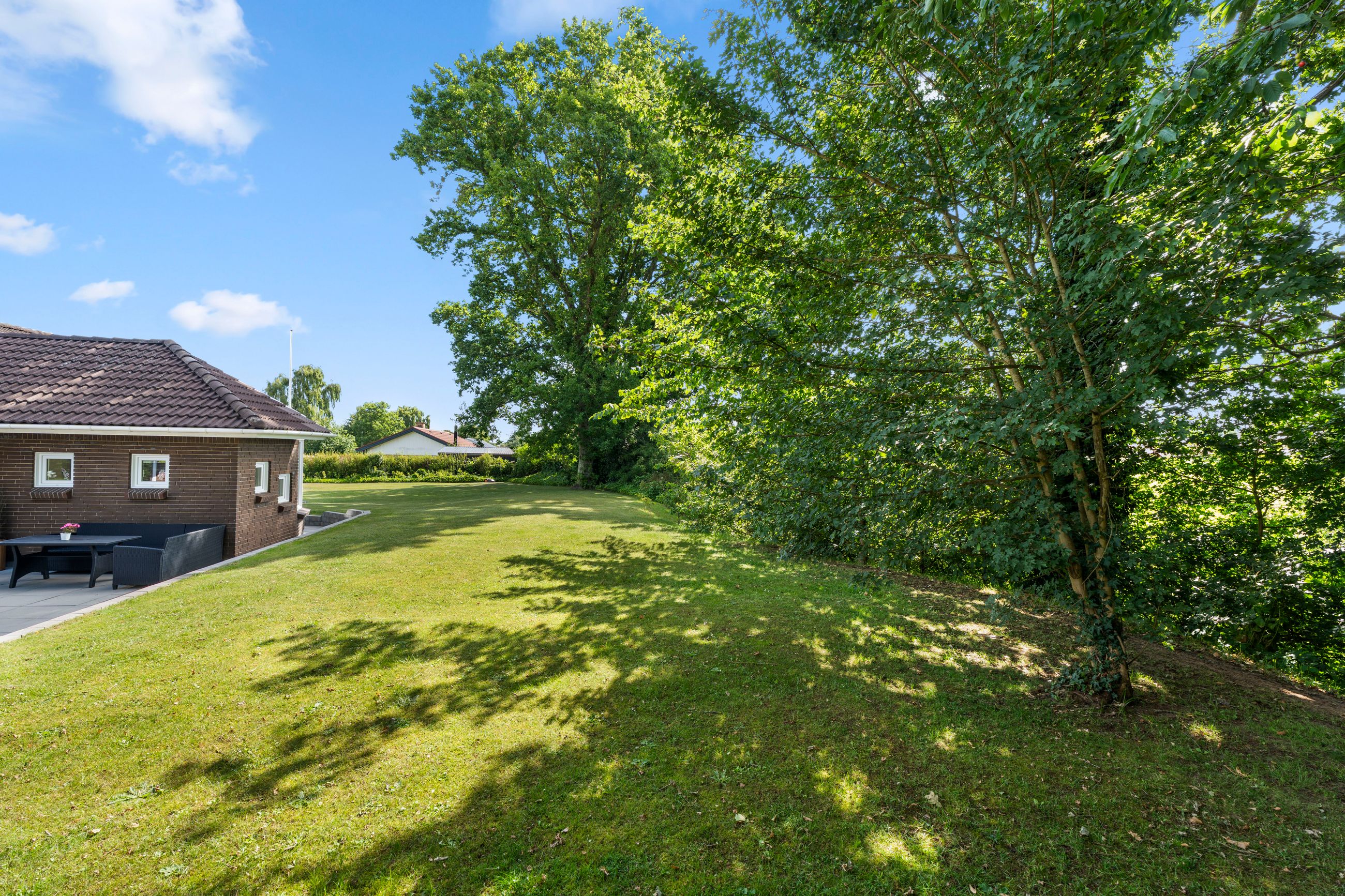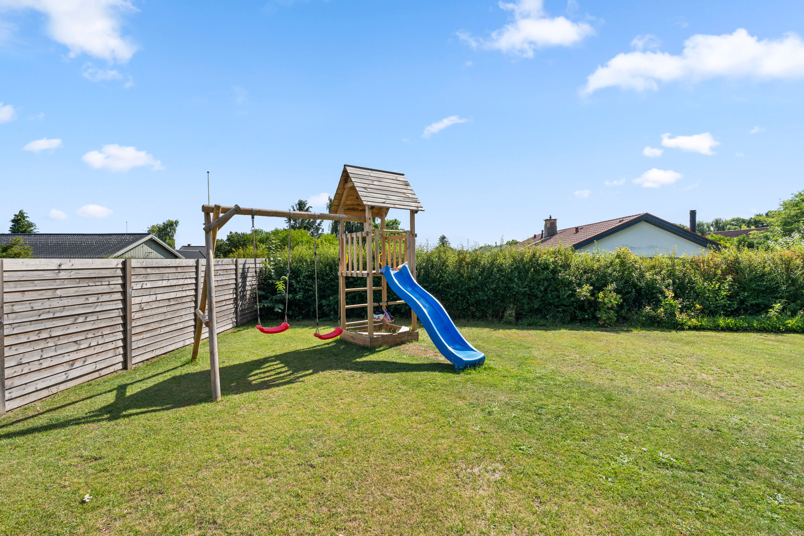 Udendørs venter en flot anlagt have på hele 1524 kvadratmeter, hvor der er rig mulighed for leg, afslapning og hyggelige stunder under åben himmel. Den rummelige garage på 41 kvadratmeter byder på gode opbevaringsmuligheder, og det overdækkede areal på 13 kvadratmeter giver ekstra plads til cykler, haveredskaber eller lignende. Det store, flotte flisebelagte område er en oplagt oase til at nyde solskinnet og lange sommeraftener.