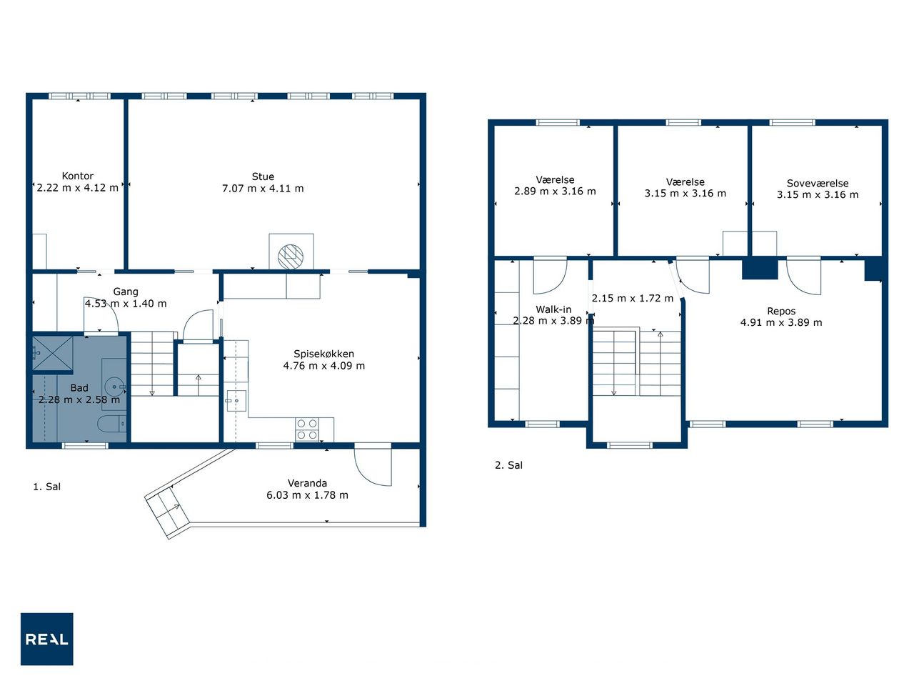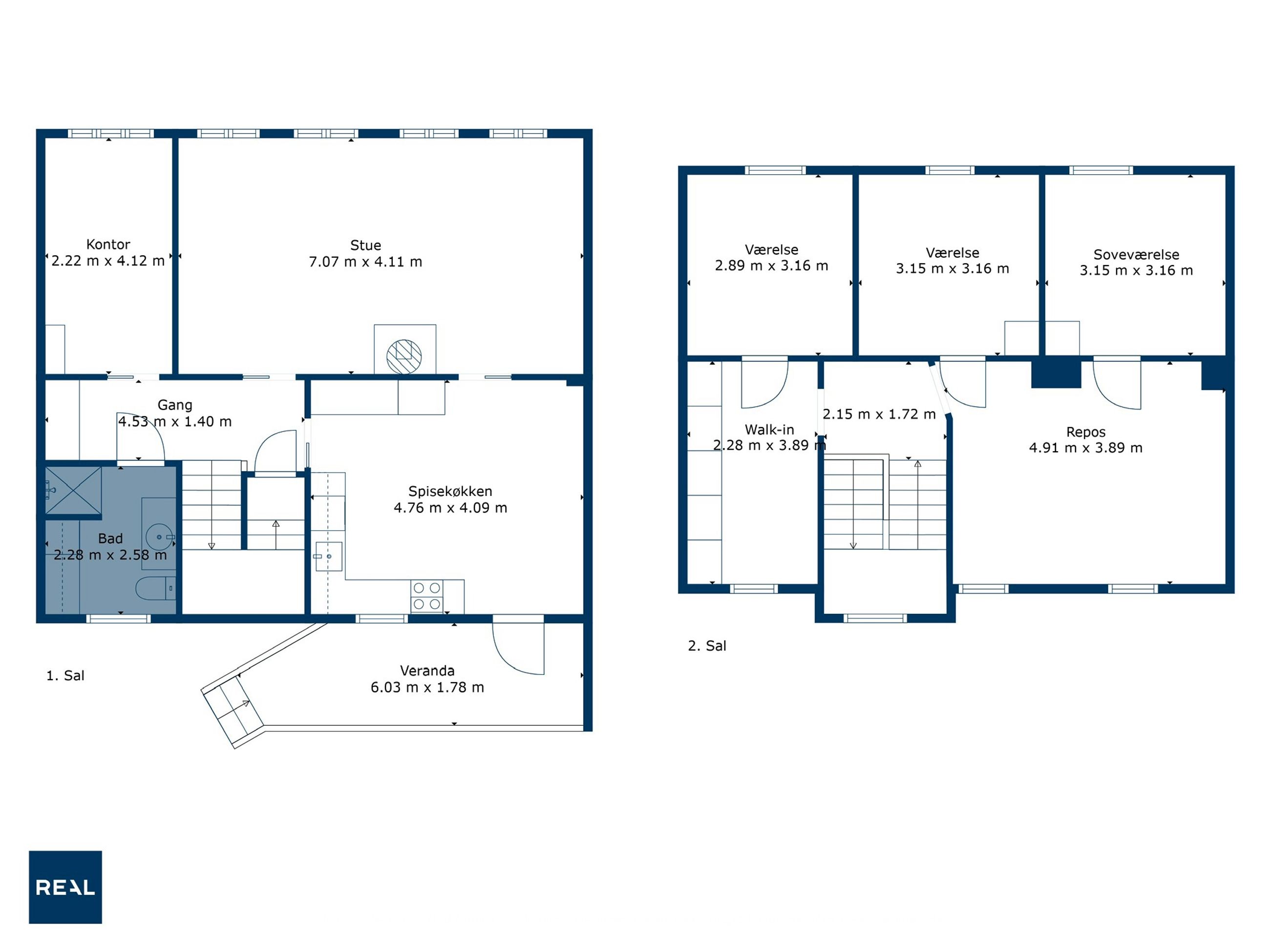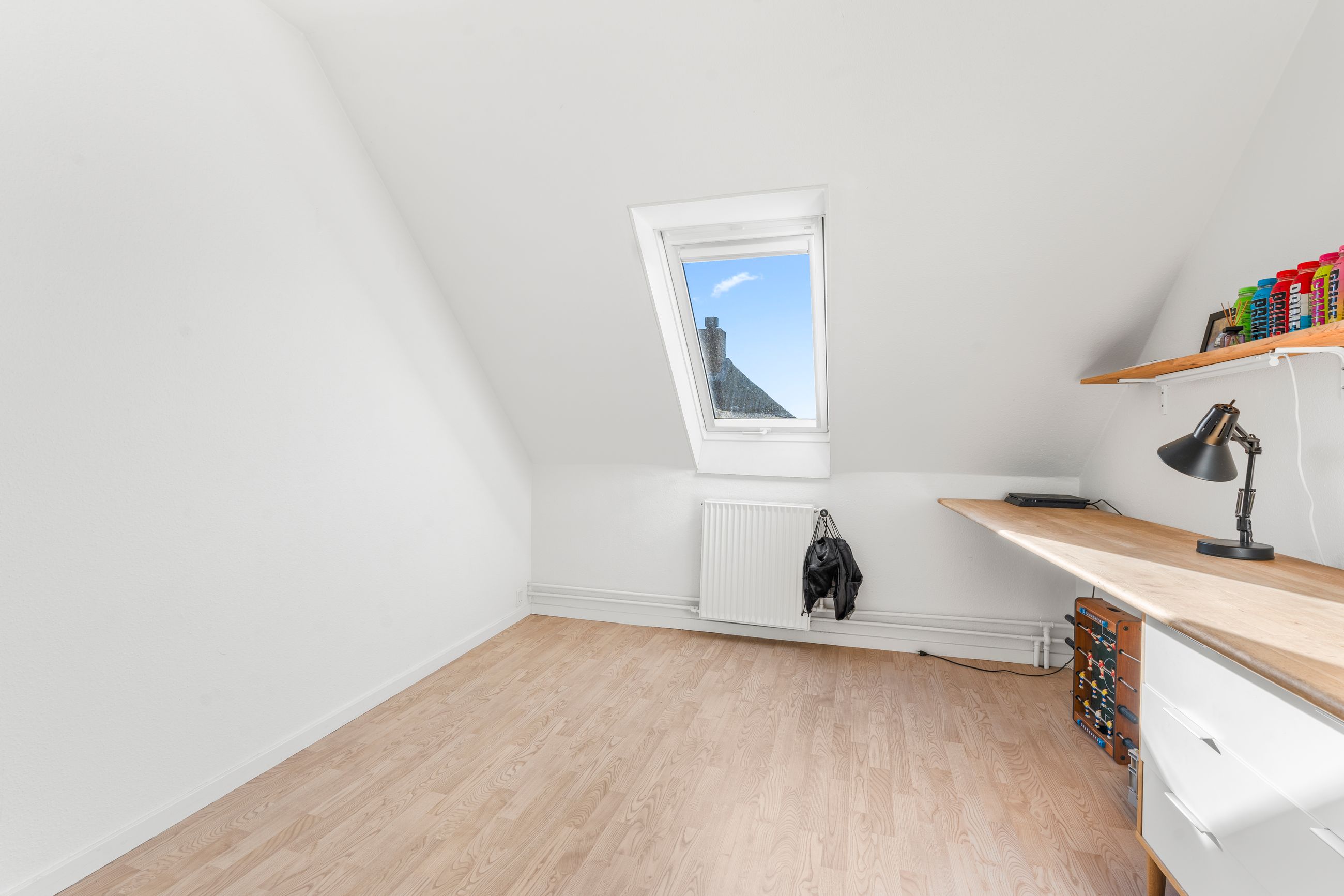 På øverste etage møder vi en repos, der åbner op til et stort multirum eller ekstra stue, som kan indrettes efter behov. Herudover findes tre gode værelser samt ekstra garderobeplads. Der er også mulighed for at etablere et fint gæstetoilet eller badeværelse, hvilket kan gøre etagen endnu mere funktionel.