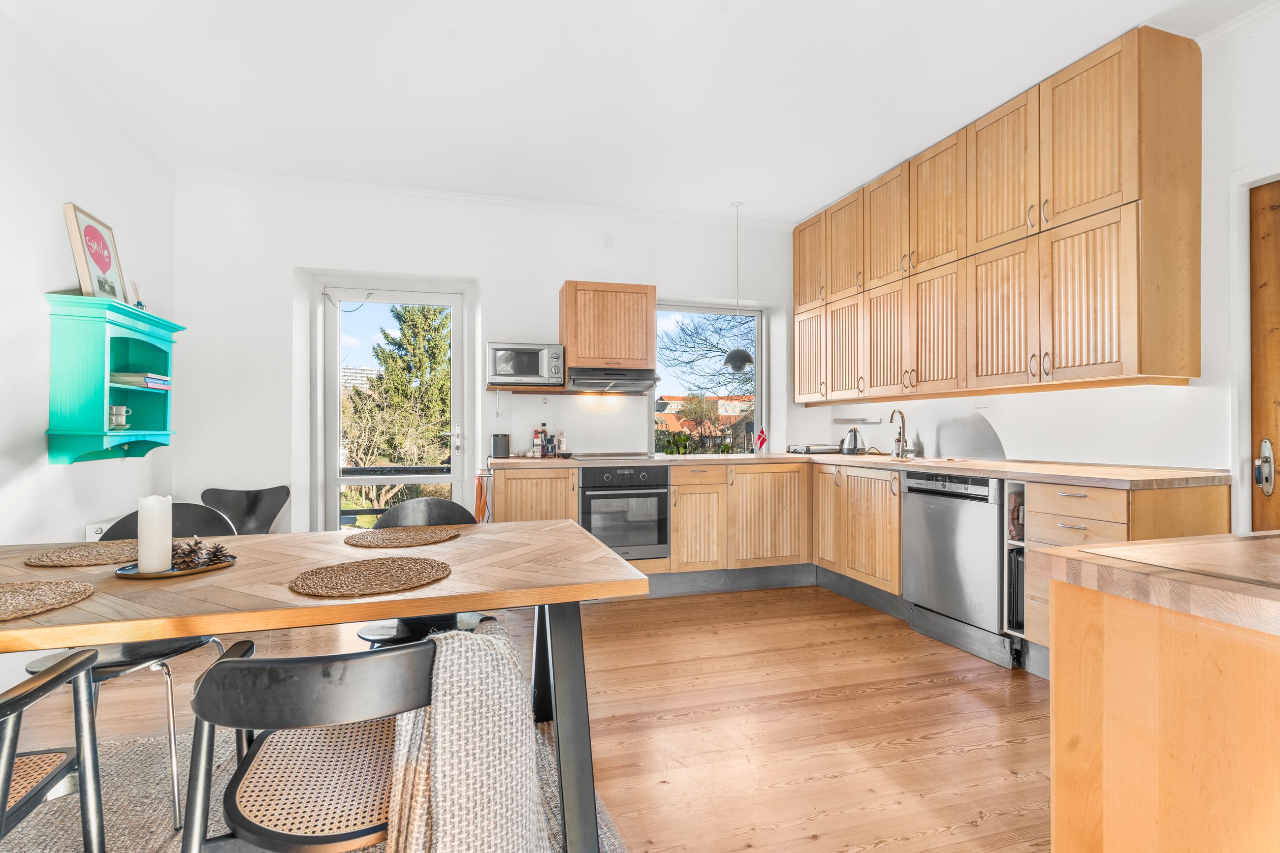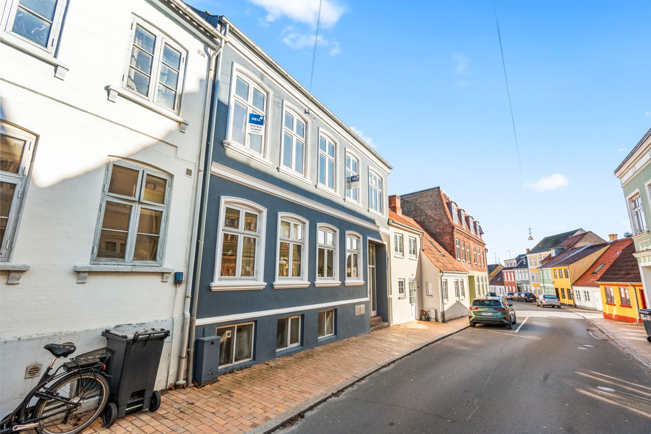 Vi har nu fornøjelsen af at udbyde denne skønne lejlighed på Slagtergade 50, 1. Her får I en rummelig og charmerende bolig med højt til loftet og en attraktiv beliggenhed i hjertet af Haderslev. Fra adressen har I nem adgang til byens mange faciliteter, herunder indkøbsmuligheder, caféer og spisesteder. Desuden ligger skole, daginstitutioner og dagligvarebutikker inden for kort afstand, hvilket gør hverdagen bekvem.