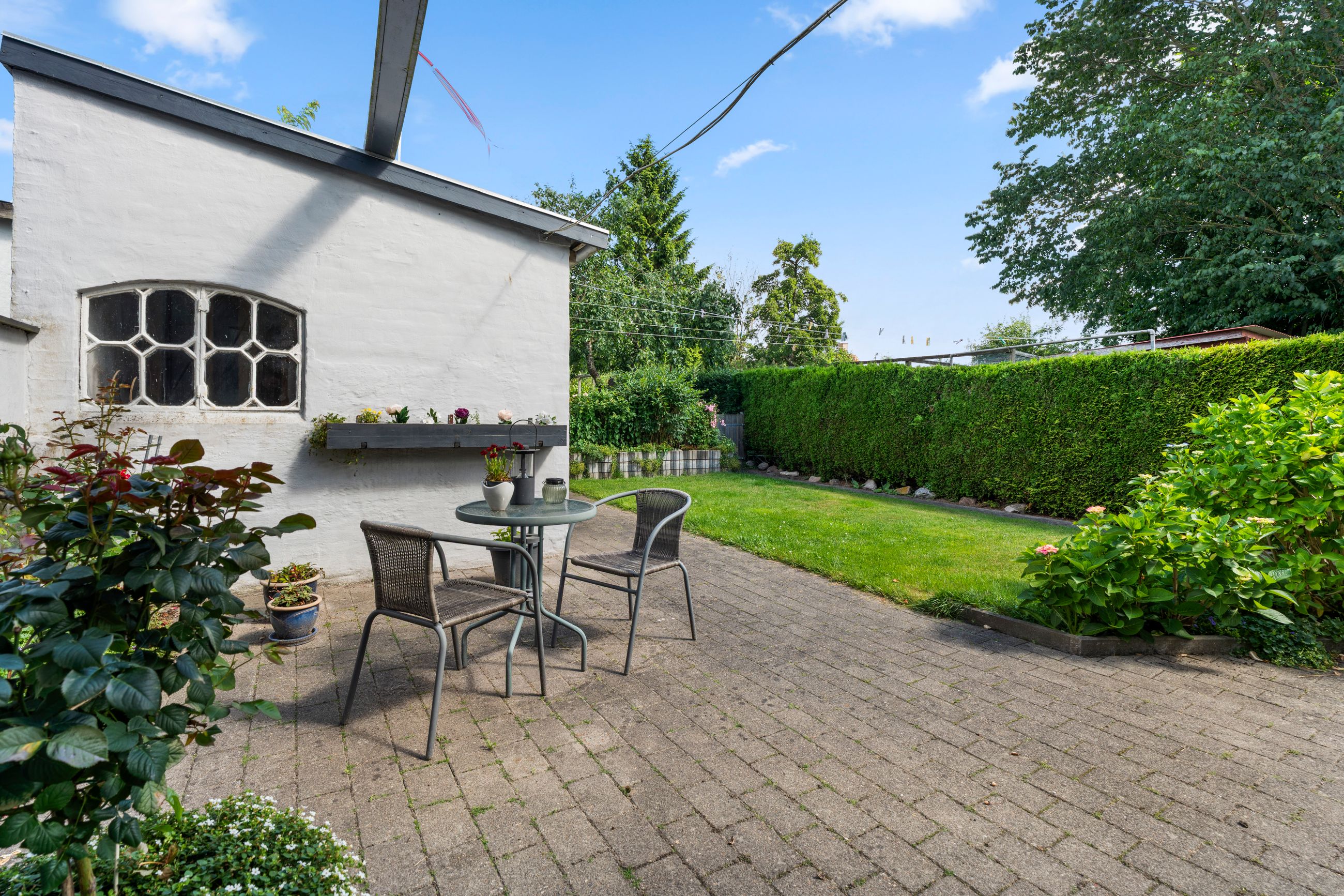 Udendørs har ejendommen en hyggelig fælles have, som deles med stueetagens beboere. Den bagerste del af haven tilhører denne bolig og tilbyder et privat og fredeligt område, hvor man kan skabe sin egen grønne oase. Her findes også et lille anneks, der giver ekstra anvendelsesmuligheder.
