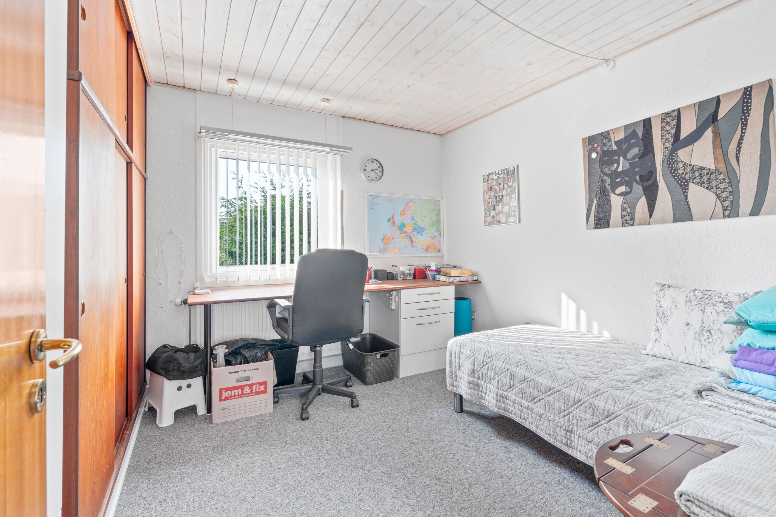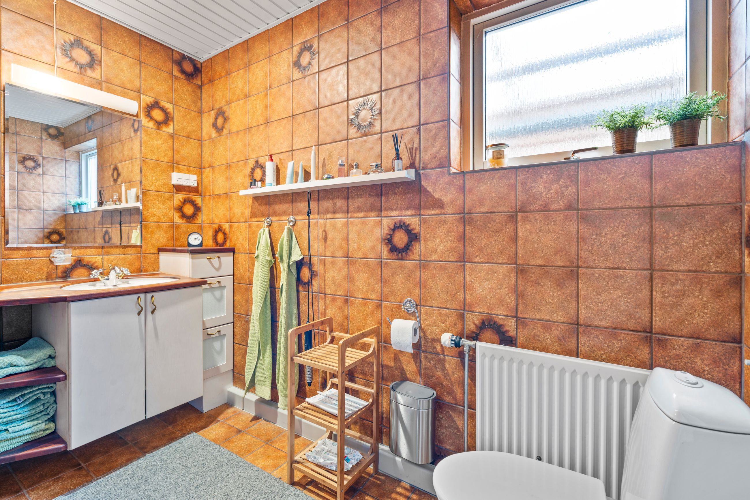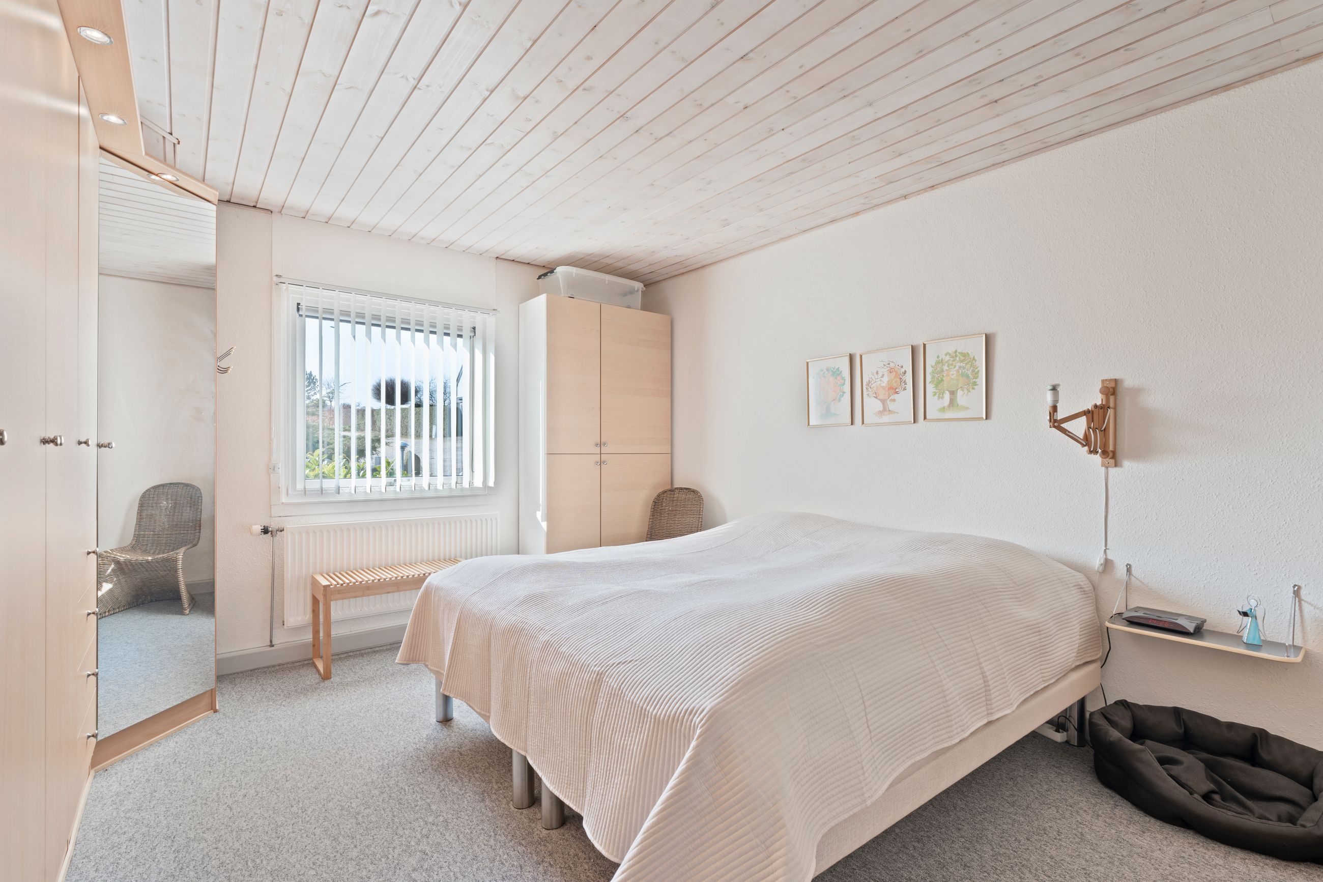 Der er herudover et rigtig fint køkken med god skabsplads samt to gode værelser, hvor det ene har walk-in og et gæstetoilet.