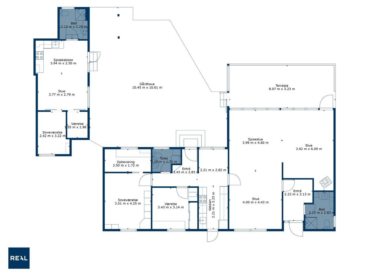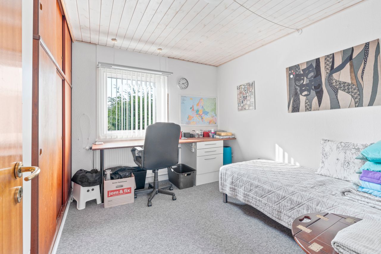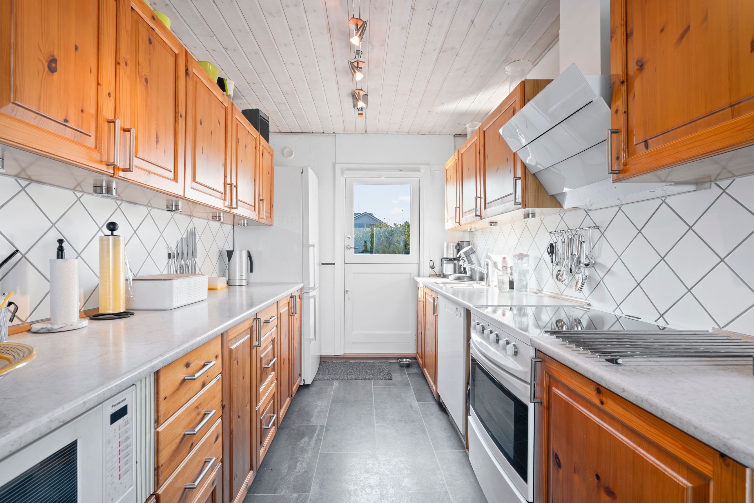 Der er herudover et rigtig fint køkken med god skabsplads samt to gode værelser, hvor det ene har walk-in og et gæstetoilet.