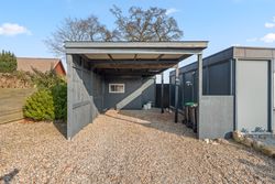 Hovedhuset har også en virkelig fin kælder på 100 kvadratmeter, som benyttes delvist som garage. Denne kælder er en tidligere bunker, men er rigtig fin og brugbar. Derudover er der en separat garage på 21 kvadratmeter, hvilket giver gode parkerings- og opbevaringsmuligheder.