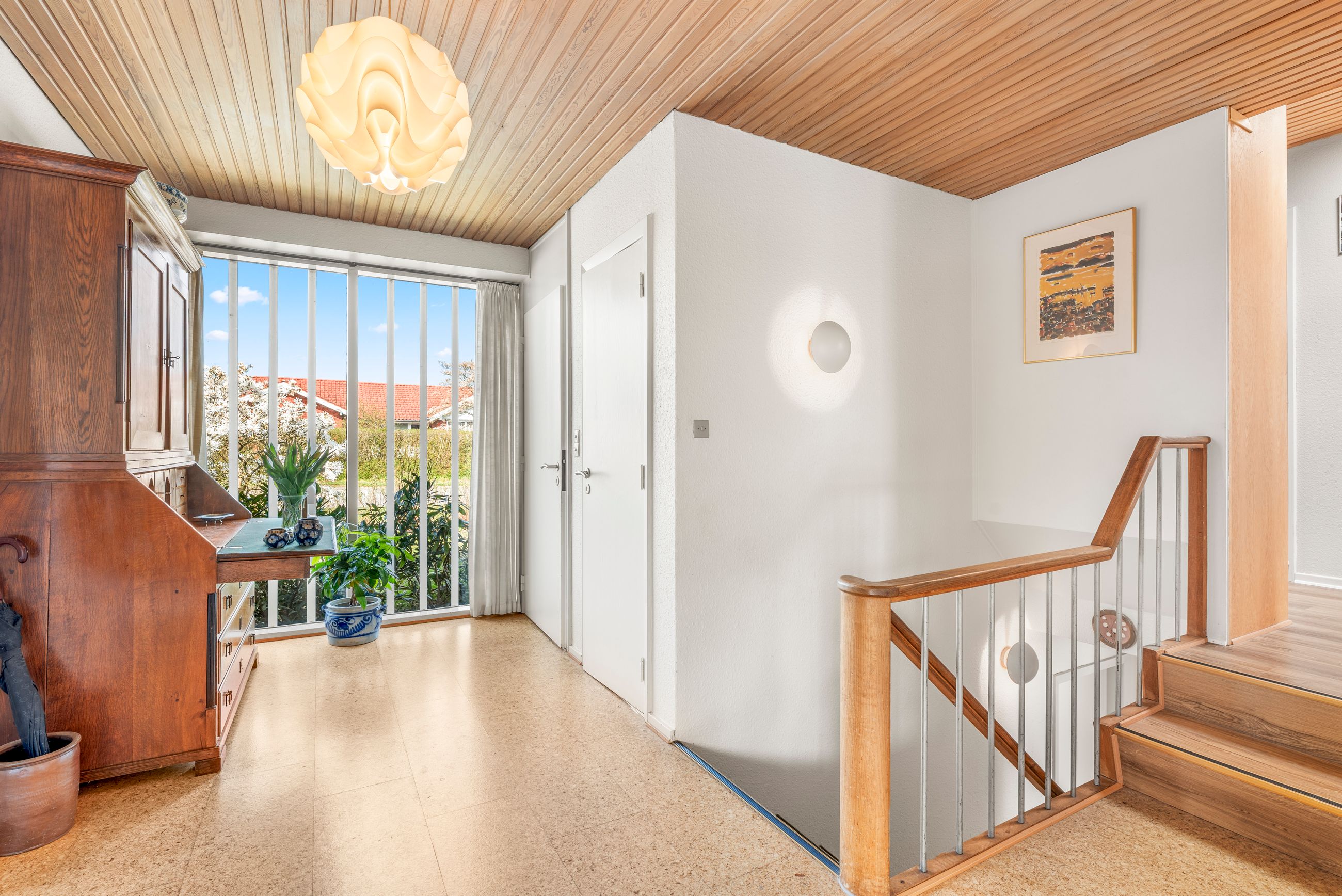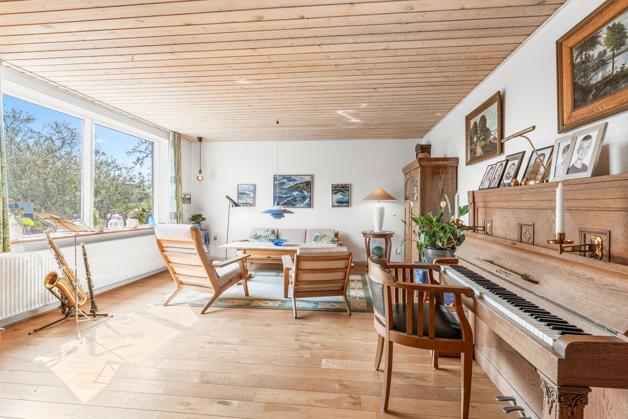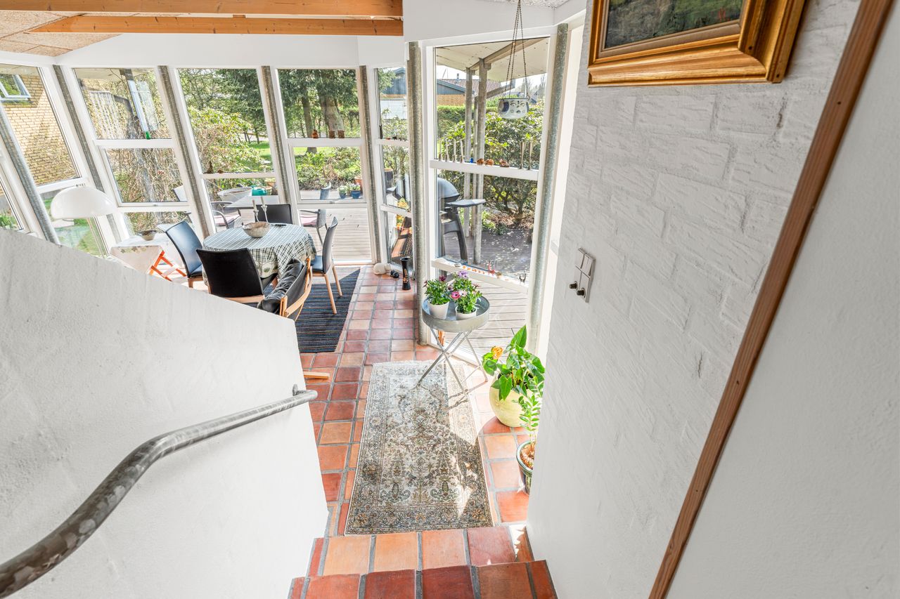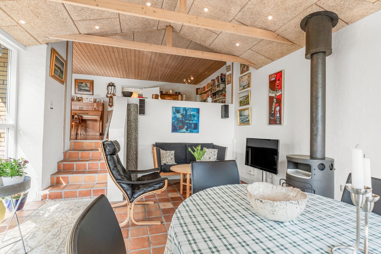 Indendørs får du en spændende planløsning med mange hyggelige kroge og detaljer: