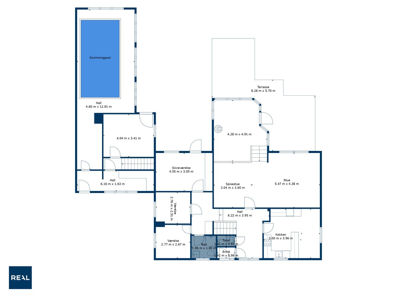 • Poolområdet har egen indgang og stort vinduesparti, der giver et lækkert lysindfald og mulighed for at skabe en eksklusiv hjemme-spa.