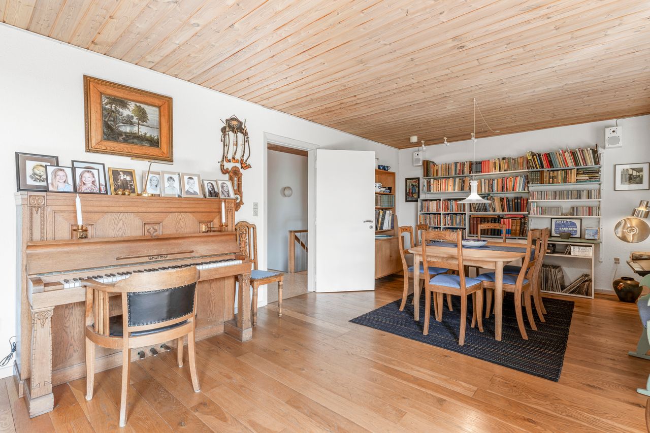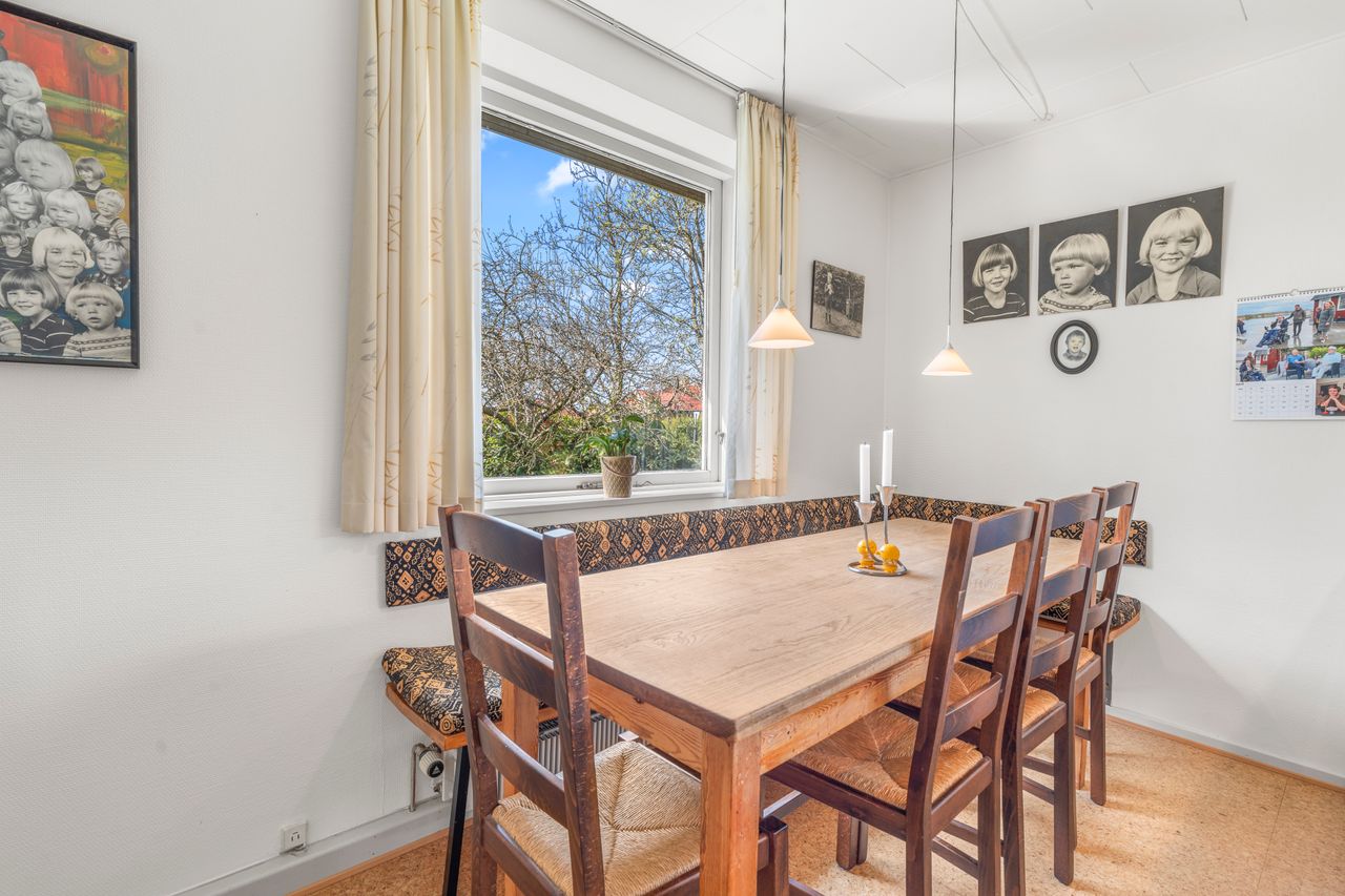 • Tre værelser og et soveværelse, som ligger godt afskærmet fra opholdsrummene, gør huset ideelt til børnefamilien.