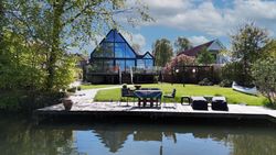 I stueplan findes desuden et elegant og stilfuldt badeværelse samt et soveværelse. Førstesalen rummer endnu et badeværelse, et soveværelse og en flot repos med adgang til en unik afdeling med glasgulv. Heroppe finder du også en kæmpestor hems med et utal af anvendelsesmuligheder – hvad end det er til leg, kontor, opbevaring eller kreative projekter.
