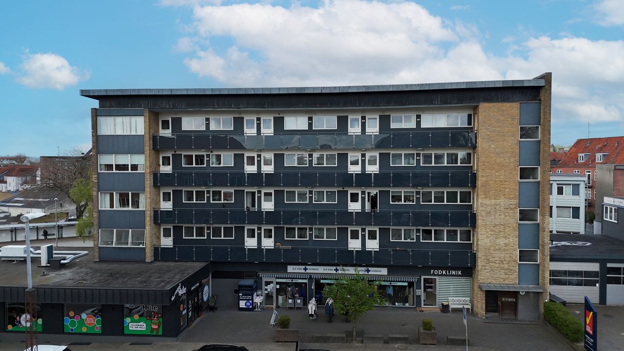 Midt i hjertet af Haderslev finder du denne fine lejlighed på 57 kvm, beliggende i en veldrevet ejerforening med elevator – en sjælden bekvemmelighed i bymidten.