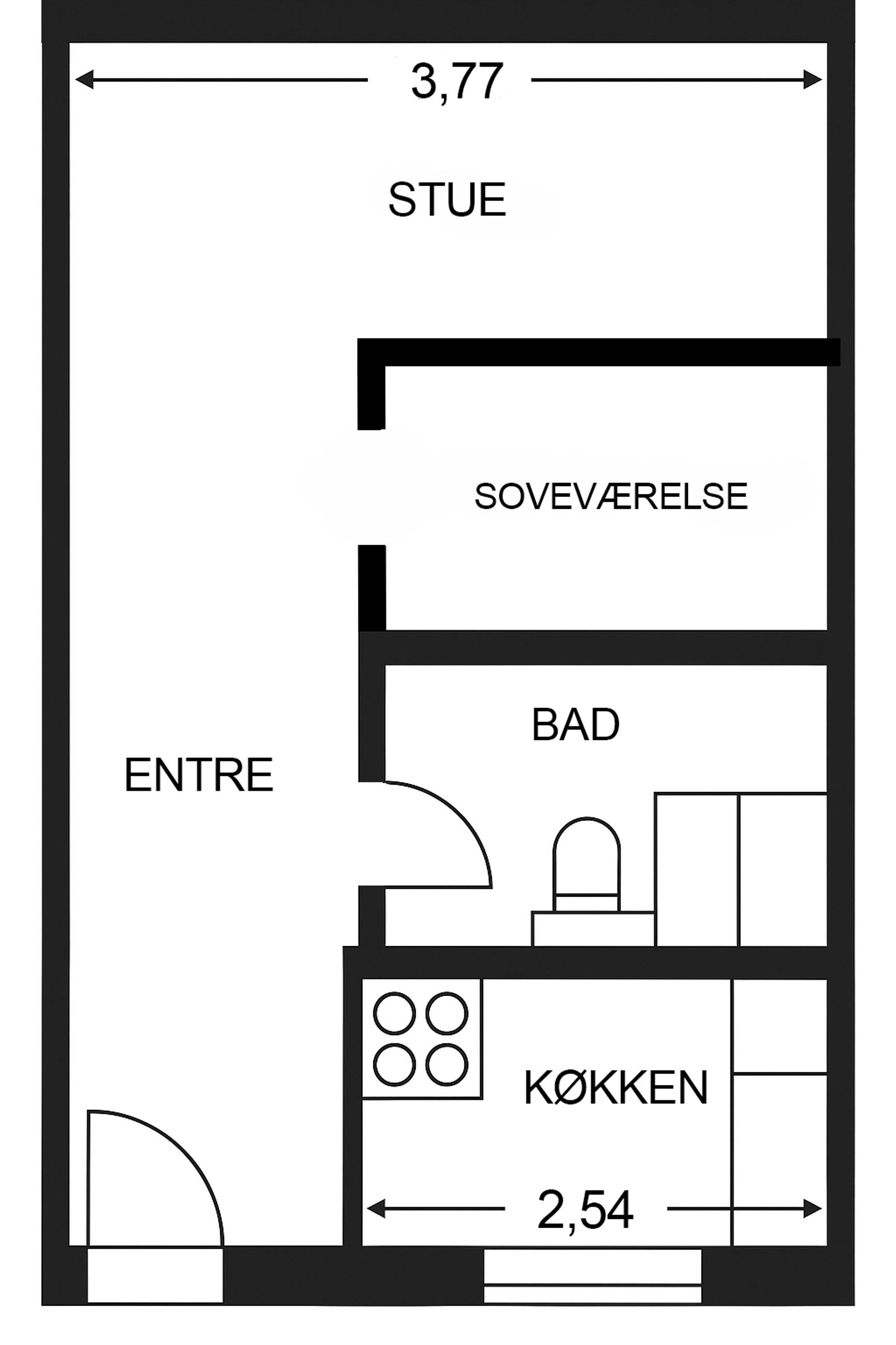 Lejligheden byder på en praktisk planløsning med køkken, badeværelse, en hyggelig stue med plads til sofaarrangement samt et separat soveværelse.