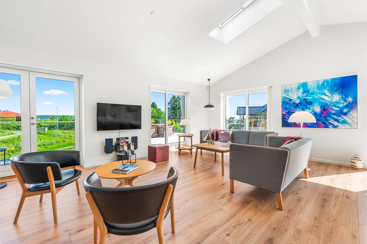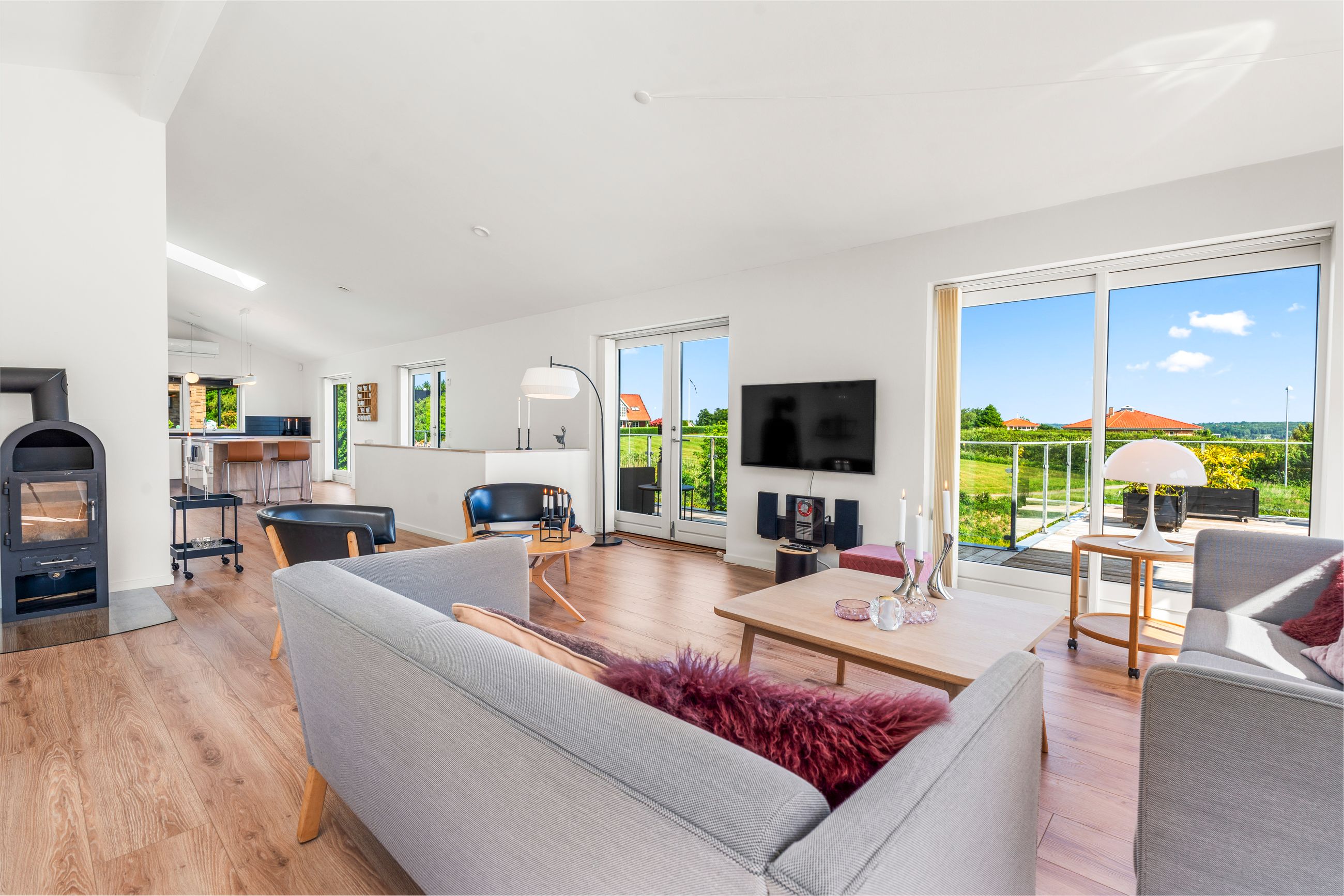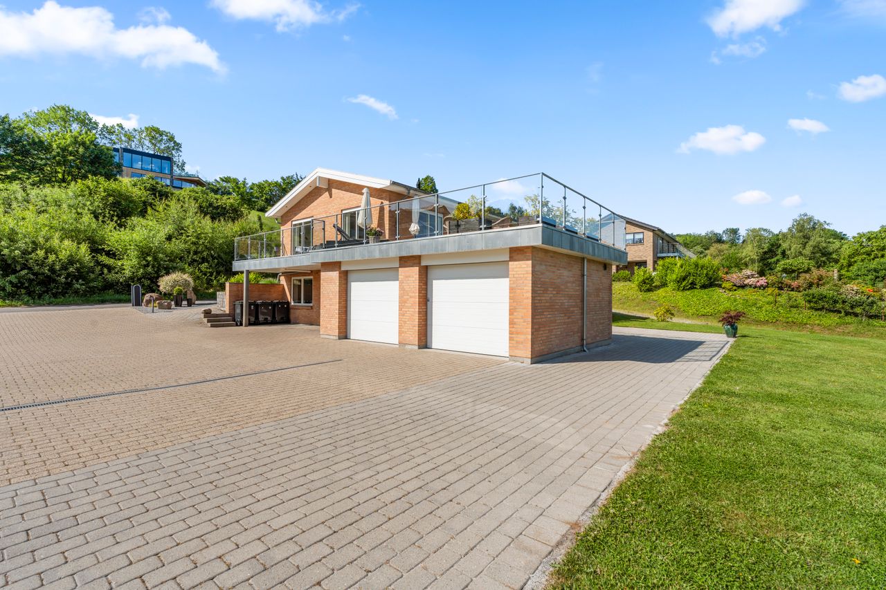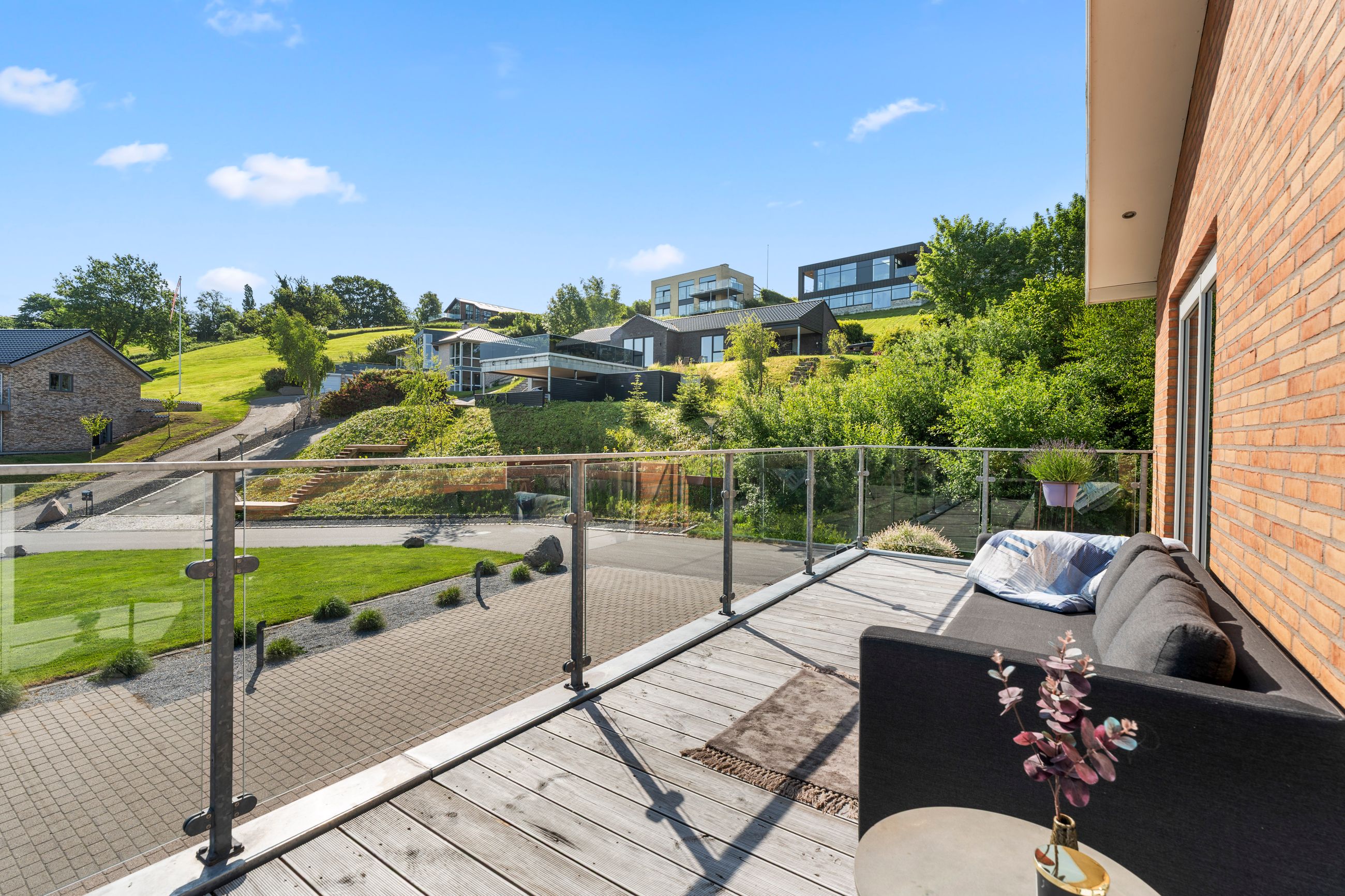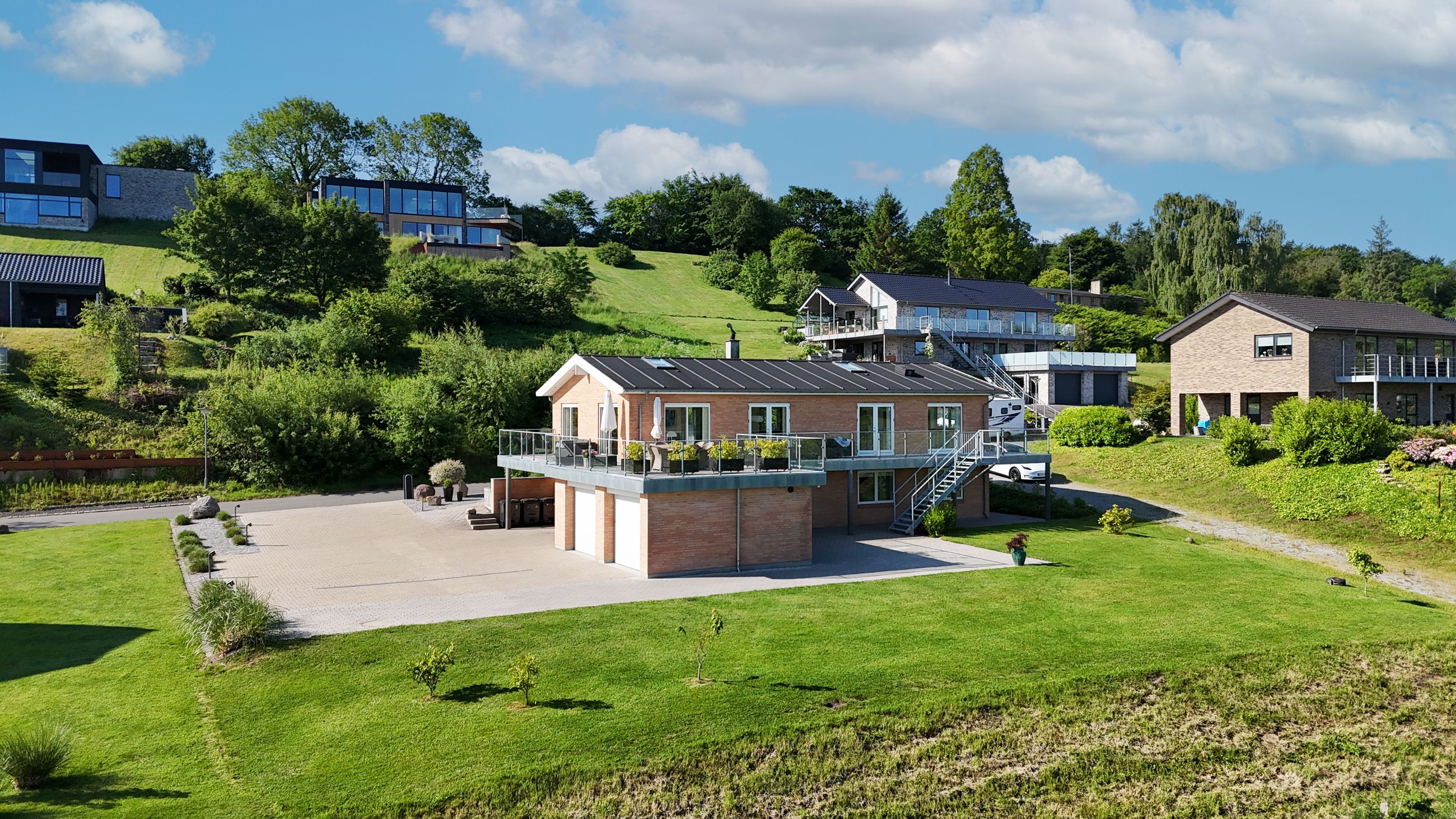 Grunden er på 1.175 kvadratmeter og er anlagt, så den er nem at holde. Her findes flere hyggelige kroge og terrasser, hvor man kan nyde solen og den imponerende udsigt over fjorden og det grønne landskab. Alt fremstår utroligt velholdt og indflytningsklart – en ejendom, der i både udtryk, komfort og beliggenhed skiller sig markant ud fra mængden.