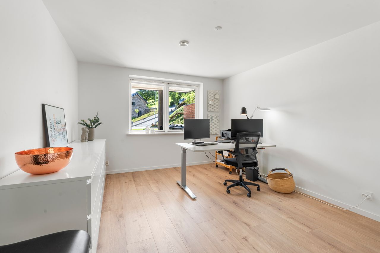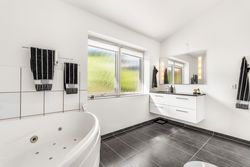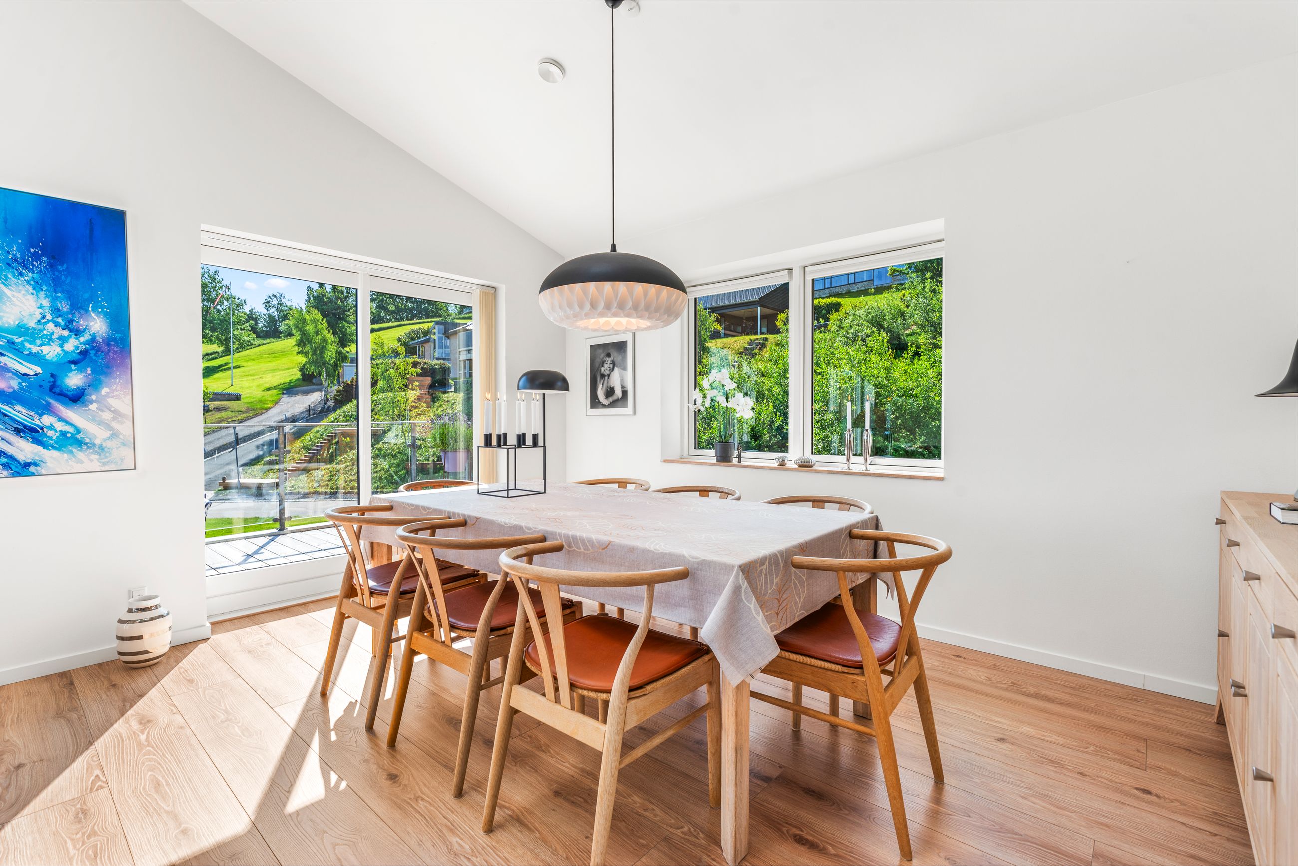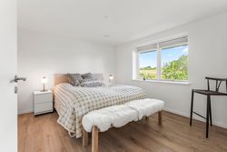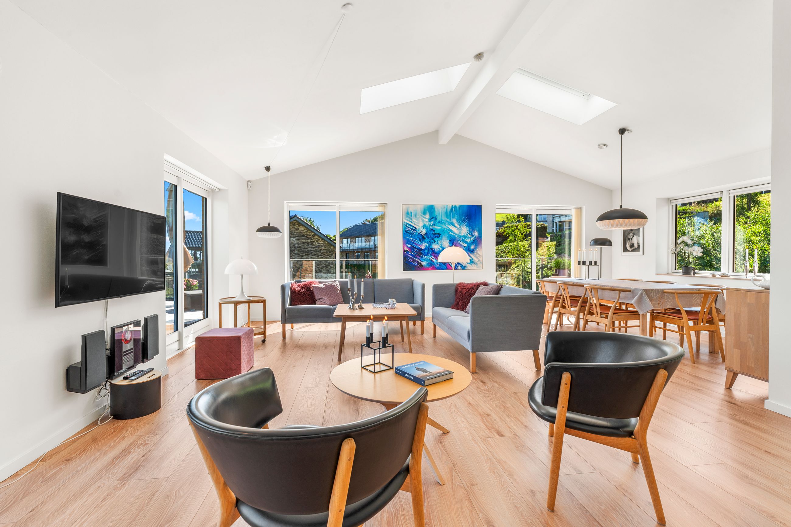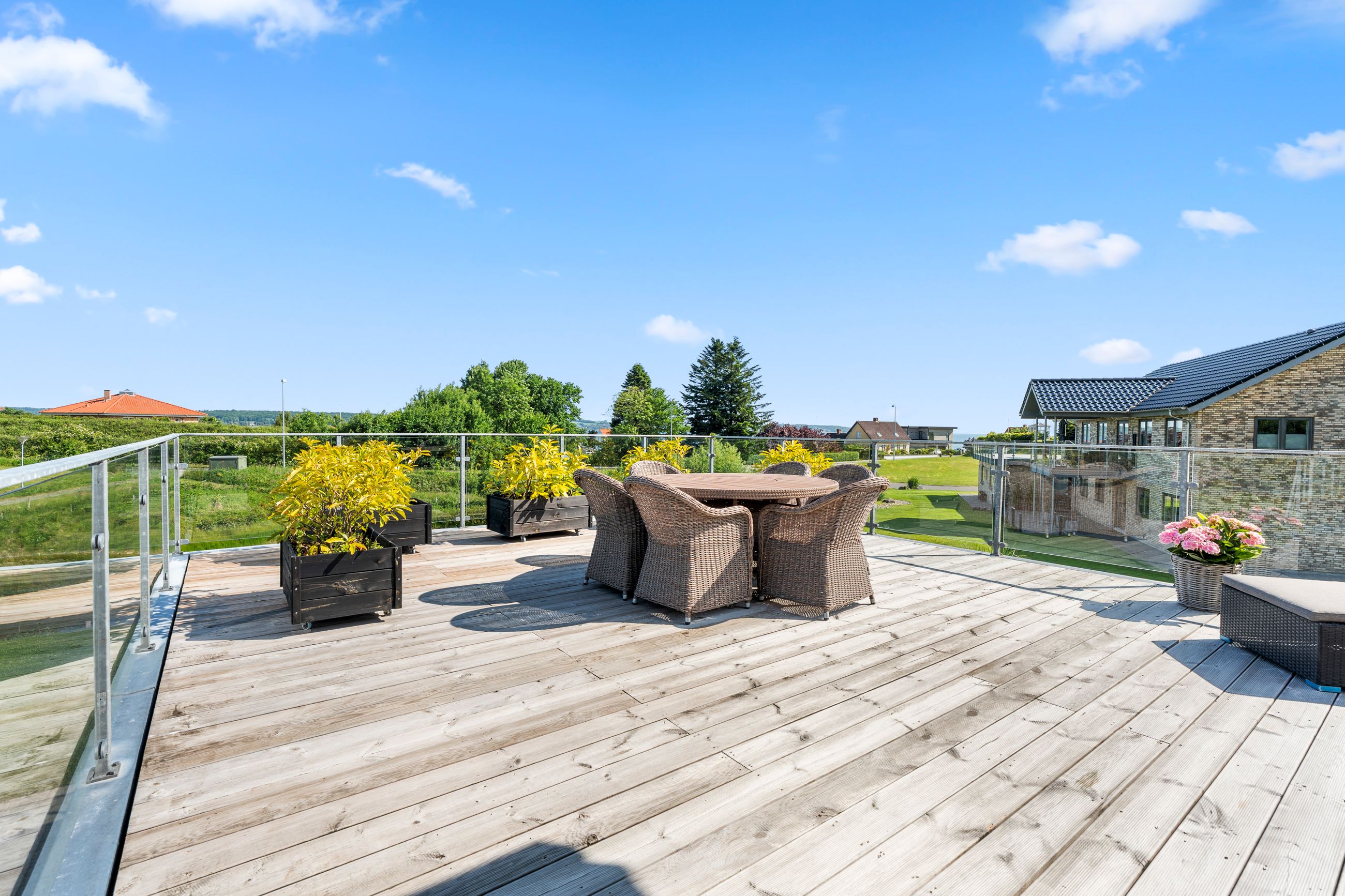 Grunden er på 1.175 kvadratmeter og er anlagt, så den er nem at holde. Her findes flere hyggelige kroge og terrasser, hvor man kan nyde solen og den imponerende udsigt over fjorden og det grønne landskab. Alt fremstår utroligt velholdt og indflytningsklart – en ejendom, der i både udtryk, komfort og beliggenhed skiller sig markant ud fra mængden.