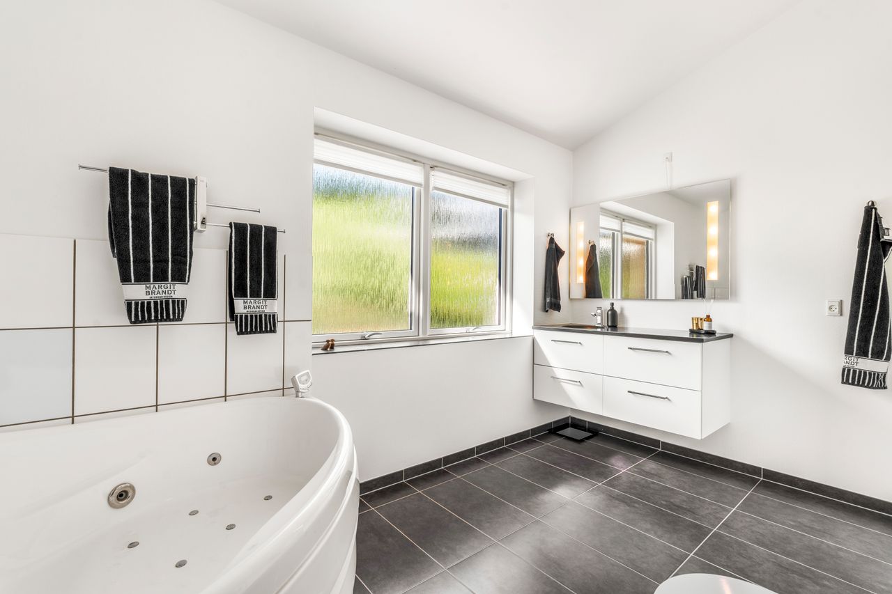 I underetagen findes fire gode værelser, endnu et badeværelse, et praktisk bryggers samt et stort og indretningsvenligt repos, der kan bruges til alt fra legerum og hjemmebiograf til kontor eller hobbyrum.