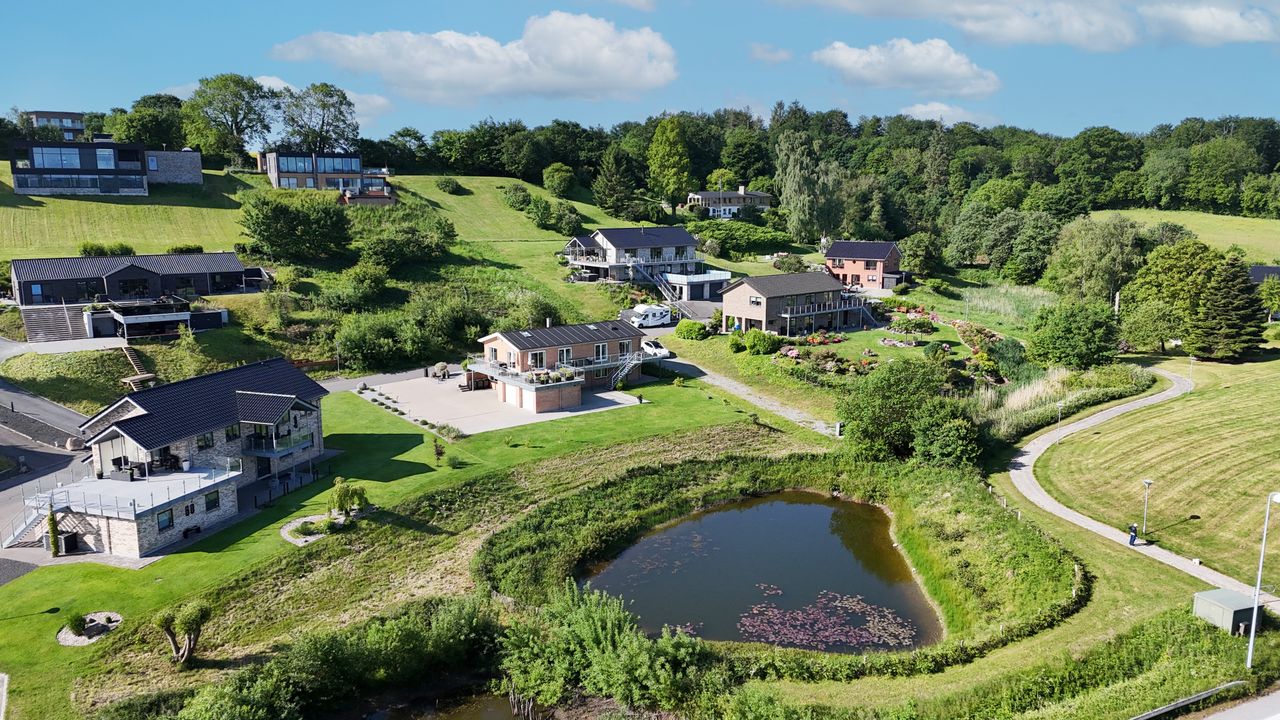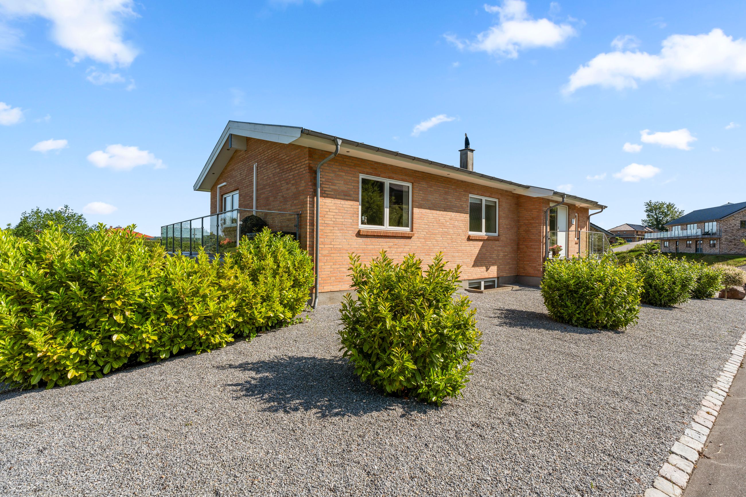 Ejendommen er beliggende i et af Hostrupskovs mest attraktive og velanlagte områder, hvor alle huse er placeret med tanke på både udsigt og privatliv. Her er der god afstand mellem boligerne, og man får en fantastisk følelse af lys, luft og frihed. Mod nord er der ingen naboer – kun et stort grønt område med sø og den smukke udsigt over Aabenraa Fjord som naturligt bagtæppe.