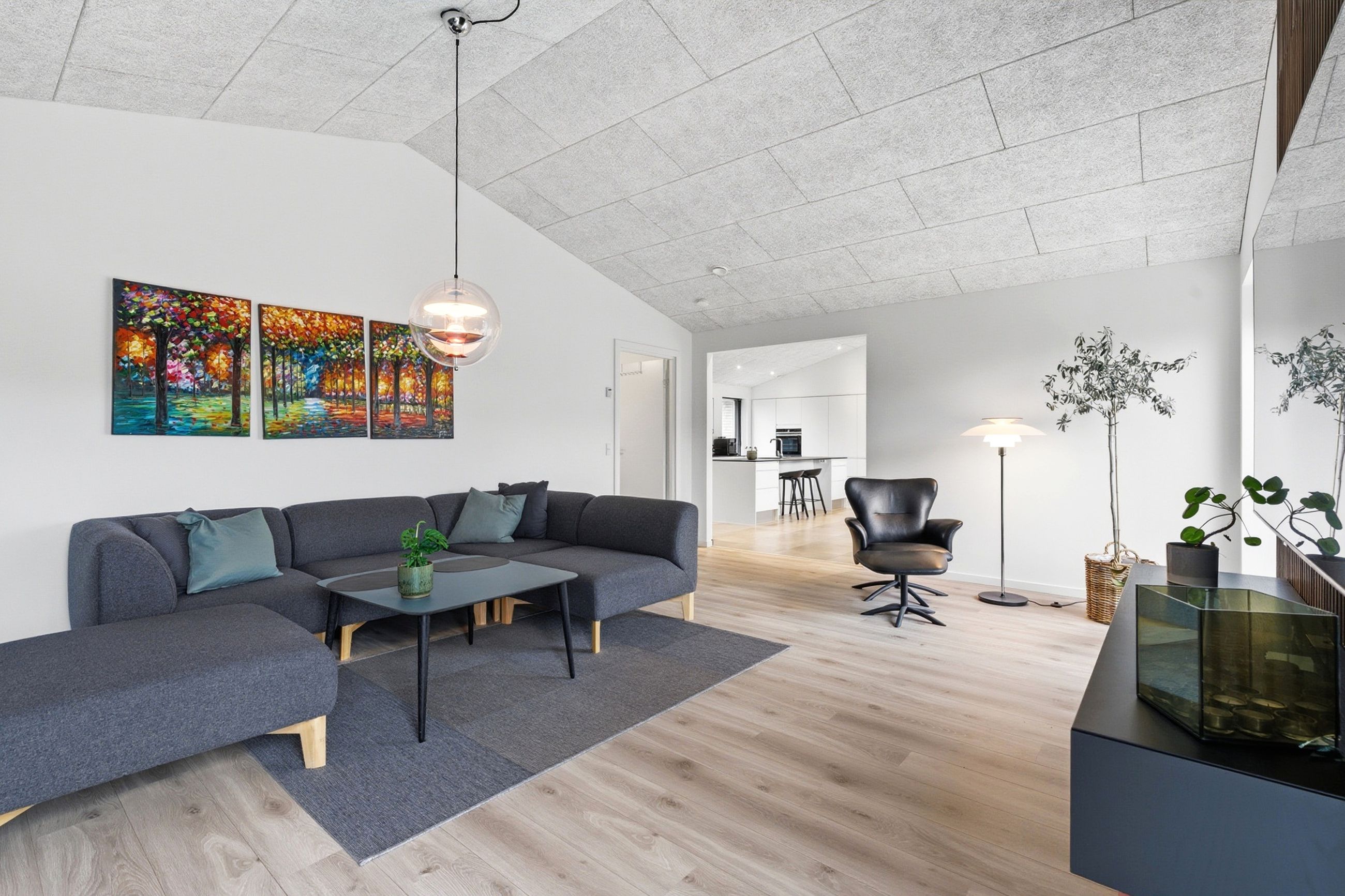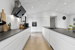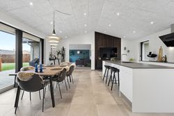 Allerede når du træder ind, fornemmer du rummeligheden. Husets hjerte er det store, åbne køkken-alrum på over 35 m2, som ligger i naturlig forbindelse med spisestue og opholdsrum. Loftshøjden, lysindfaldet og de åbne kig gennem boligen skaber en eksklusiv og indbydende atmosfære. Her er plads til både lange middage, børnefødselsdage og rolige hverdagsaftener.