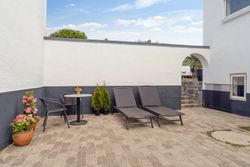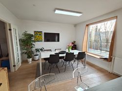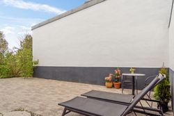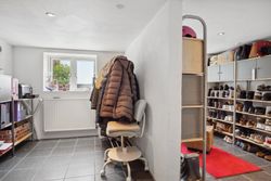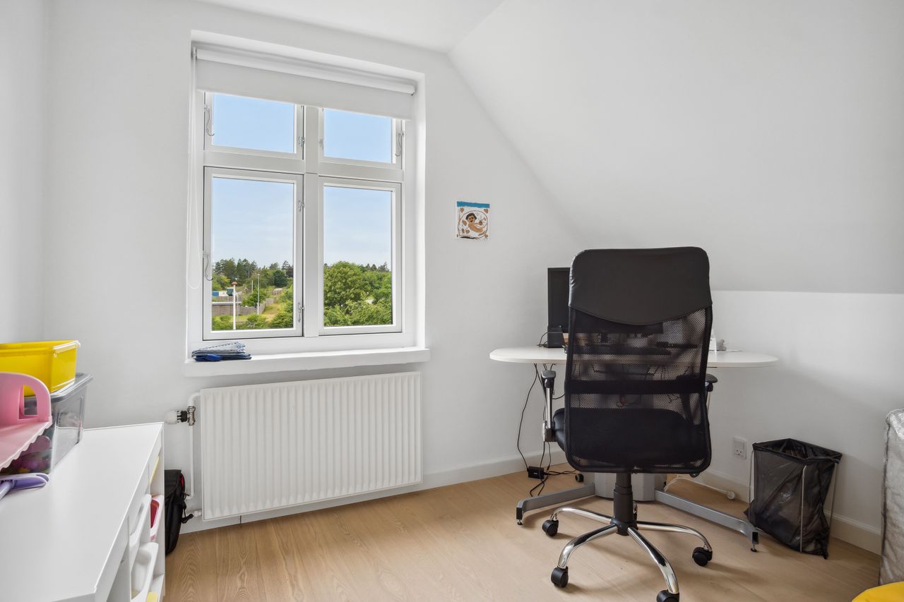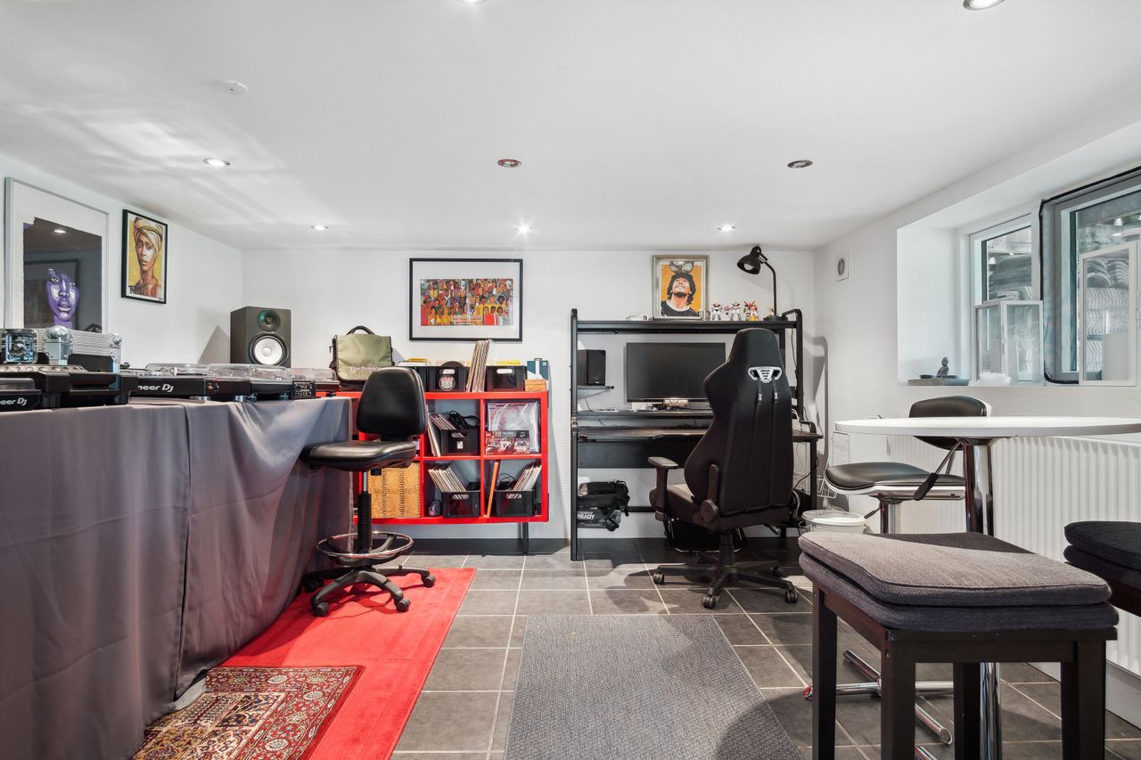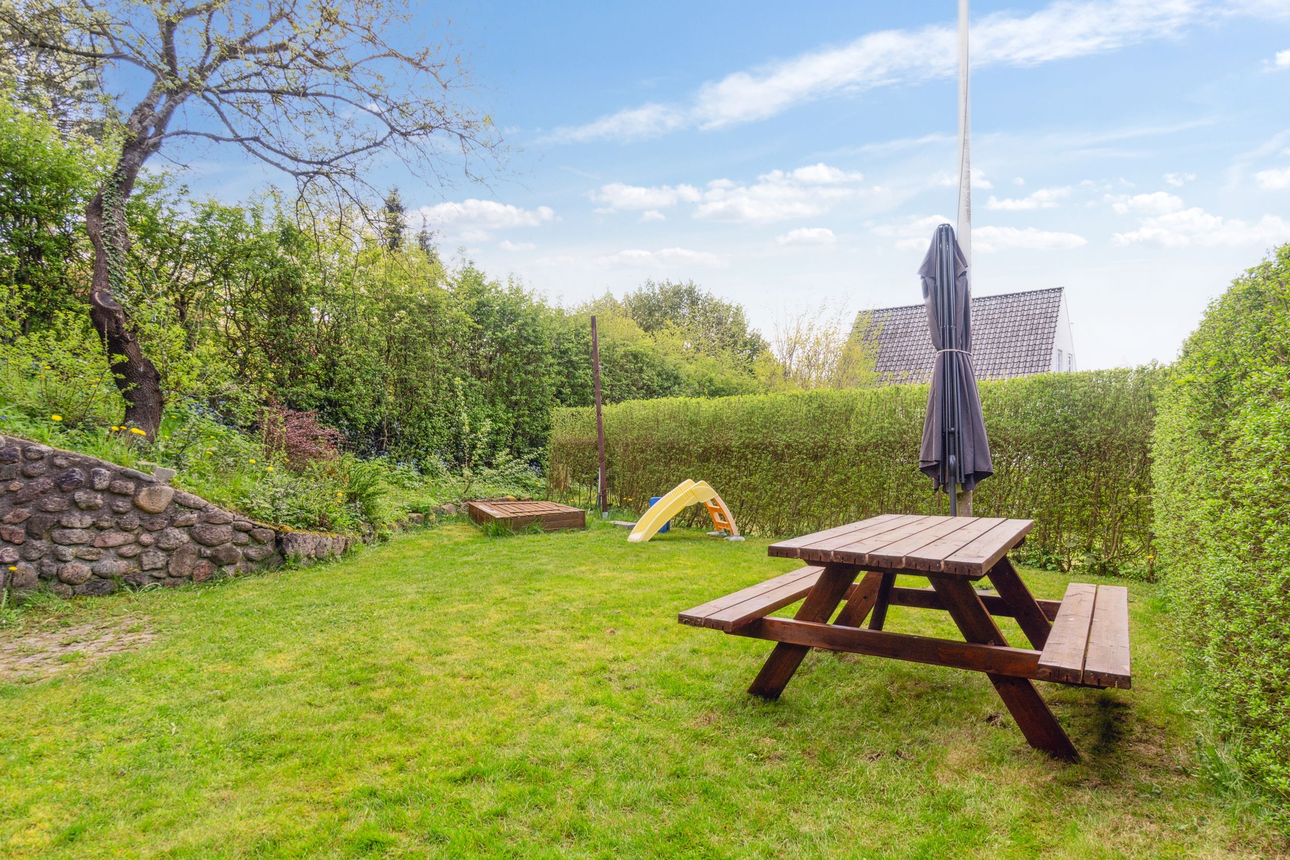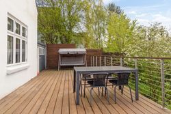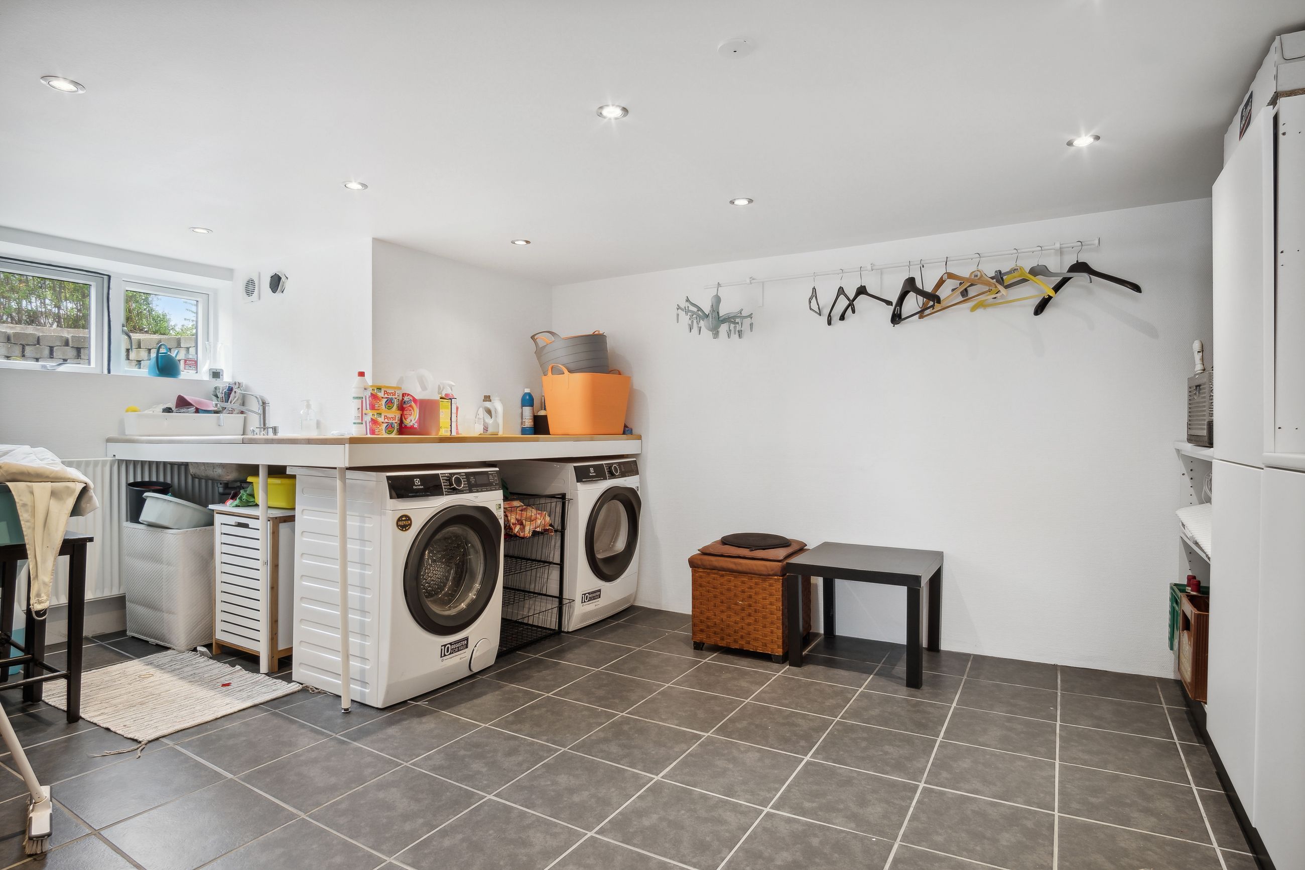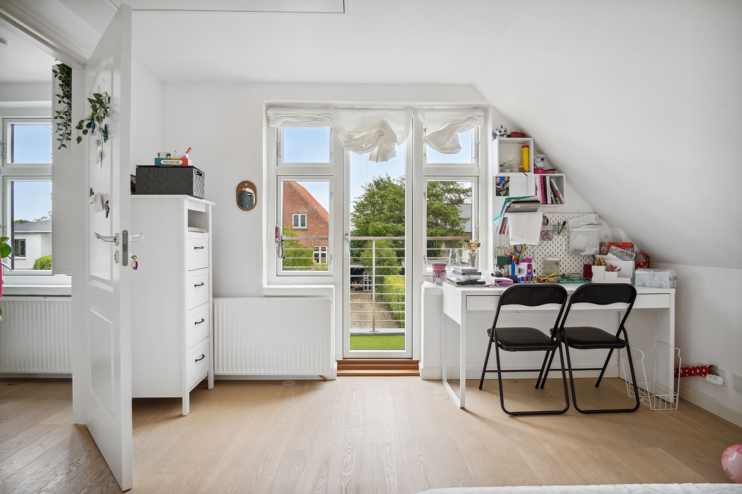 Udenfor kan familien samles på den store træterrasse eller i den hyggelige gårdhave, mens den opvoksede have byder på æbletræer og solrige kroge. Kælderen rummer 64 ekstra kvadratmeter, der kan anvendes til alt fra opbevaring og fitness til legeområde for børnene.
