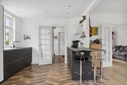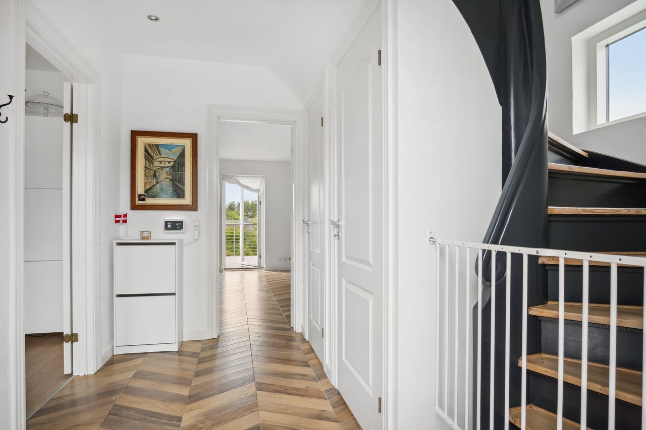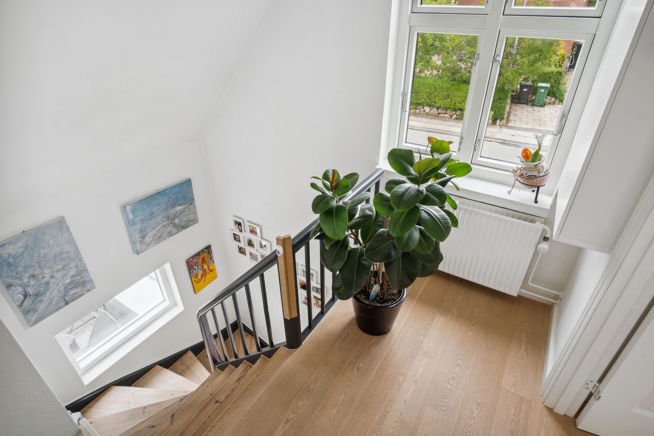 Mange gode detaljer! Karnap i opholdsstuen, flotte trægulve, gipslofter, nyt moderne køkken med wi-fi hvidevarer, massiv stenplade og moderne køkkenelementer, sildebens klingegulv i entre og køkken. Flot gæstetoilet i stueplan, nyt flot badeværelse på 1. salen. Glaserede tagsten, zink inddækninger, zink tagrender, zink kviste. Rustfrit gelænder på den store træterrasse. Vi kunne blive ved.. men anbefaler jer at komme ud at kigge på denne skønhed