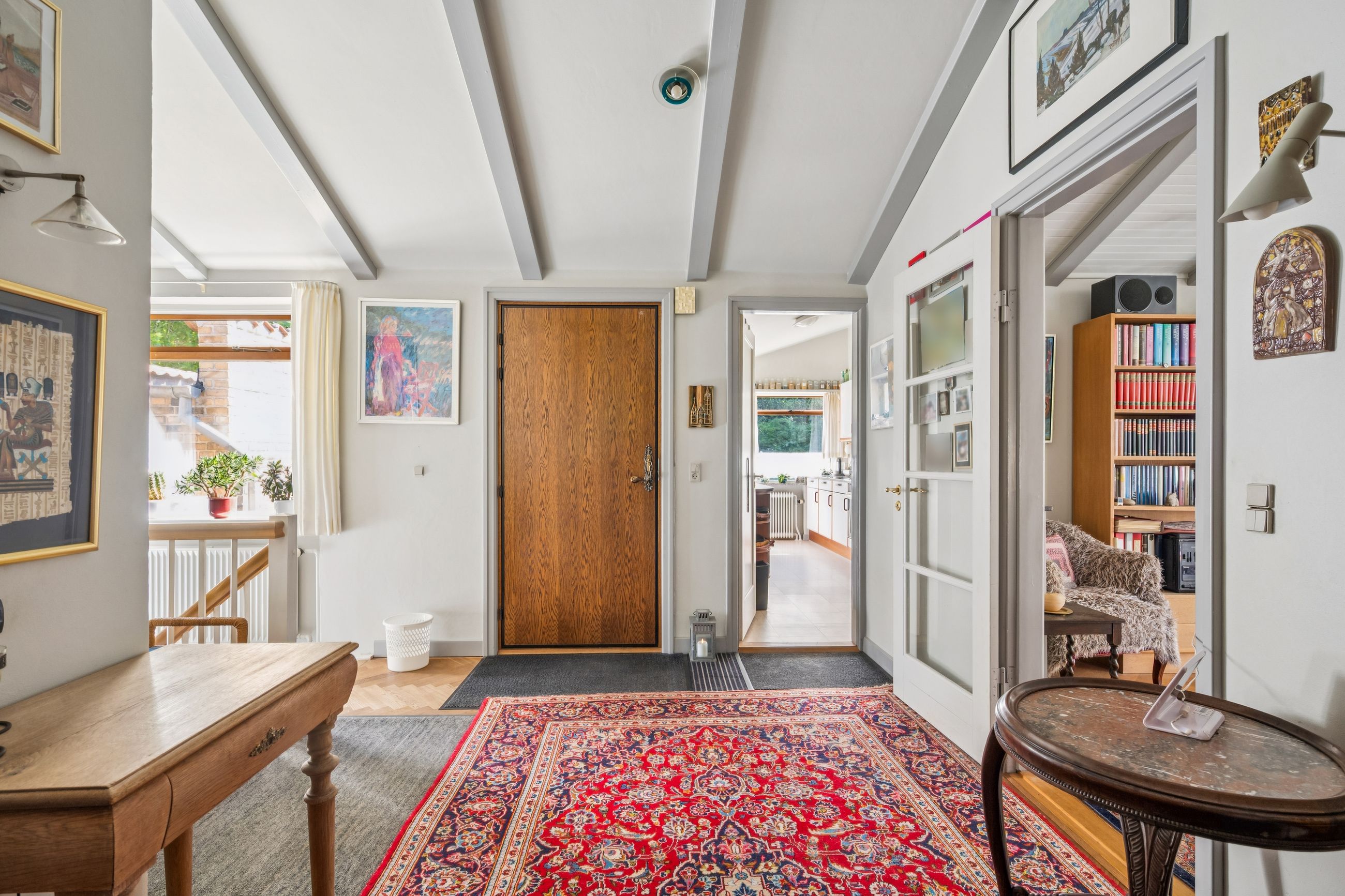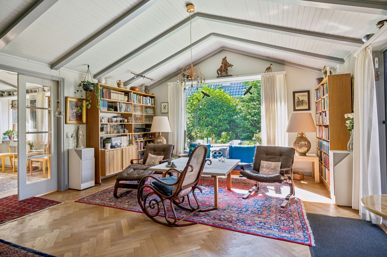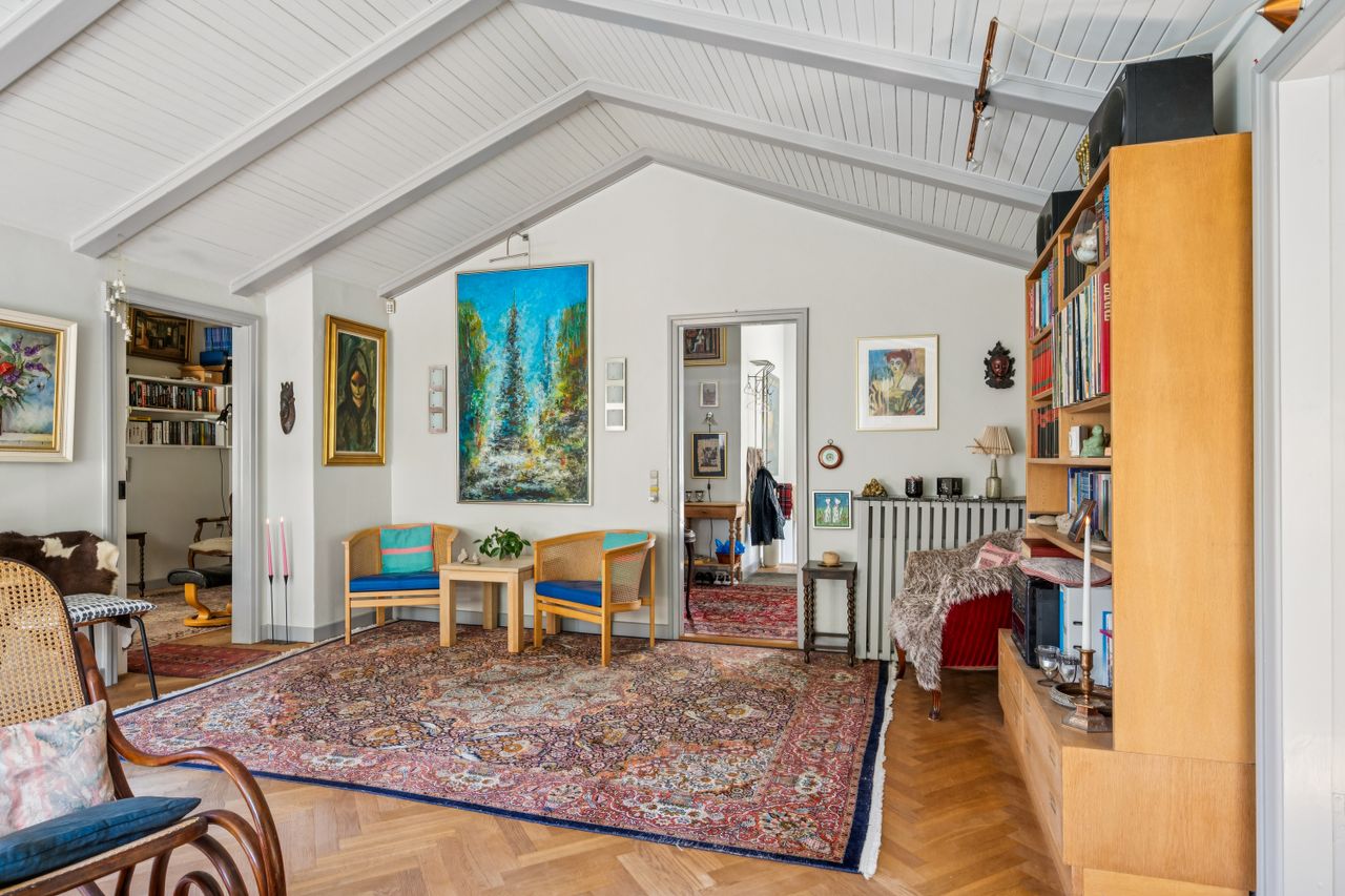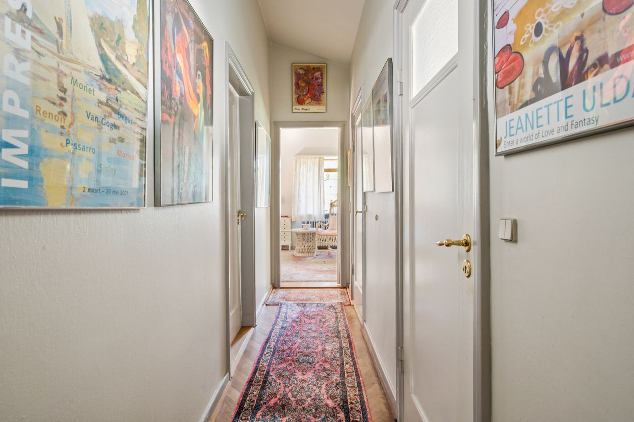 Yderst velindrettet med 4 gode værelser, der giver rig mulighed for at indrette soveværelser, børneværelser, kontor eller gæsteværelser efter behov. 2 flotte klassiske stuer med loft til kip og et unikt flot sildebensgulv, hvor der er masser af plads til både afslapning og sociale arrangementer. Loft til kip i hele huset bidrager til en lys og luftig atmosfære. Villaens hall byder velkommen med fordeling til hele villaen, og det unikke flotte silbebensgulv & loft til kip fuldender entreen og indtrykket føres videre til villaens øvrige rum.