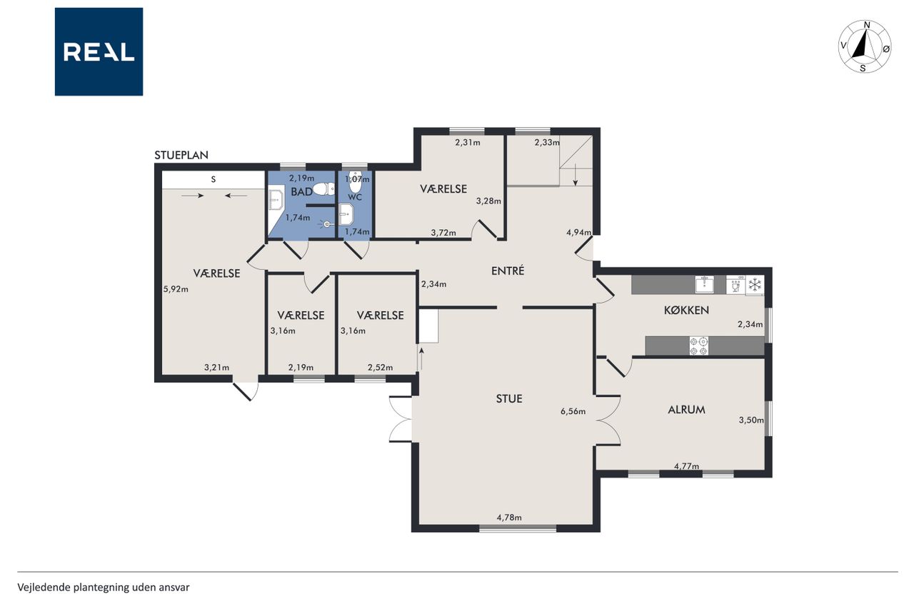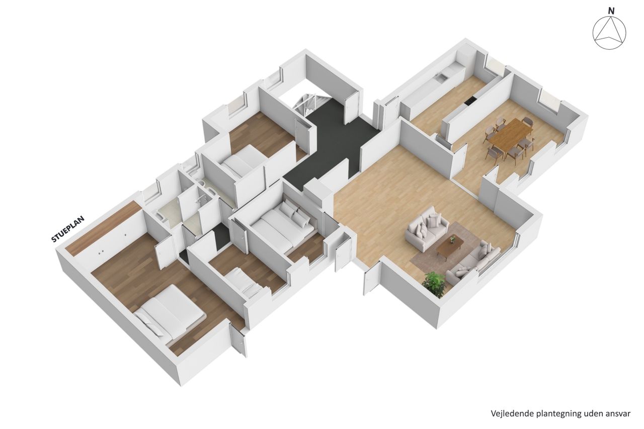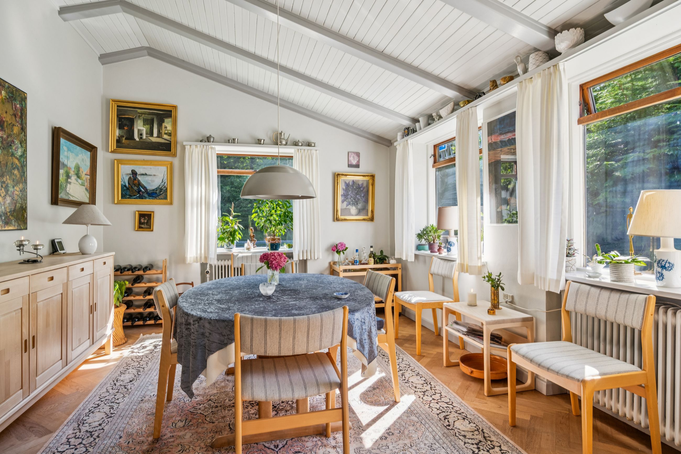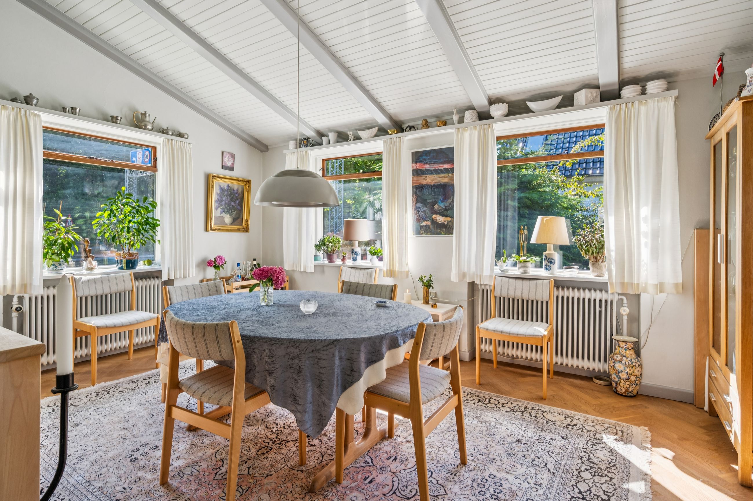 Yderst velindrettet med 4 gode værelser, der giver rig mulighed for at indrette soveværelser, børneværelser, kontor eller gæsteværelser efter behov. 2 flotte klassiske stuer med loft til kip og et unikt flot sildebensgulv, hvor der er masser af plads til både afslapning og sociale arrangementer. Loft til kip i hele huset bidrager til en lys og luftig atmosfære. Villaens hall byder velkommen med fordeling til hele villaen, og det unikke flotte silbebensgulv & loft til kip fuldender entreen og indtrykket føres videre til villaens øvrige rum.