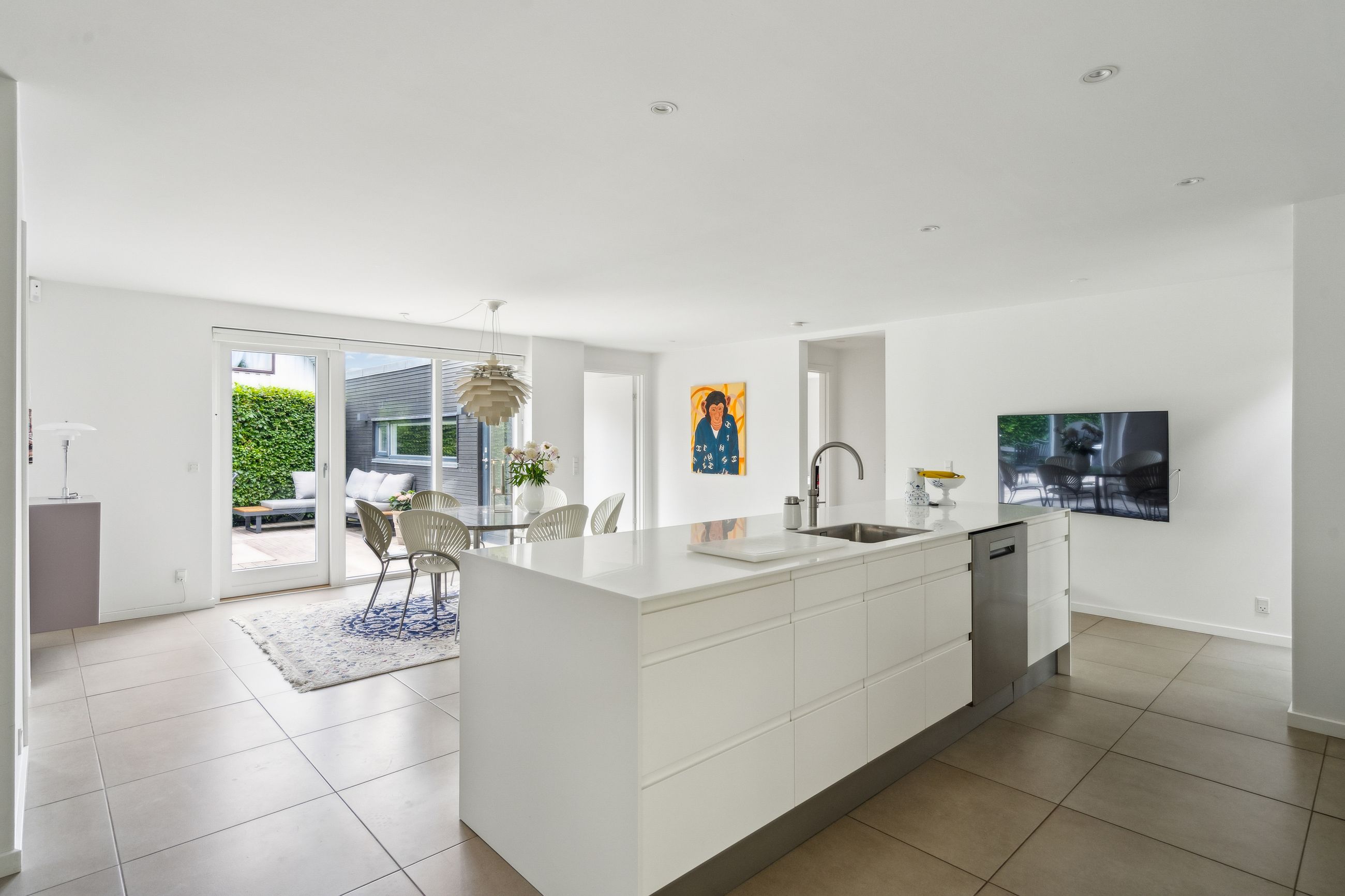 På en fredelig lukket vej i Skådes kuperede terræn, findes denne arkitekttegnede villa med hele 220m2 brugsareal, hvor der er plads til både hygge og leg. Villaen er et sandt mesterværk af moderne design og funktionalitet, der smelter sammen på fornem vis. Den gennemgribende modernisering i 2010