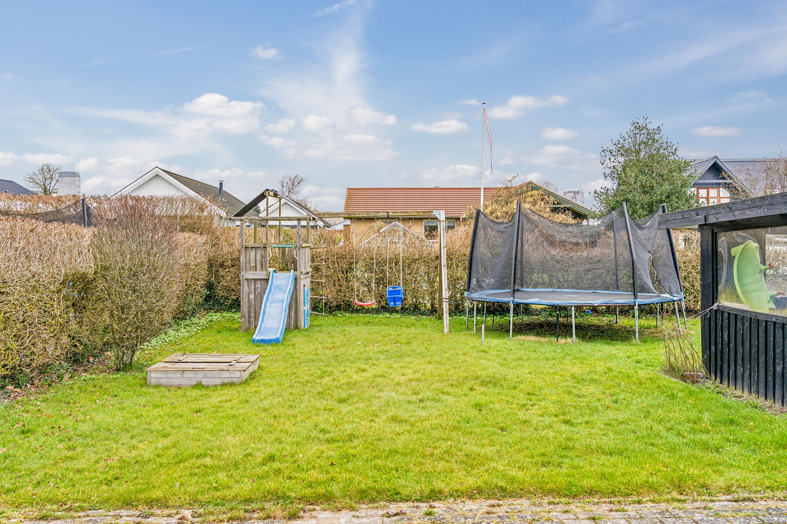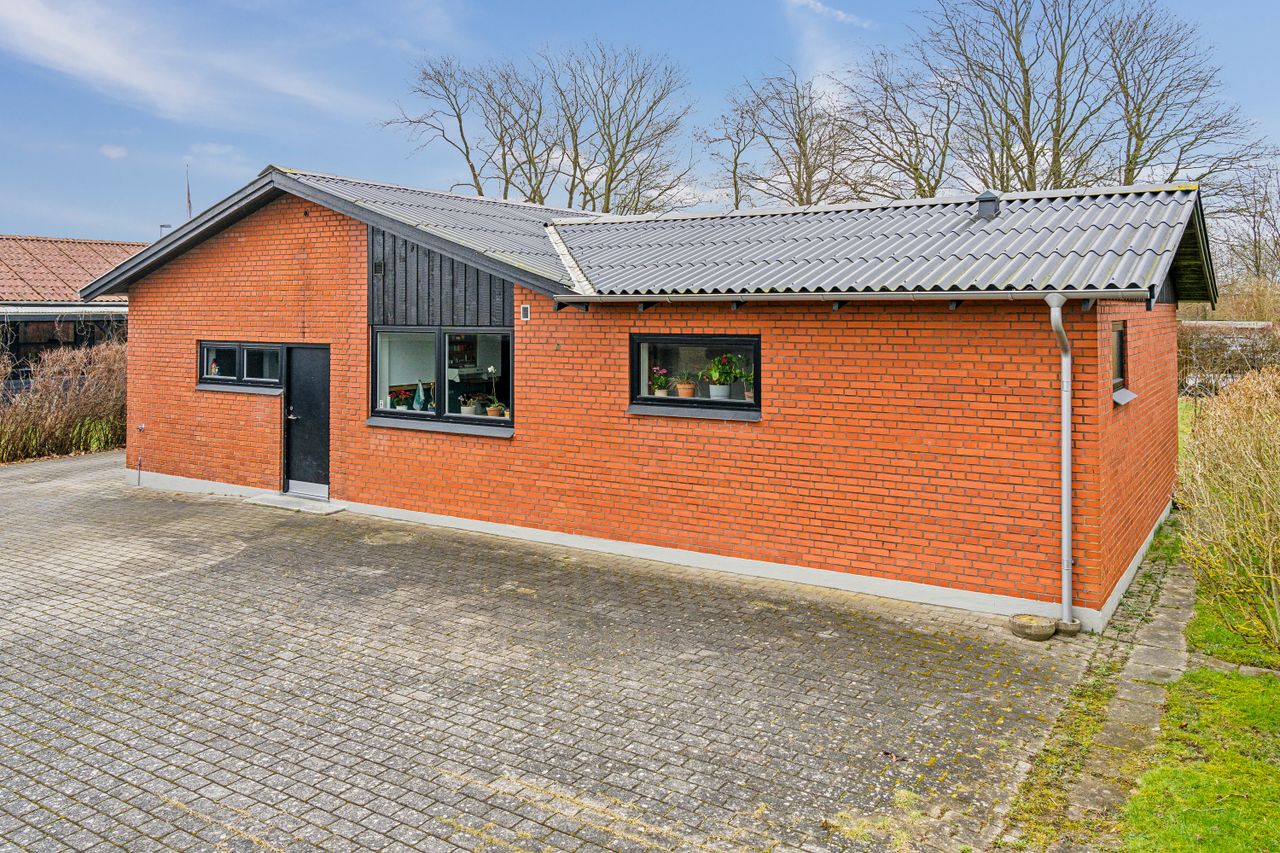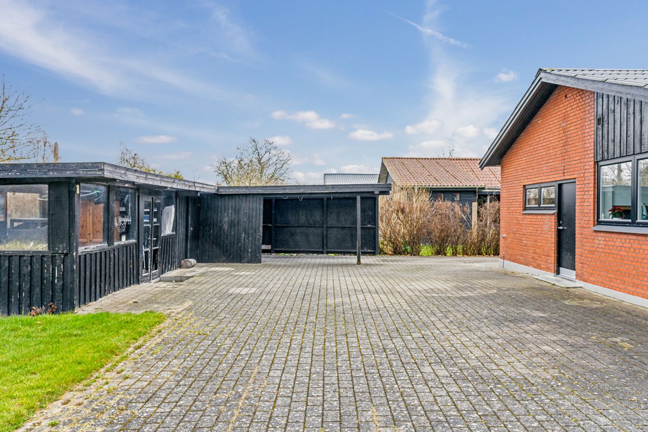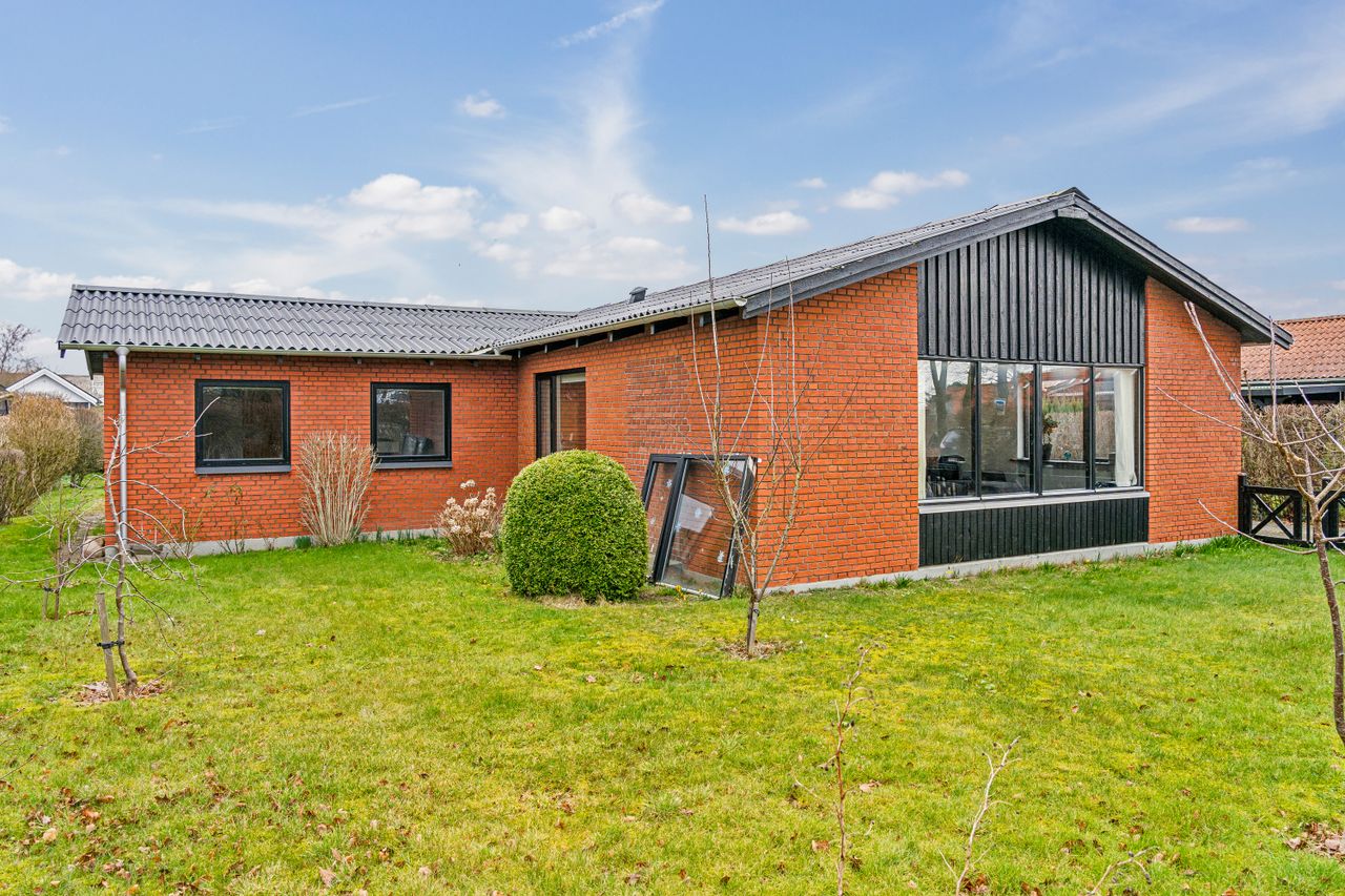 Ejendommen byder på en solrig grund på hele 839 kvadratmeter, hvor I kan nyde en nydelig forhave fyldt med frugttræer og bærbuske. Baghaven rummer ekstra parkeringsplads, en stor stenbelagt terrasse perfekt til sommerens grillfester, samt carport og udhus. Den ældre men funktionelle udestue inviterer til hyggelige stunder året rundt. Familiens mindste vil elske legearealet med sandkasse, trampolin og basketballkurv.