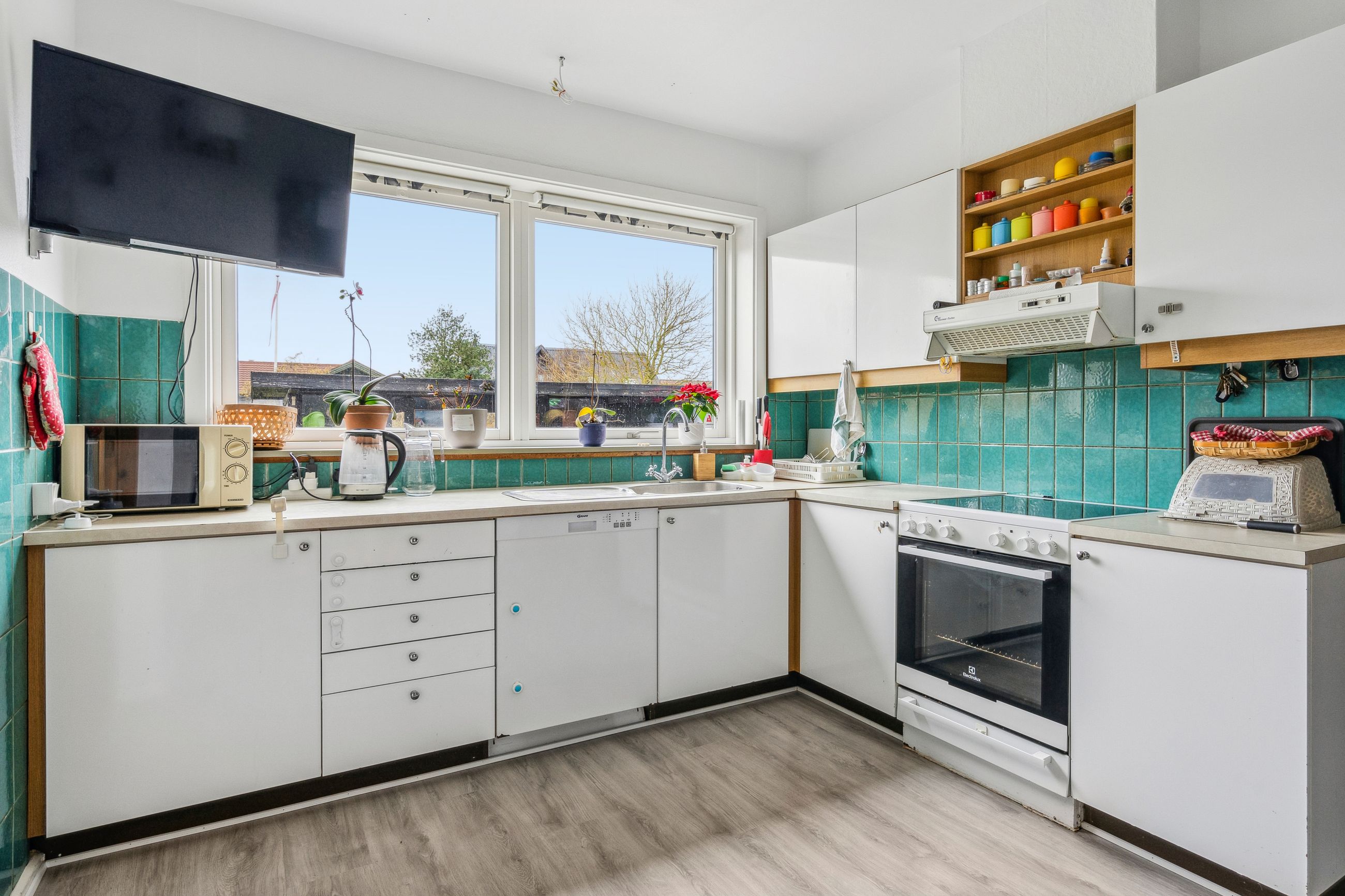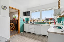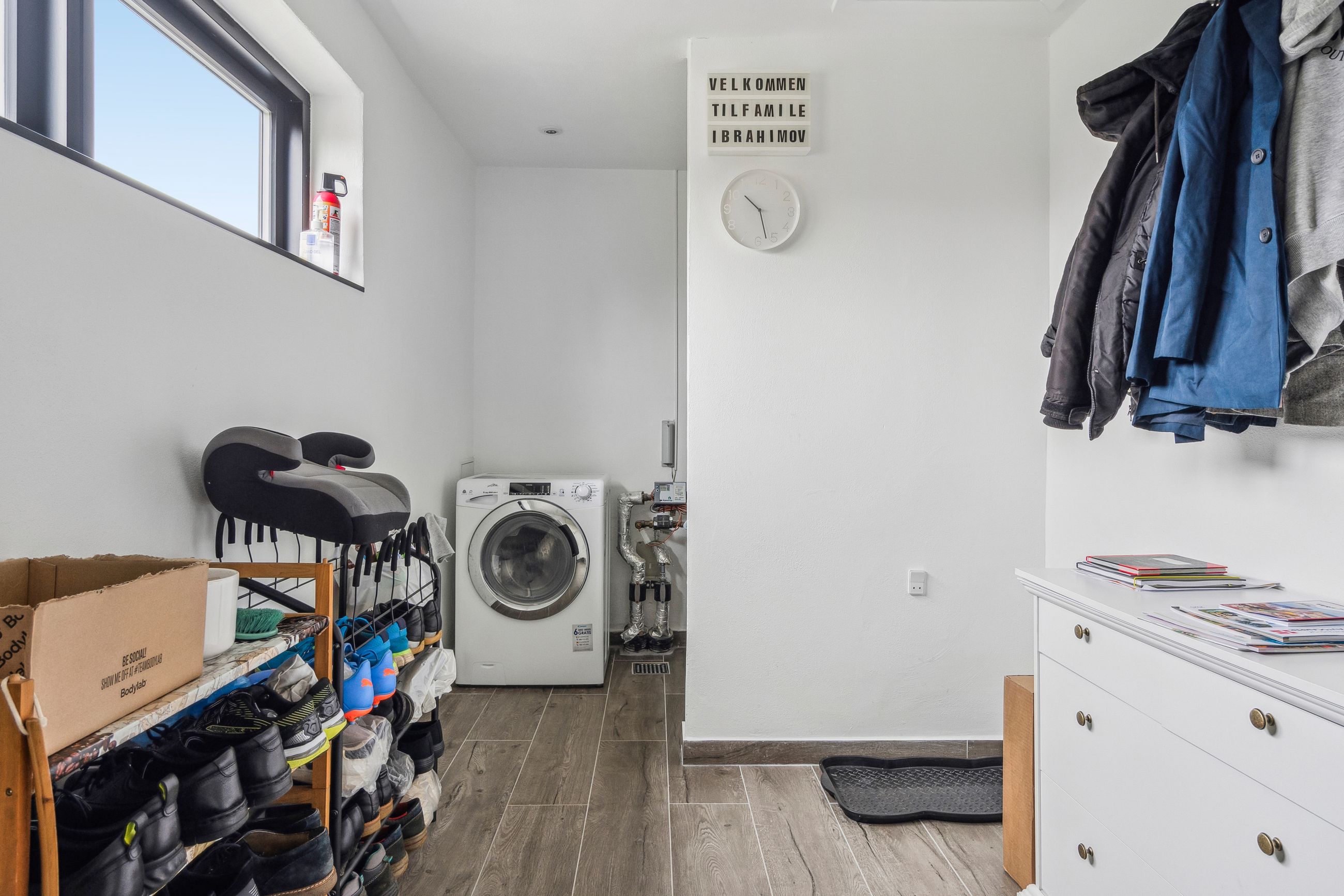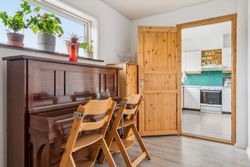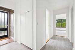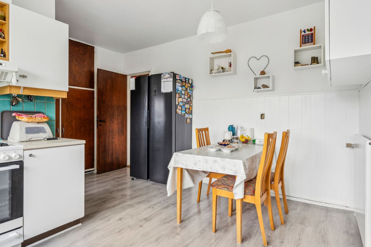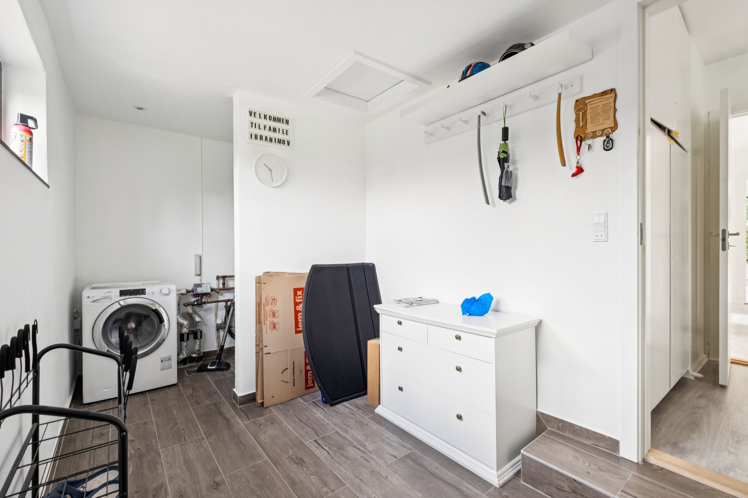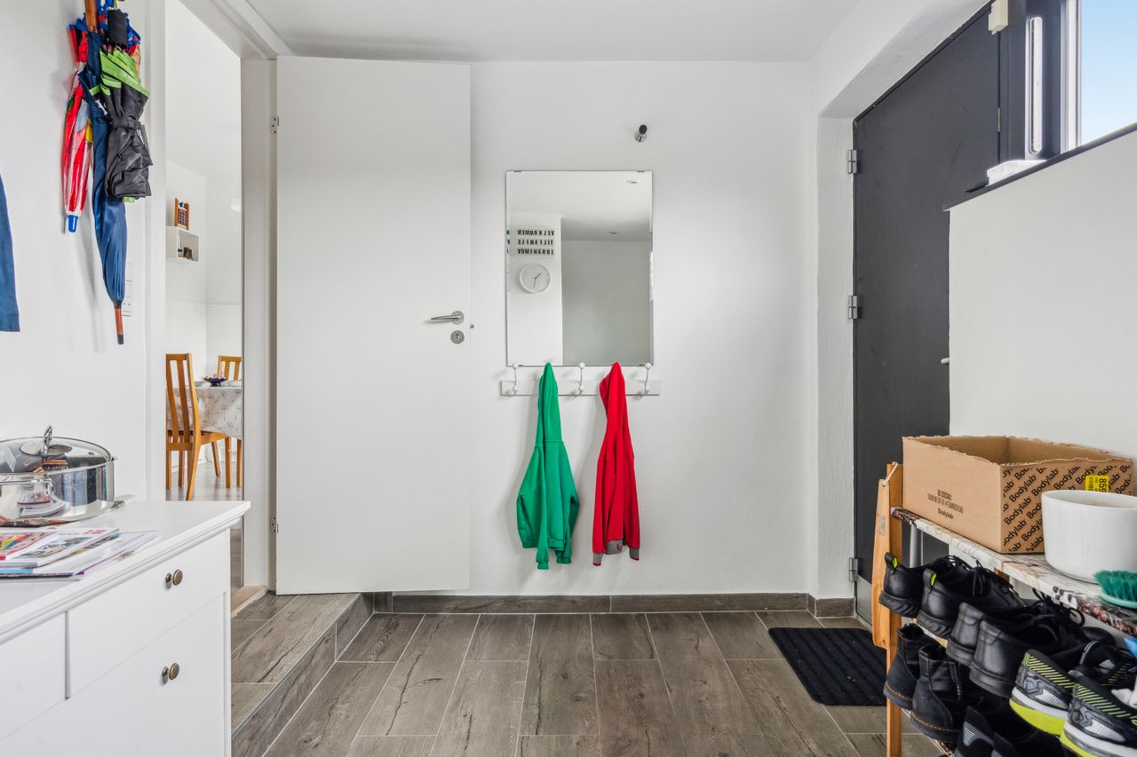 Indenfor venter jer 138 kvadratmeter bolig med en gennemtænkt planløsning. Entréen leder videre ind i et nyistandsat bryggers fra 2023 med flotte klinker og praktiske faciliteter som tørreplads og vaskemaskine. Køkkenet har spiseplads til fire-fem personer samt udsigt over baghaven. Et mellemrum fungerer ideelt som kontor eller kreativt rum for børnene.