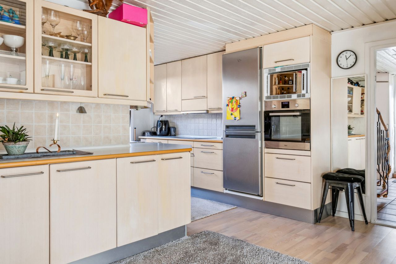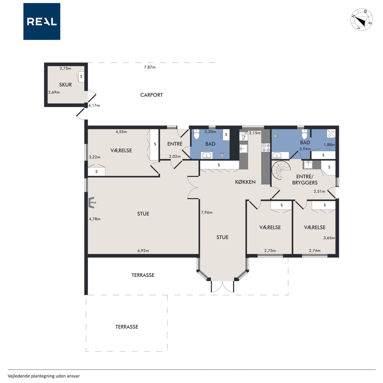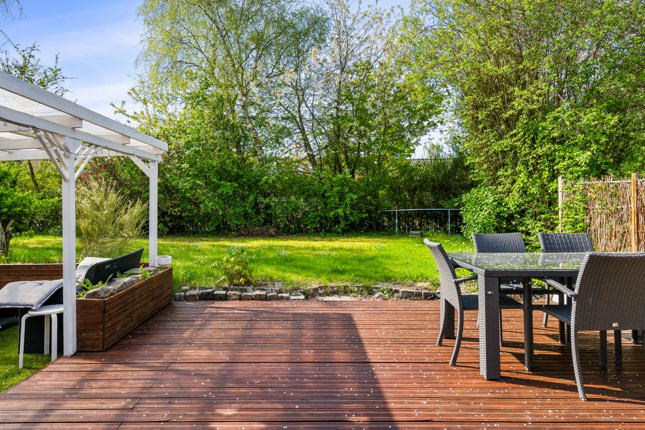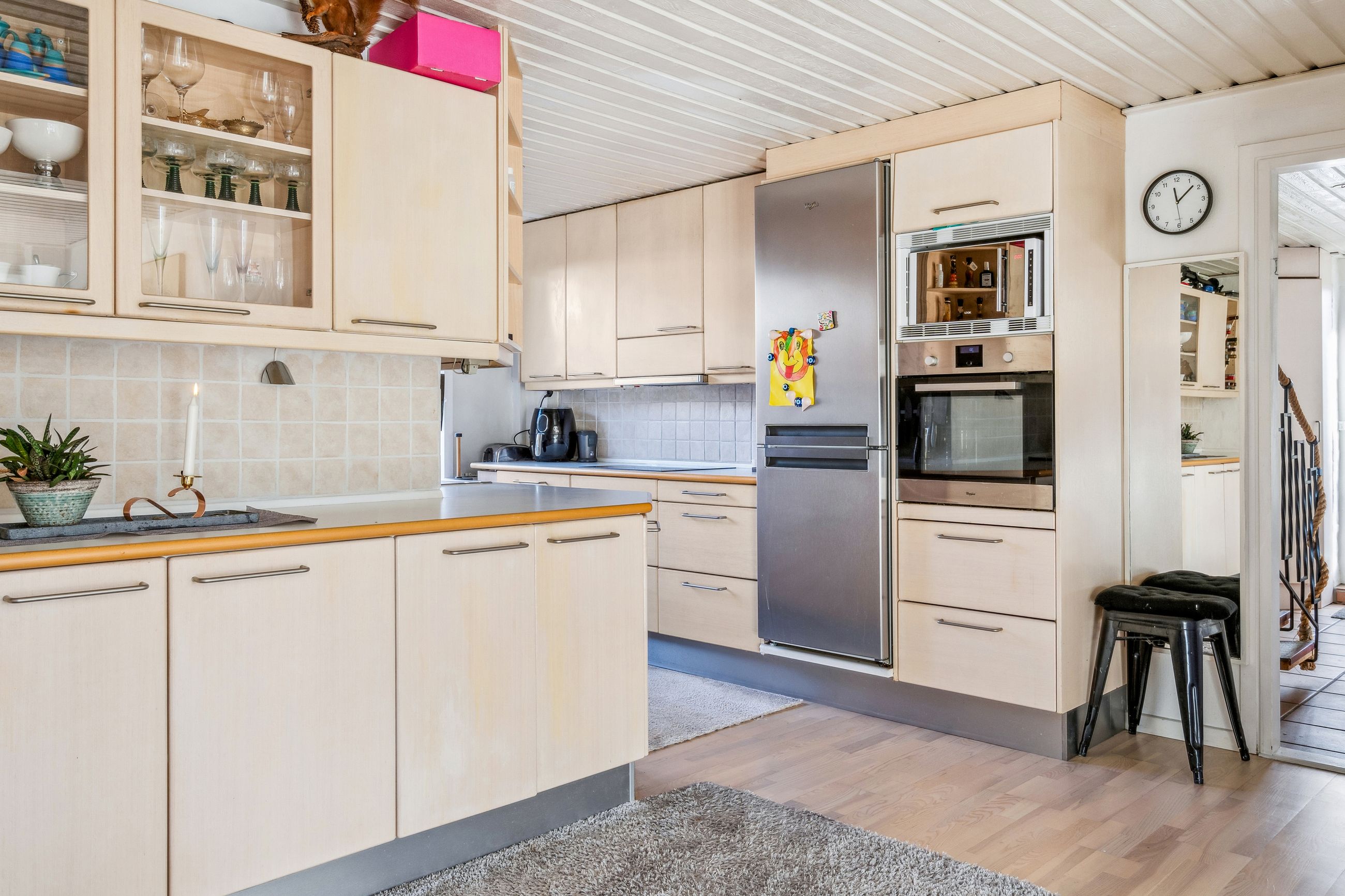 Køkken-alrummet er stort og funktionelt, hvor der er masser af plads til gæster. Du har stadig mulighed for at deltage i selskabet, mens du arbejder i køkkenet. Herfra er der adgang til den skønne stue, hvor der er flotte gulve, akustikpaneler og store vinduespartier, der sikrer et fantastisk lysindfald og skaber en indbydende atmosfære. Fra stuen er der direkte udgang til den dejlige terrasse, som ligger perfekt placeret i den sydvestvendte have. Dette gør det til et oplagt sted at nyde sommerens lange aftener, mens børnene leger i haven.