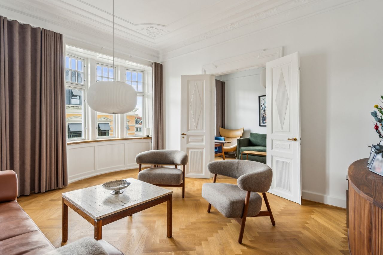 Her har du mulighed for at købe en vidunderlig og unik ejerlejlighed på 145 m2, der er beliggende i en flot og mondæn ejendom opført i 1907.