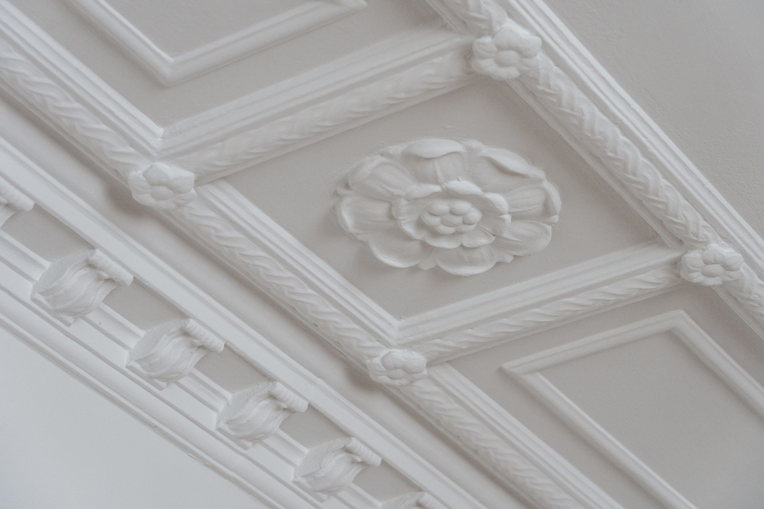 • Oprindelige smukke stuklofter, fine vægpaneler og døre med udskæringer