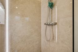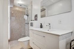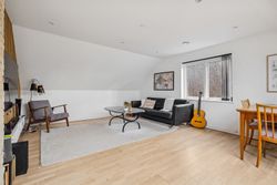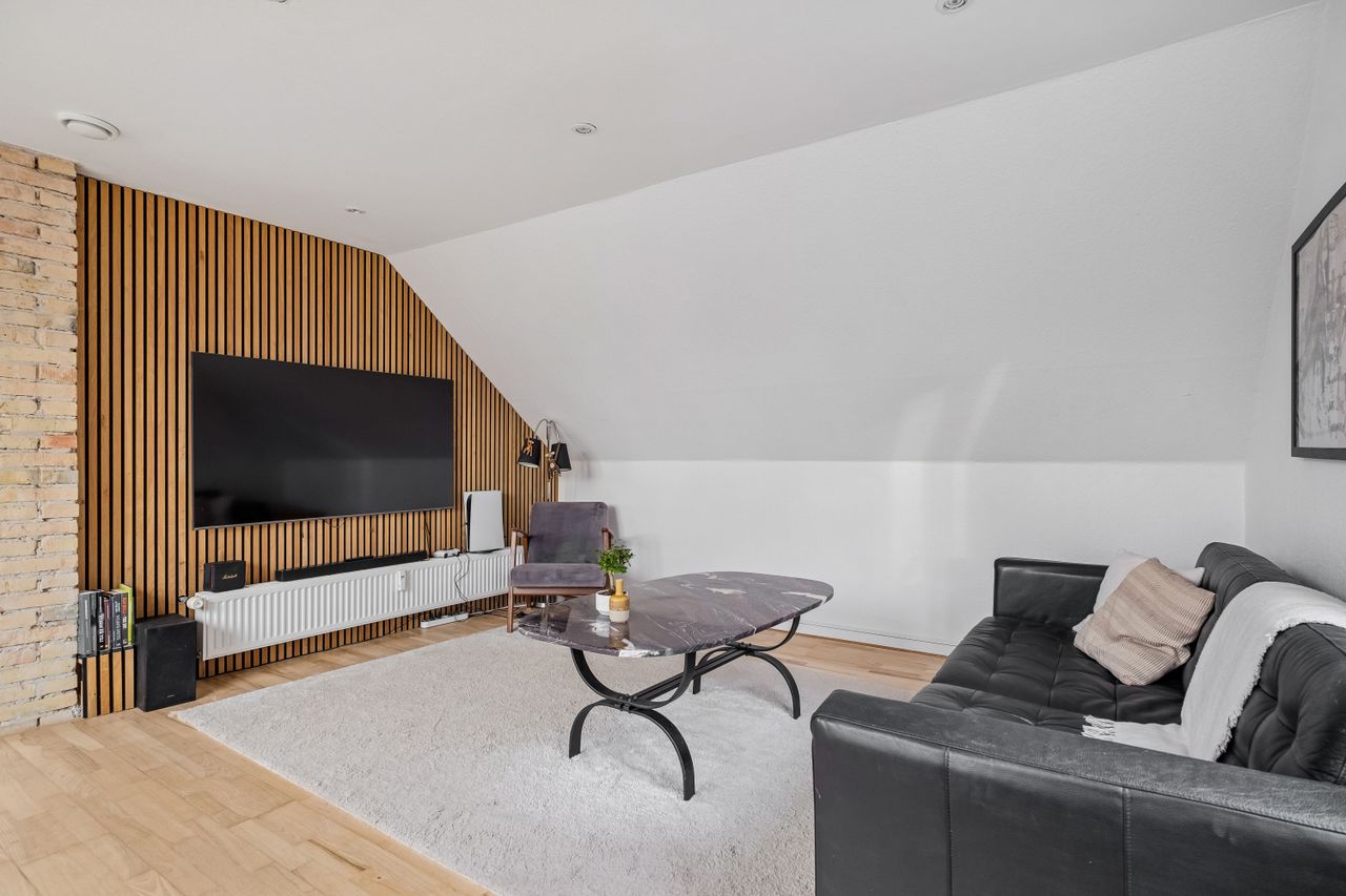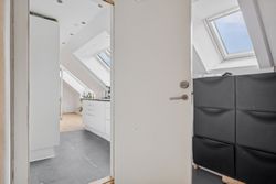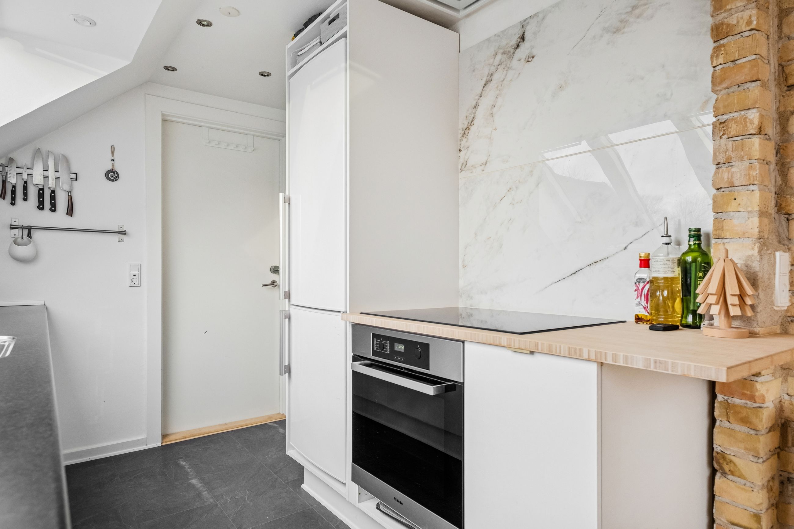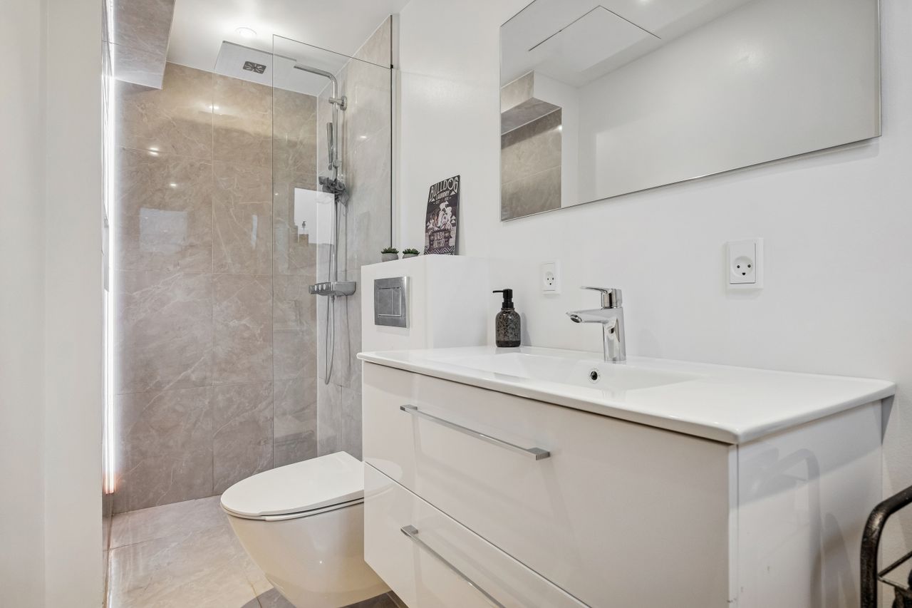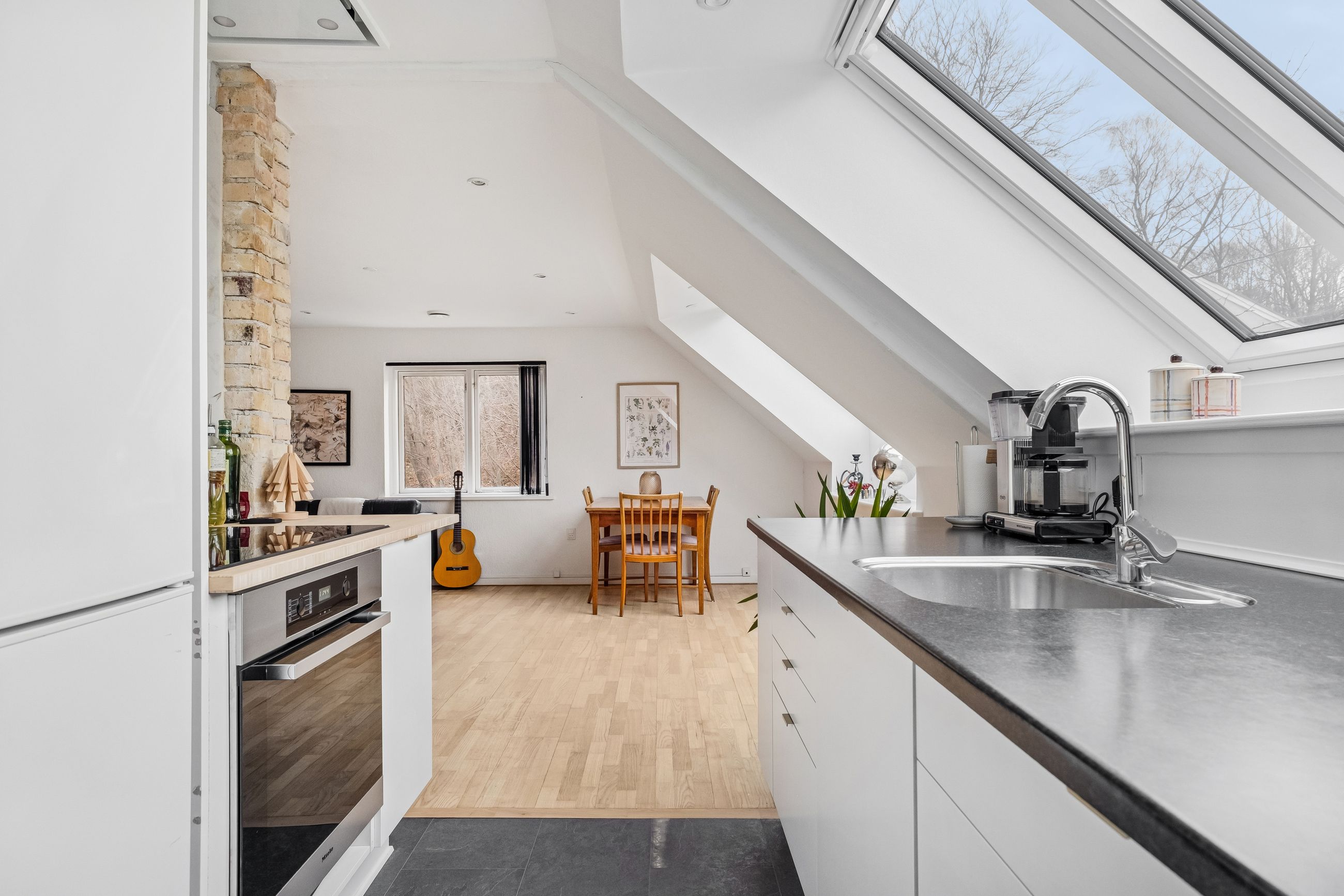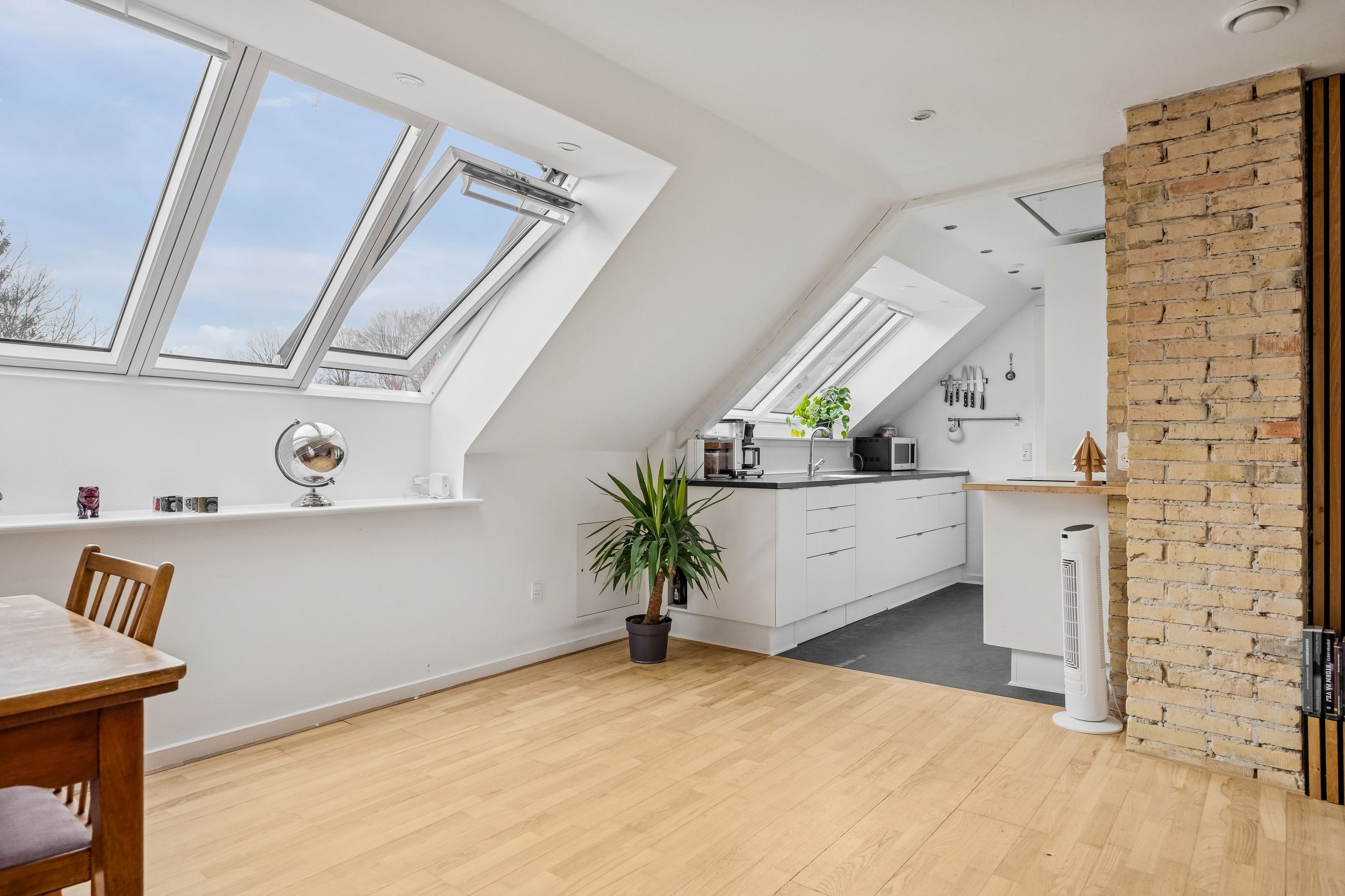 Det nyere køkken er moderniseret med et tidssvarende udtryk og gode opbevaringsløsninger, hvilket gør det både praktisk og indbydende i hverdagen. Soveværelset er regulært og giver god plads til seng og garderobe. Badeværelset er ligeledes nyt og pænt moderniseret med en stilren indretning, der bidrager til boligens samlede, opdaterede udtryk.