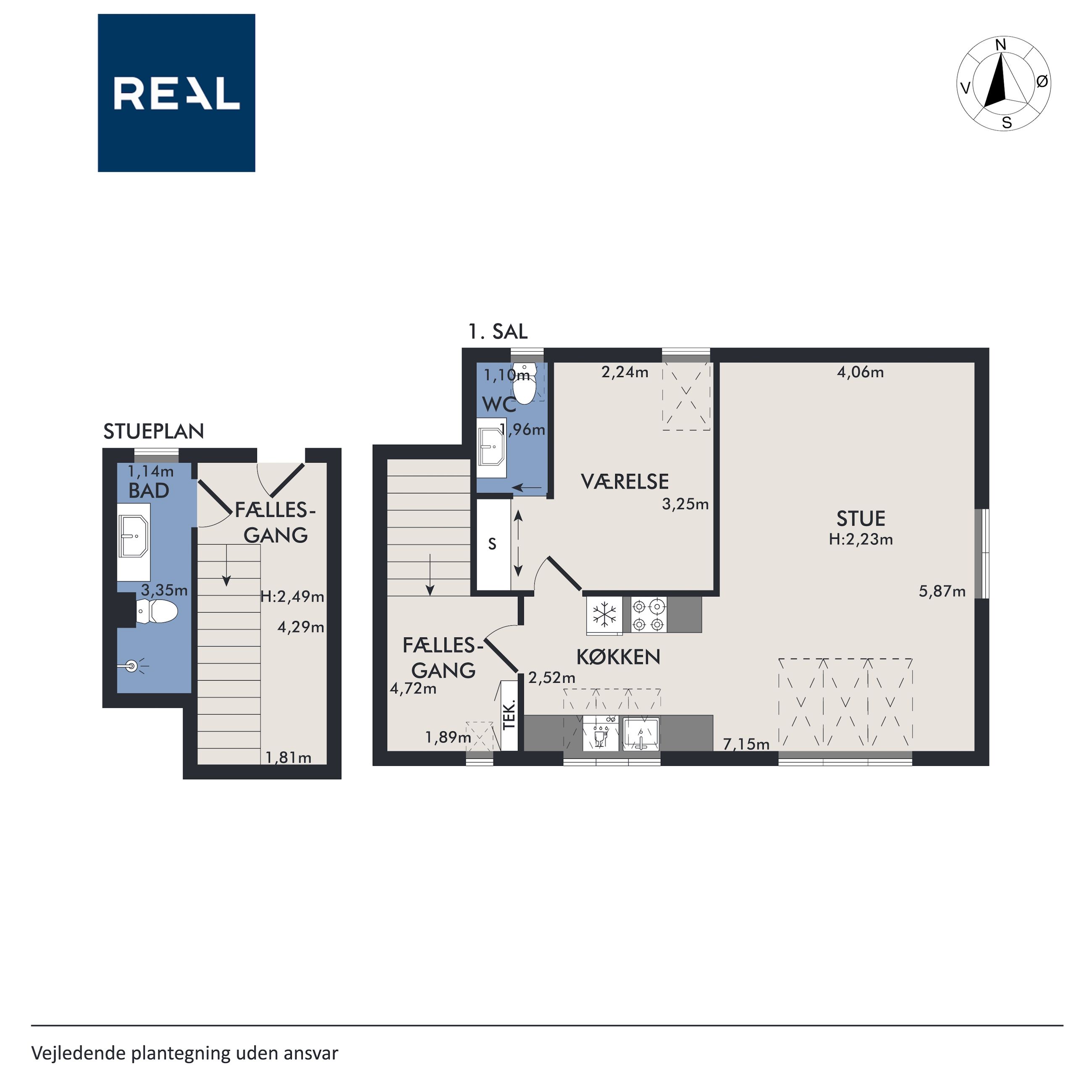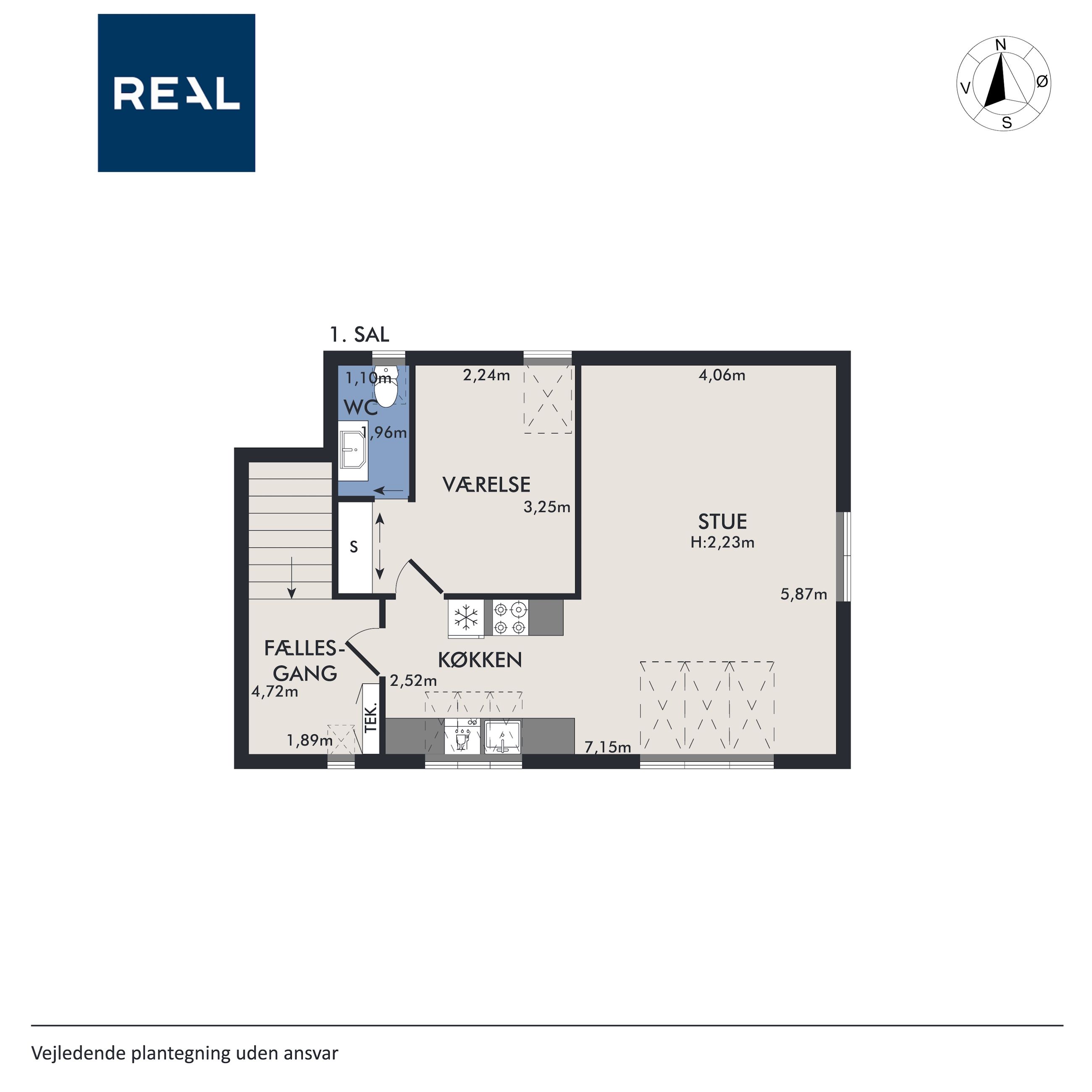Lejligheden rummer 62 veldisponerede kvadratmeter og fremstår lys og velholdt med en funktionel planløsning, der passer perfekt til både singlen eller parret. Boligen byder på en rummelig stue med gode vinduespartier, som sikrer et dejligt lysindfald og skaber en behagelig atmosfære dagen igennem. Her er plads til både sofaarrangement og spisebord, så rummet kan indrettes fleksibelt efter behov.