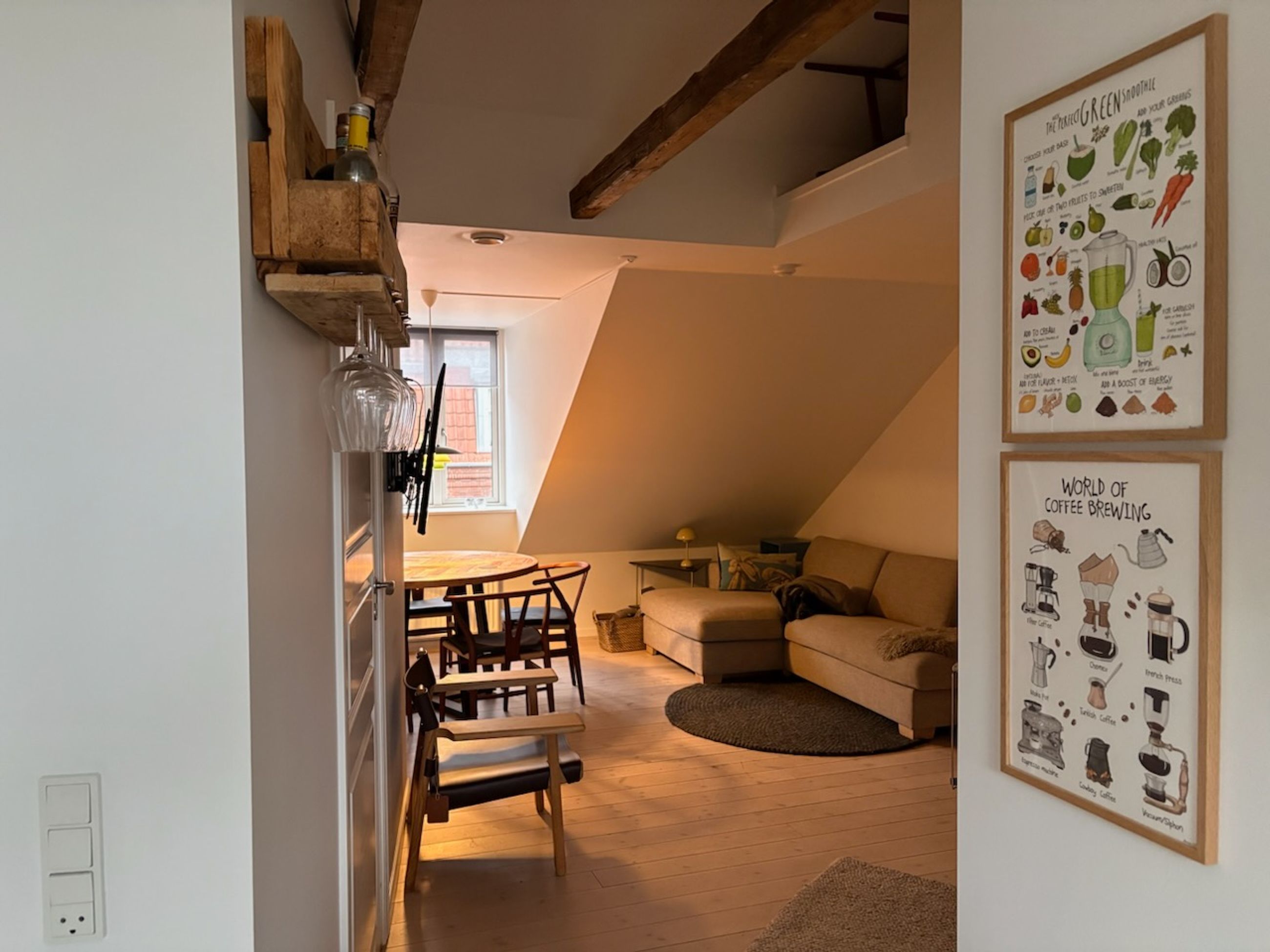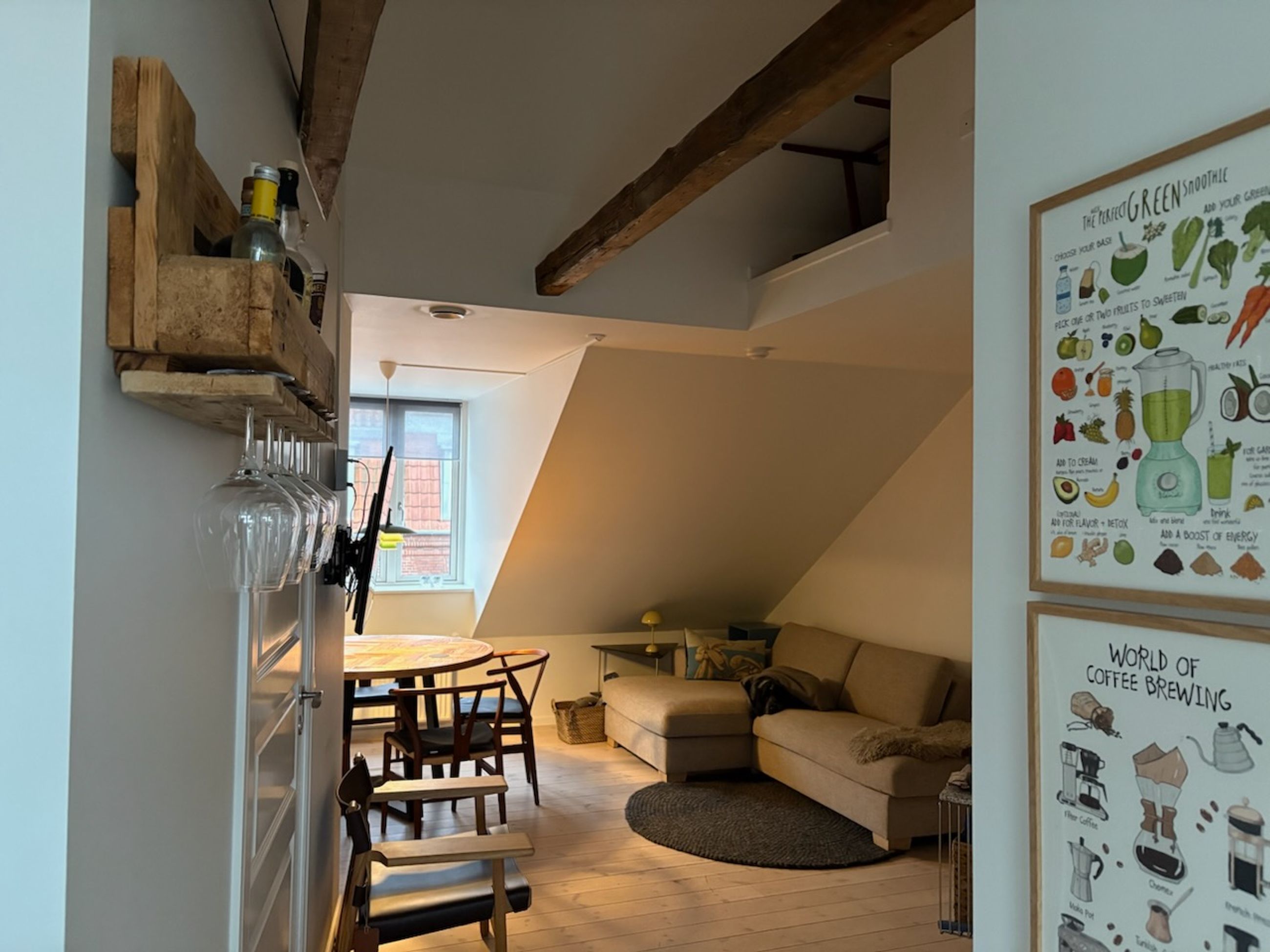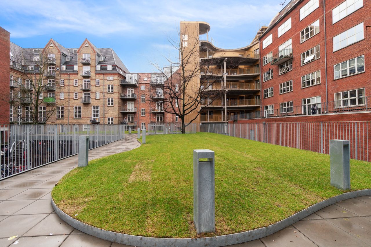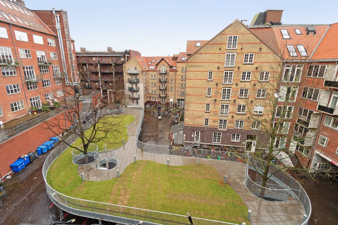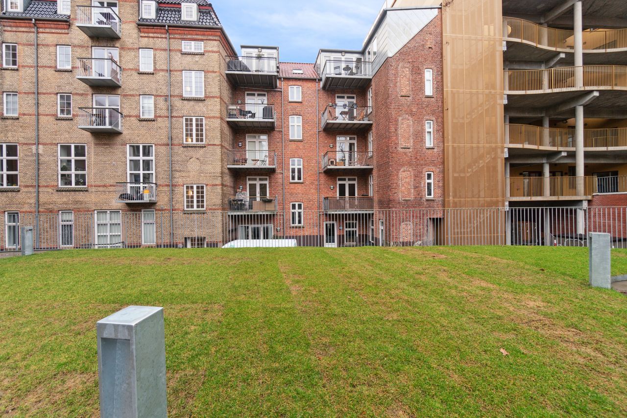 Ejerlejligheden er beliggende i en flot ejendom opført i 1899 og ombygget/moderniseret i 2019. Den oprindelige byggestil er bevaret i facaden, der fremstår rigtig flot. Lejligheden, der er fra 2015, er meget velholdt og virker som ny, når du træder ind af døren. Her bliver du mødt af et dejligt lyst rum, hvor lyset strømmer igennem både stuevindue og det store vinduesparti i køkkenet. I køkkenet kan døren åbnes til en dejlig altan, hvor ejerne blandt andet nyder at indtage morgenmaden, når sæsonen er til det. Såvel køkken som bad er i tidløst hvidt design. På badeværelset er der en fin bruseniche med glasvæg og væghængt toilet. Der er også blevet plads til en vaske/tørremaskine på badeværelset. Fra stuen er der adgang til soveværelset, hvor der også er god plads til opbevaring og måske en hjemmearbejdsplads. Lejligheden virker større end 56 m2 på grund af de fine kviste, der giver en bedre loftshøjde og en bedre følelse af rummelighed. Der er synlige bjælker, som er med til at gøre lejligheden mere hyggelig. Der er fine trægulve i stue, soveværelse og køkken. I badeværelset er der pæne lyse fliser i brusenichen og klinker på gulvet. Fra lejlighedens altan er der kig ned i en fælles gård, hvor gårdmiljøet er blevet lavet sådan, at et fælles areal er hævet fra terræn, og der er trapper op til et niveau, hvor der er lagt græs og bevaret nogle træer til at give området atmosfære. Under fællesarealet er der anlagt parkeringspladser. Ejerlejligheden er beliggende meget centralt, der er ikke langt til hverken, Strøget, Latinerkvarteret, Ø-gaderne, Banegården, Aros, Botanisk have, skov og vand.