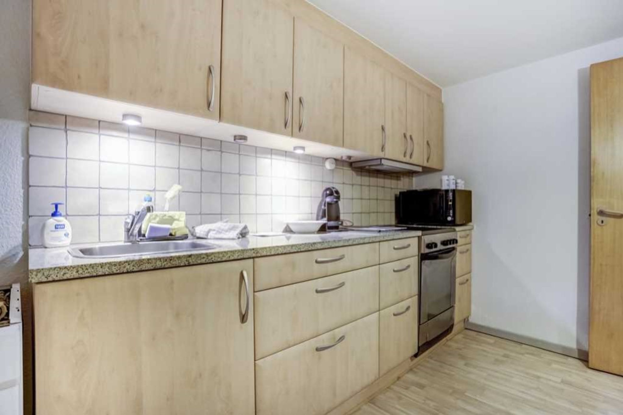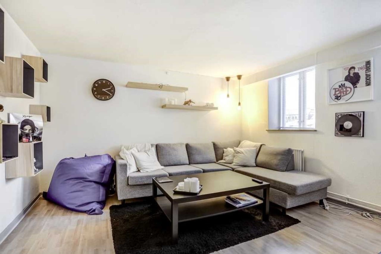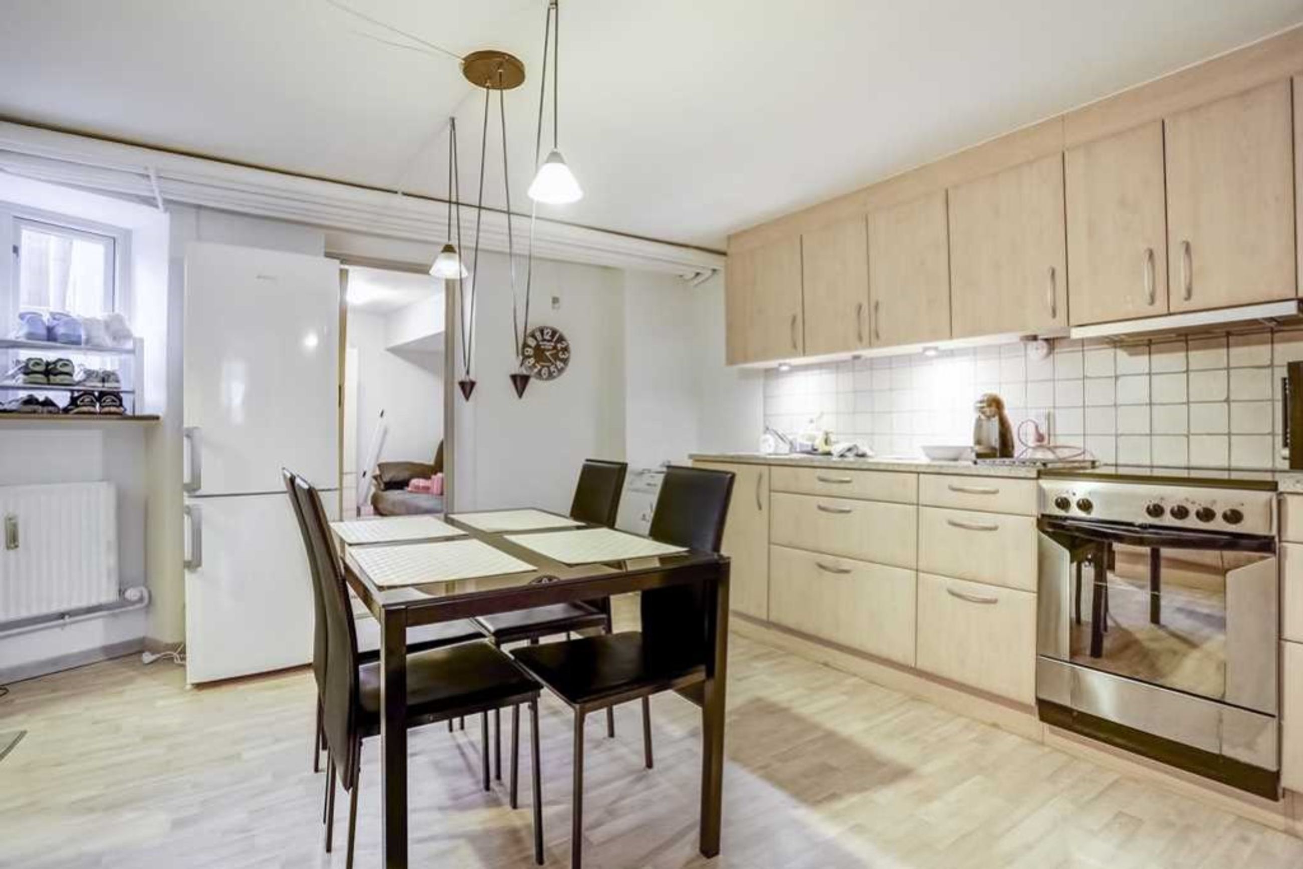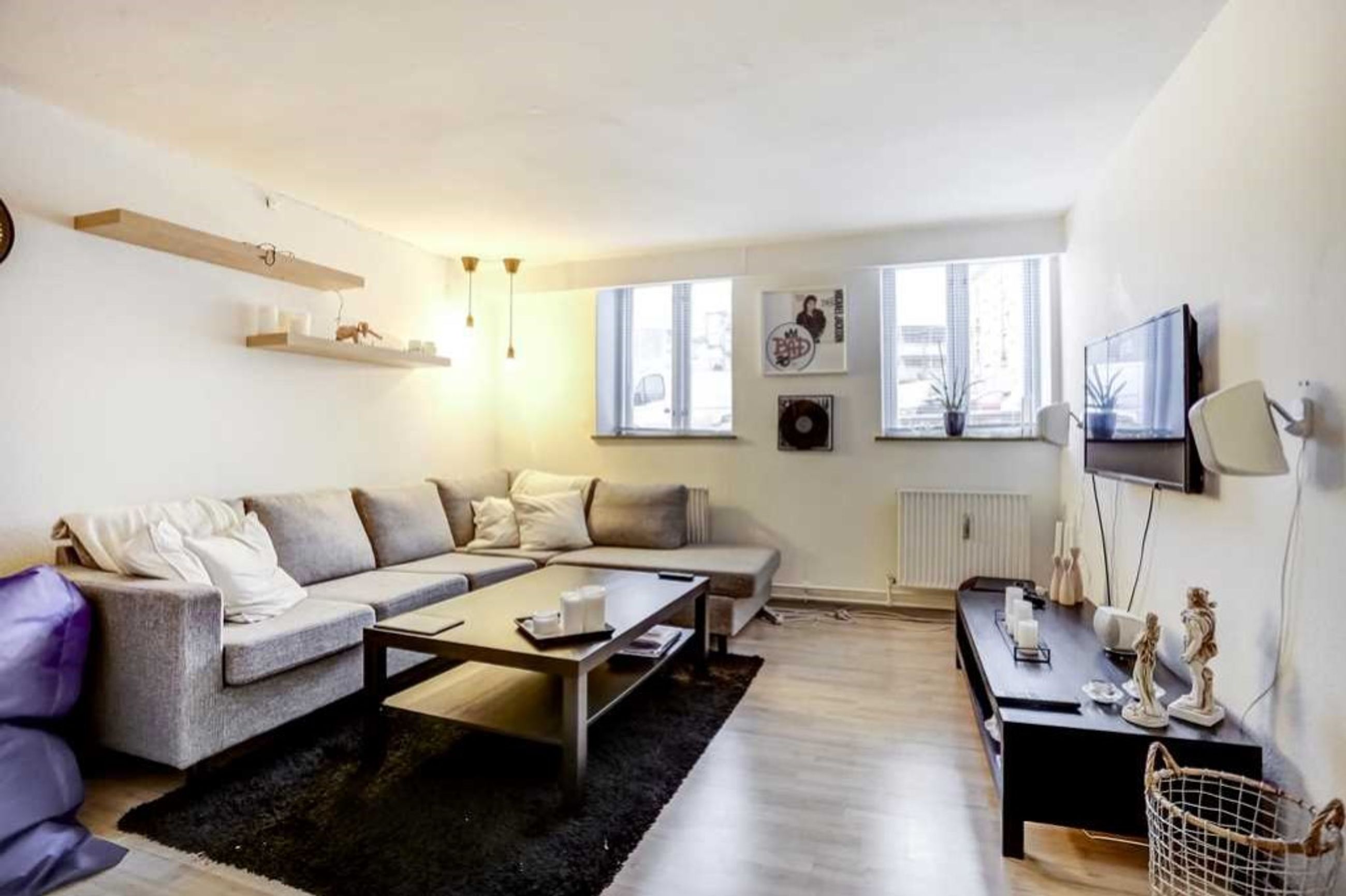 2 minutters gang fra gågaden er denne hyggelige lejlighed beliggende som en høj kælder lejlighed i