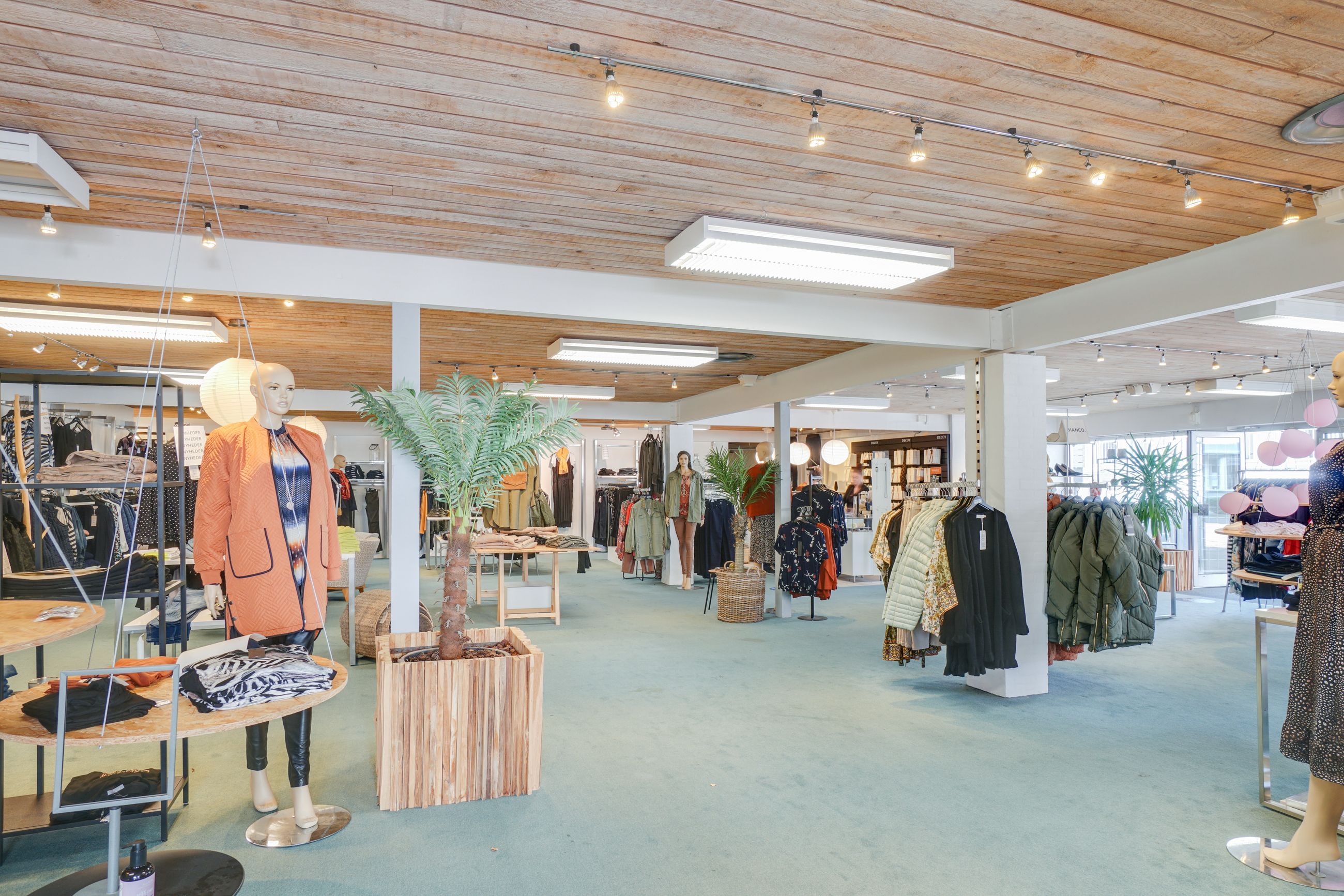 Butikken har indgang fra både Vestergade og det tilhørende udstilling-/opholdsareal. Indvendigt er gulvene belagt med tæpper, og lofterne er udført i fyrrustik, hvilket skaber en varm og rolig atmosfære. De store facadevinduer med hvidmalede alurammer og termoglas giver et flot lysindfald og god synlighed mod gaden.